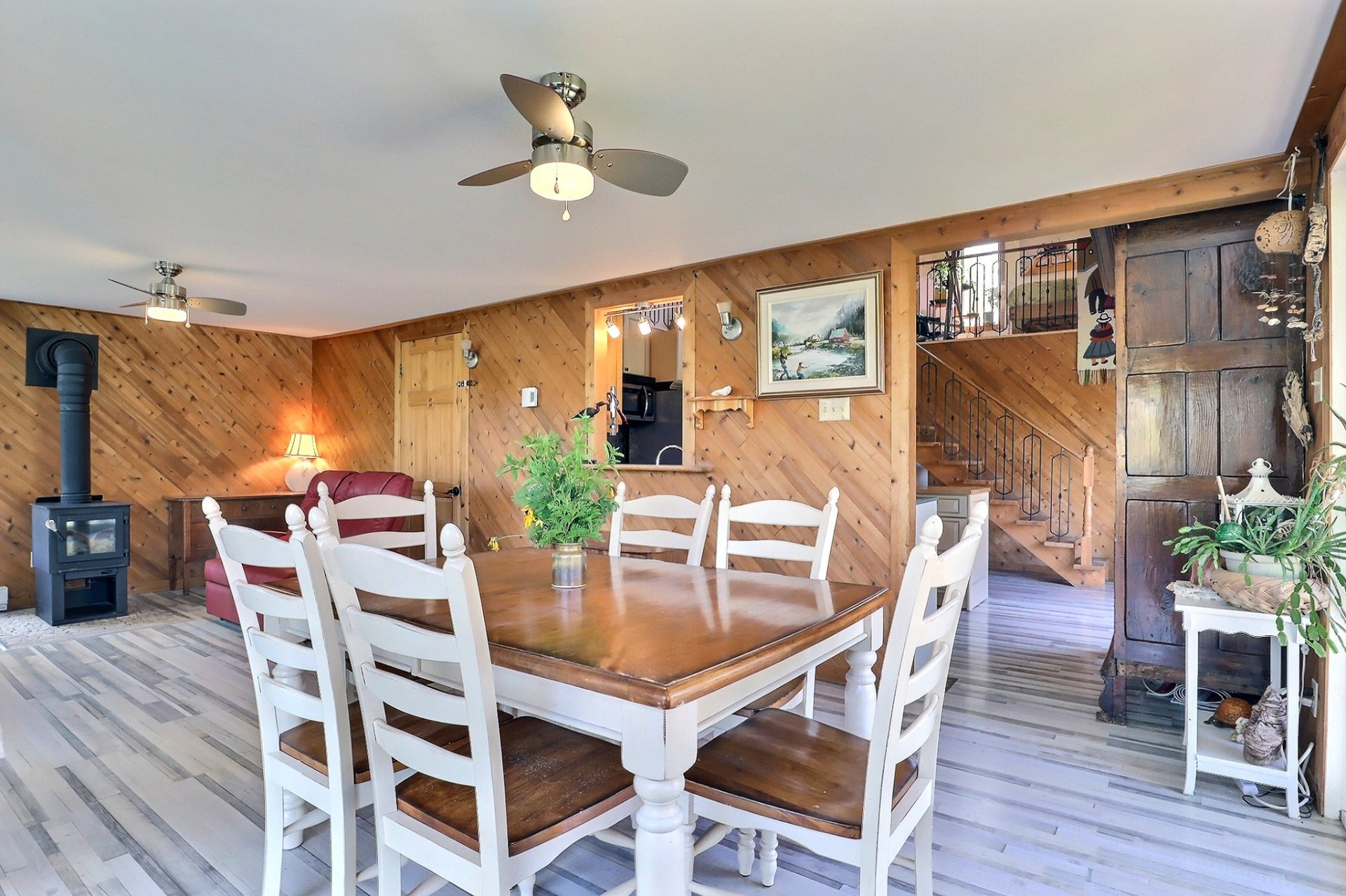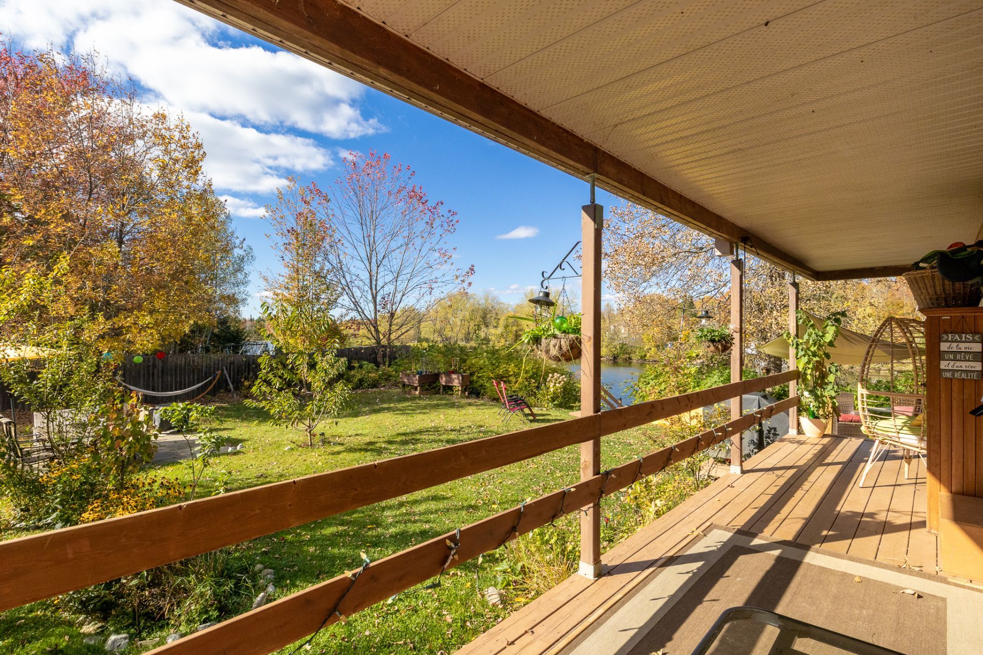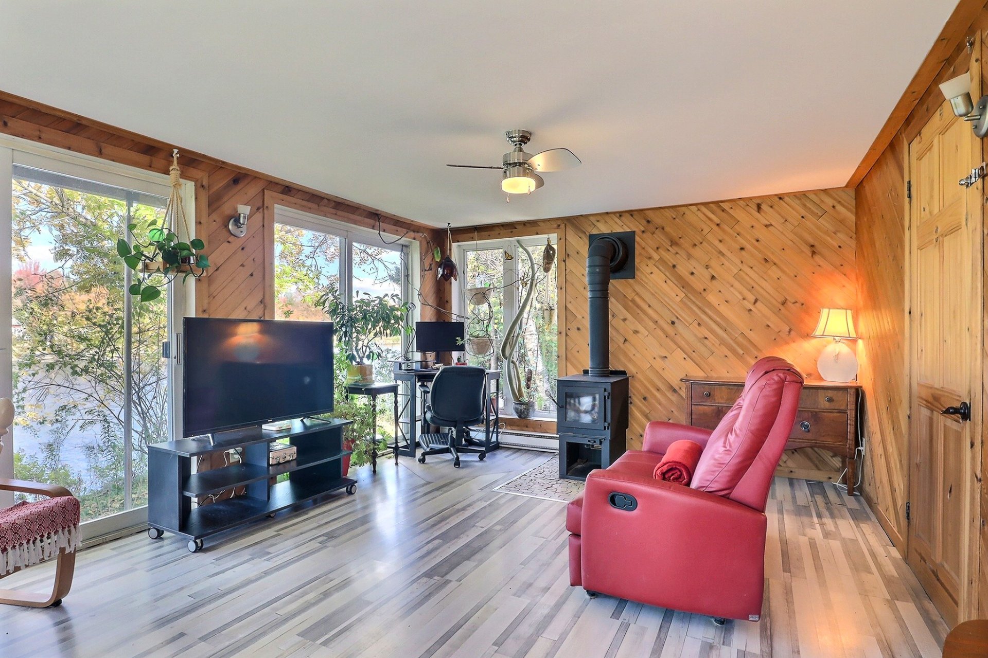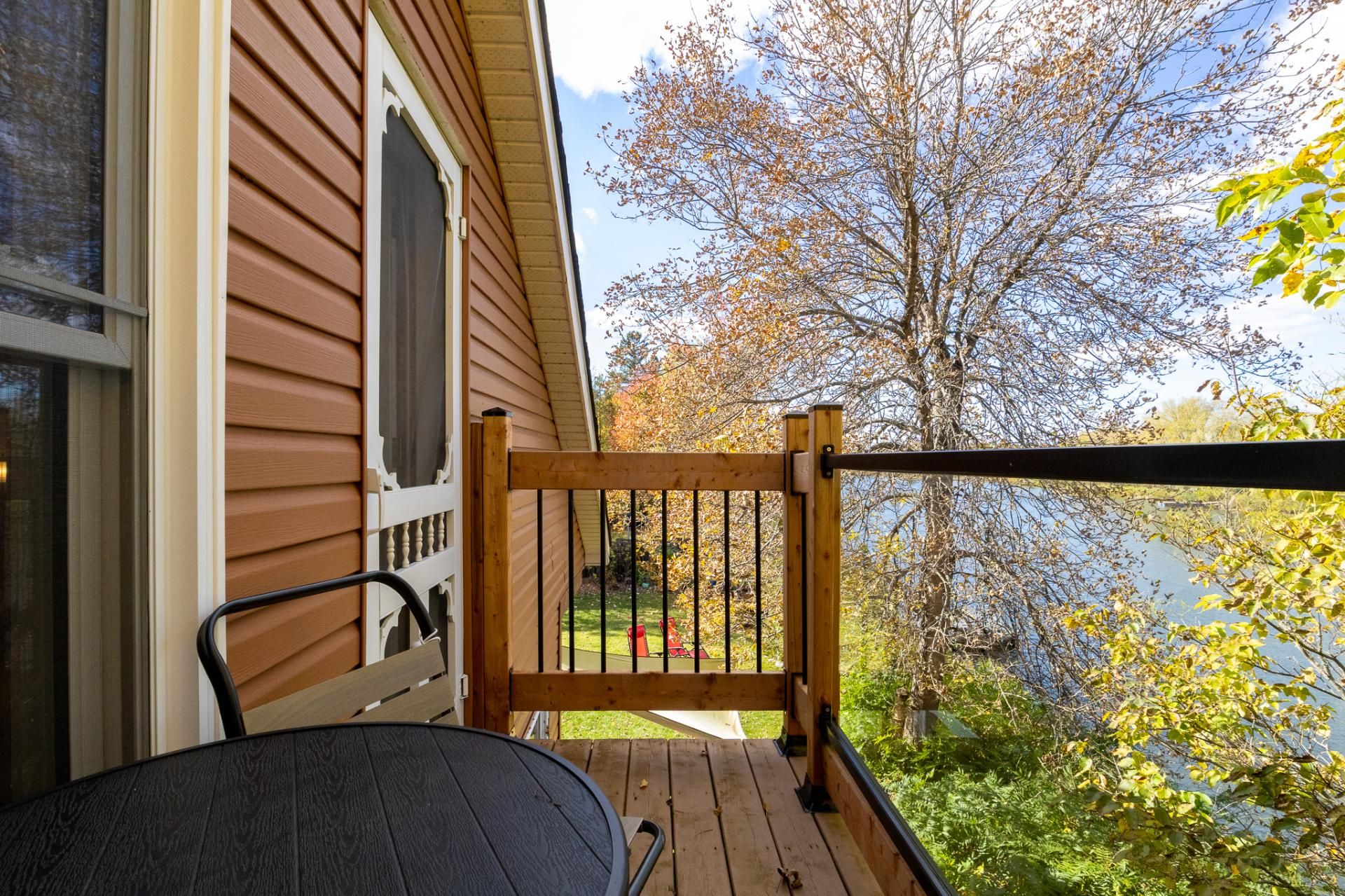Spa, quais et escaliers d'accès, poêle à bois, stores, luminaires, système d'urgence à batterie sump pump, hotte micro-onde, restant de bois extérieur. Possibilité de vendre presque tout meublé selon entente avec le vendeur.