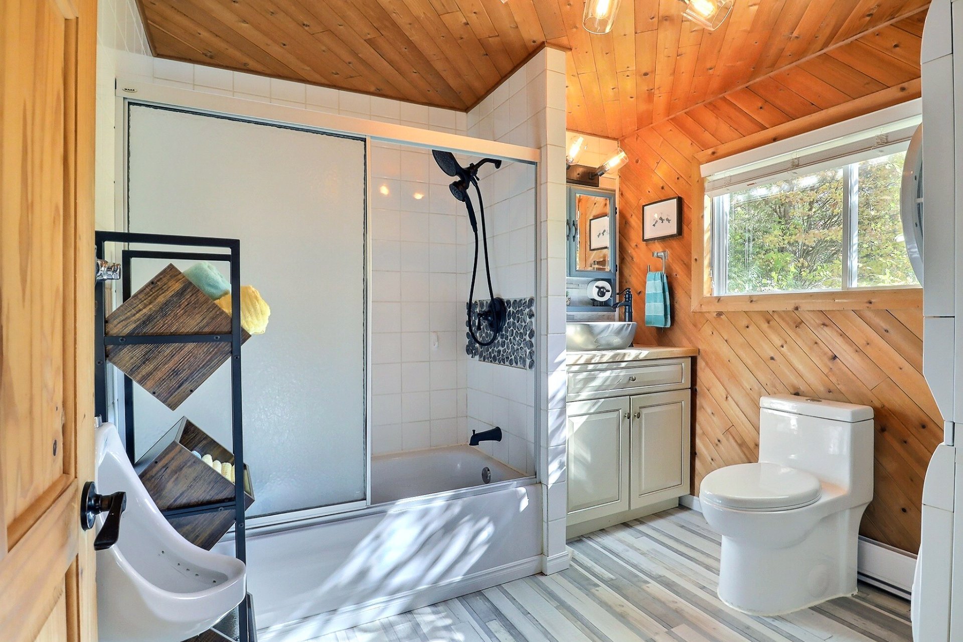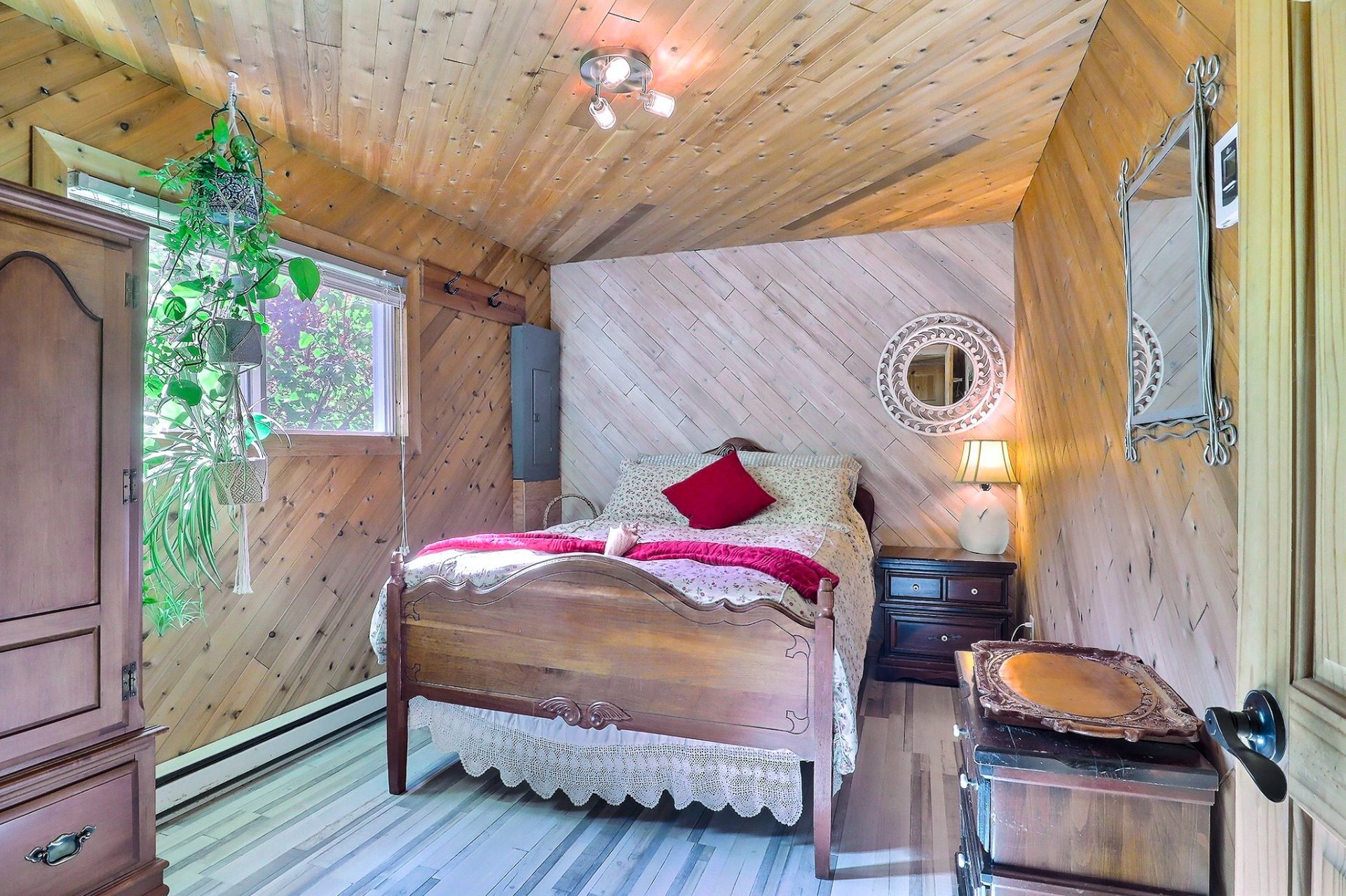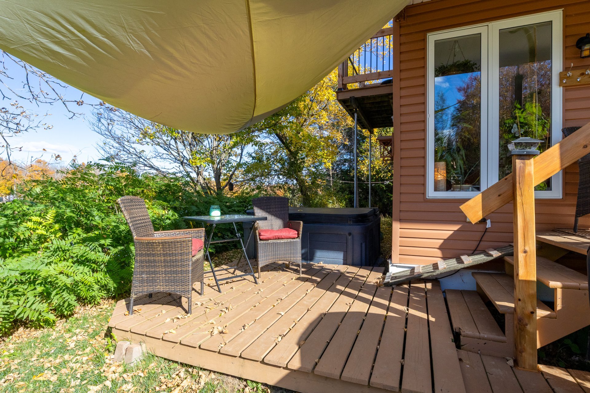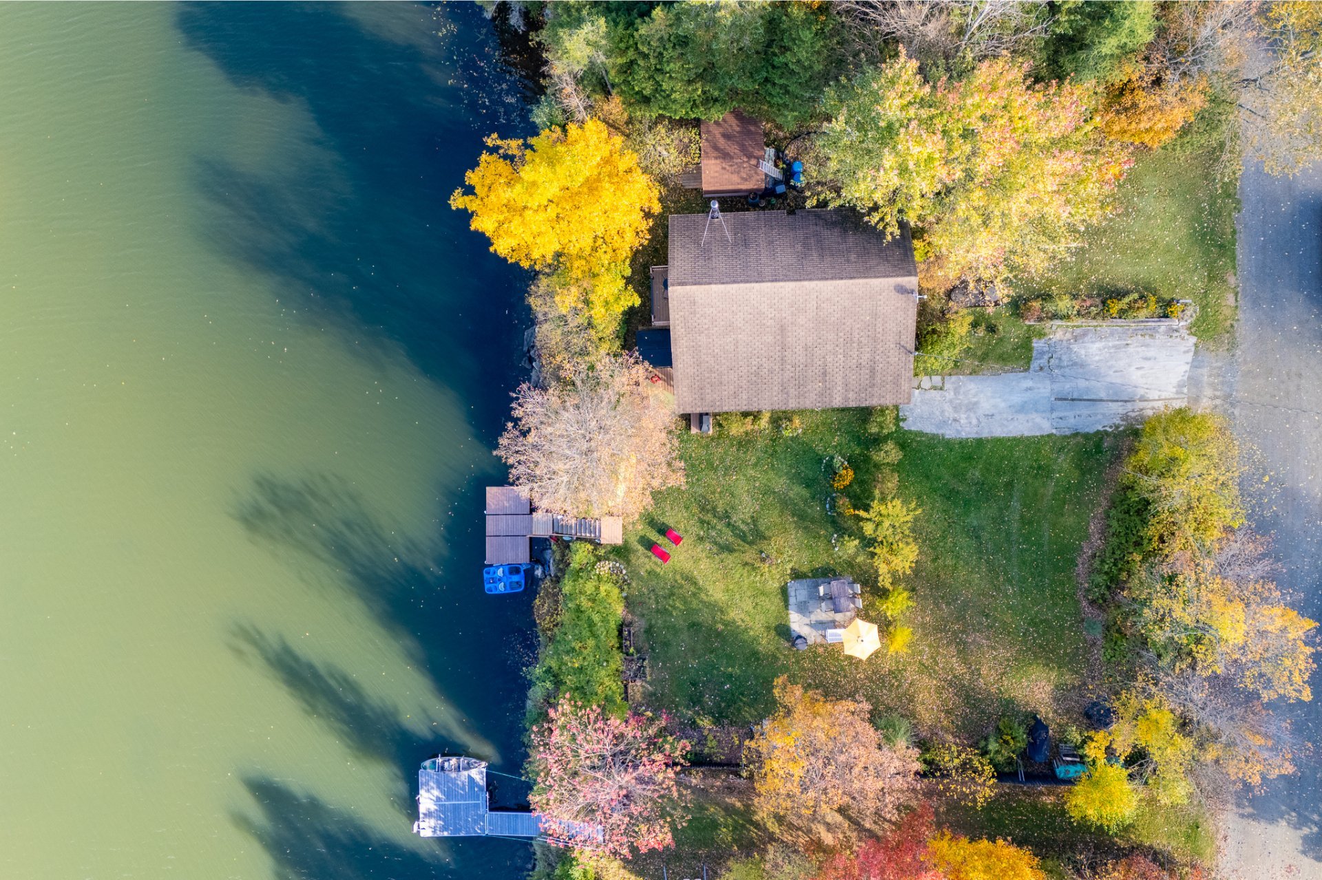 Spa, quais et escaliers d'accès, poêle à bois, stores, luminaires, système d'urgence à batterie sump pump, hotte micro-onde, restant de bois extérieur. Possibilité de vendre presque tout meublé selon entente avec le vendeur.