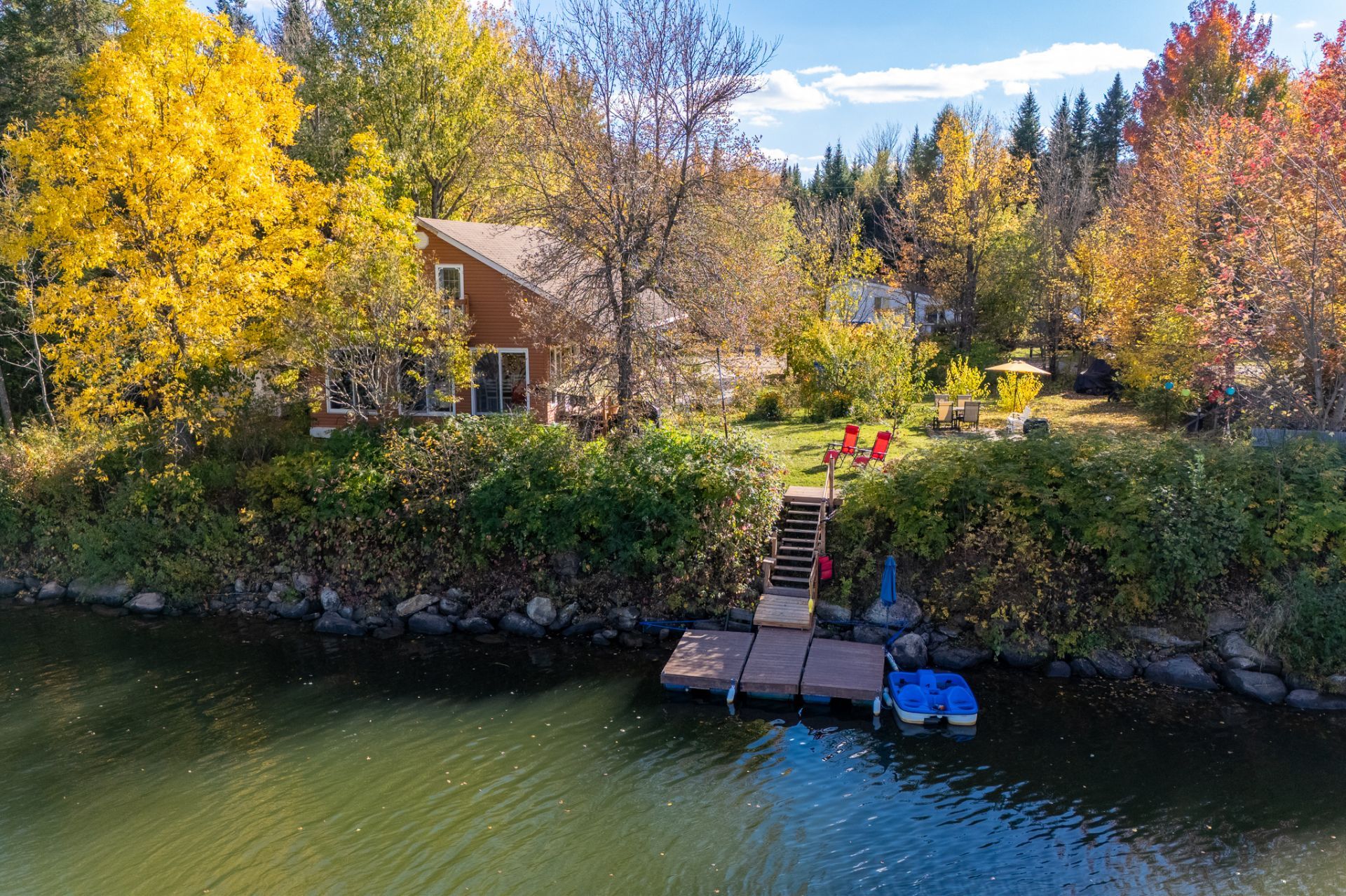 avec 120 pieds de façade en bordure de la rivière au
