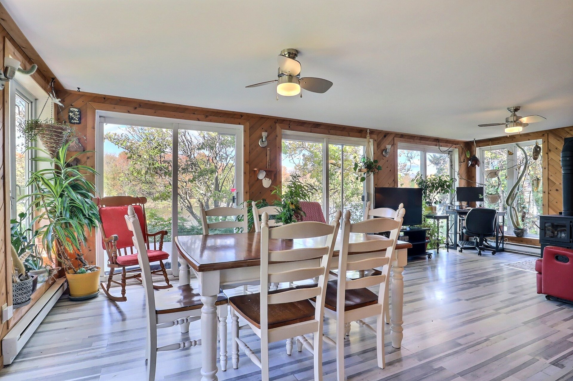 Spa, quais et escaliers d'accès, poêle à bois, stores, luminaires, système d'urgence à batterie sump pump, hotte micro-onde, restant de bois extérieur. Possibilité de vendre presque tout meublé selon entente avec le v...