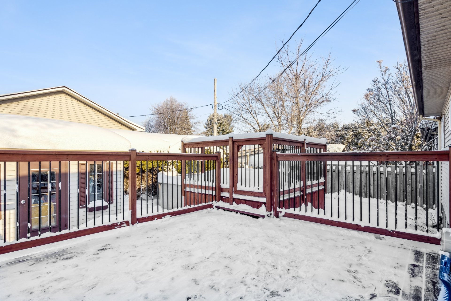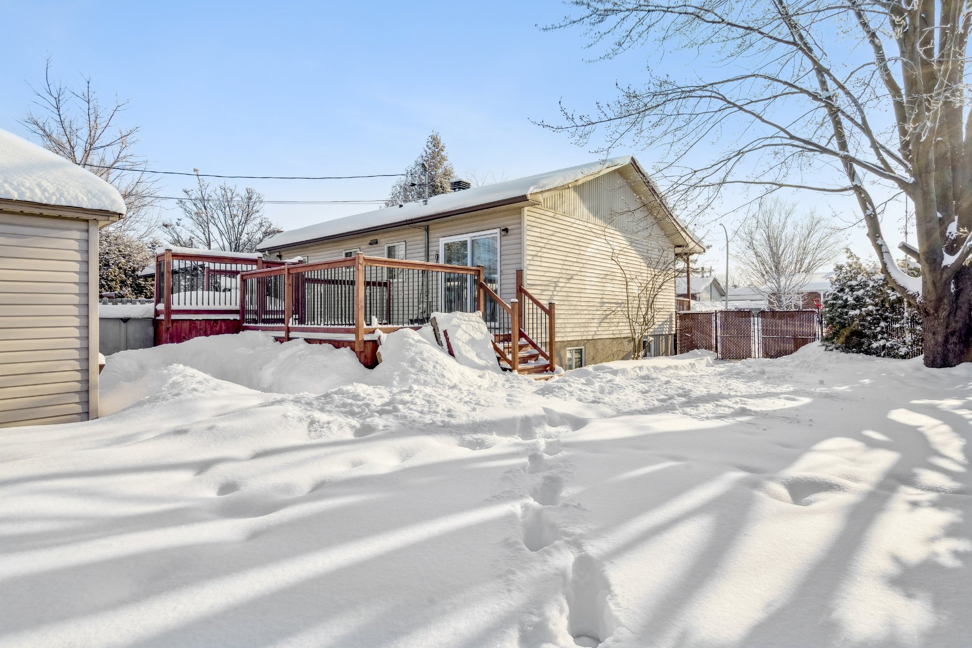 Sublime demeure au coeur de Blainville sur une rue cul-de-sac, offrant luminosité abondante grâce à son aire de vie ouverte et maintes améliorations au fil des ans. Le magnifique salon agrémenté de superbes planchers de bois s'ouvre sur une cuisine fonctionnelle aux armoires de bois. La propriété propose 3 chambres et 2 salles de bains, dont une récemment ajoutée avec douche vitrée et espace lavage. Le vaste sous-sol polyvalent a été rénové avec soin. À l'extérieur, profitez d'un beau terrain intime, cour clôturée, grand patio, terrasse, piscine hors terre et cabanon. Accès rapide à toutes les commodités essentielles. À visiter sans tarder!