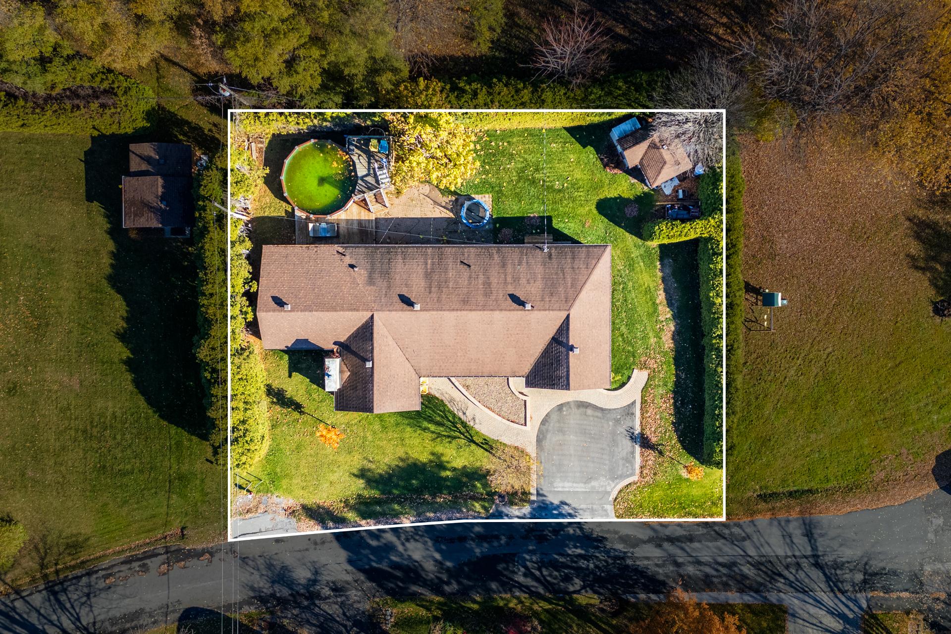 Luminaires, Stores, rideaux et tringles, balayeuse central et accessoires, 4 thermopompes murale, moteur et manette ouvre porte du garage, établie dans le garage, revêtement de plancher du garage, piscine, chauffe piscine, pompe et accessoires de piscine, cabanon.
