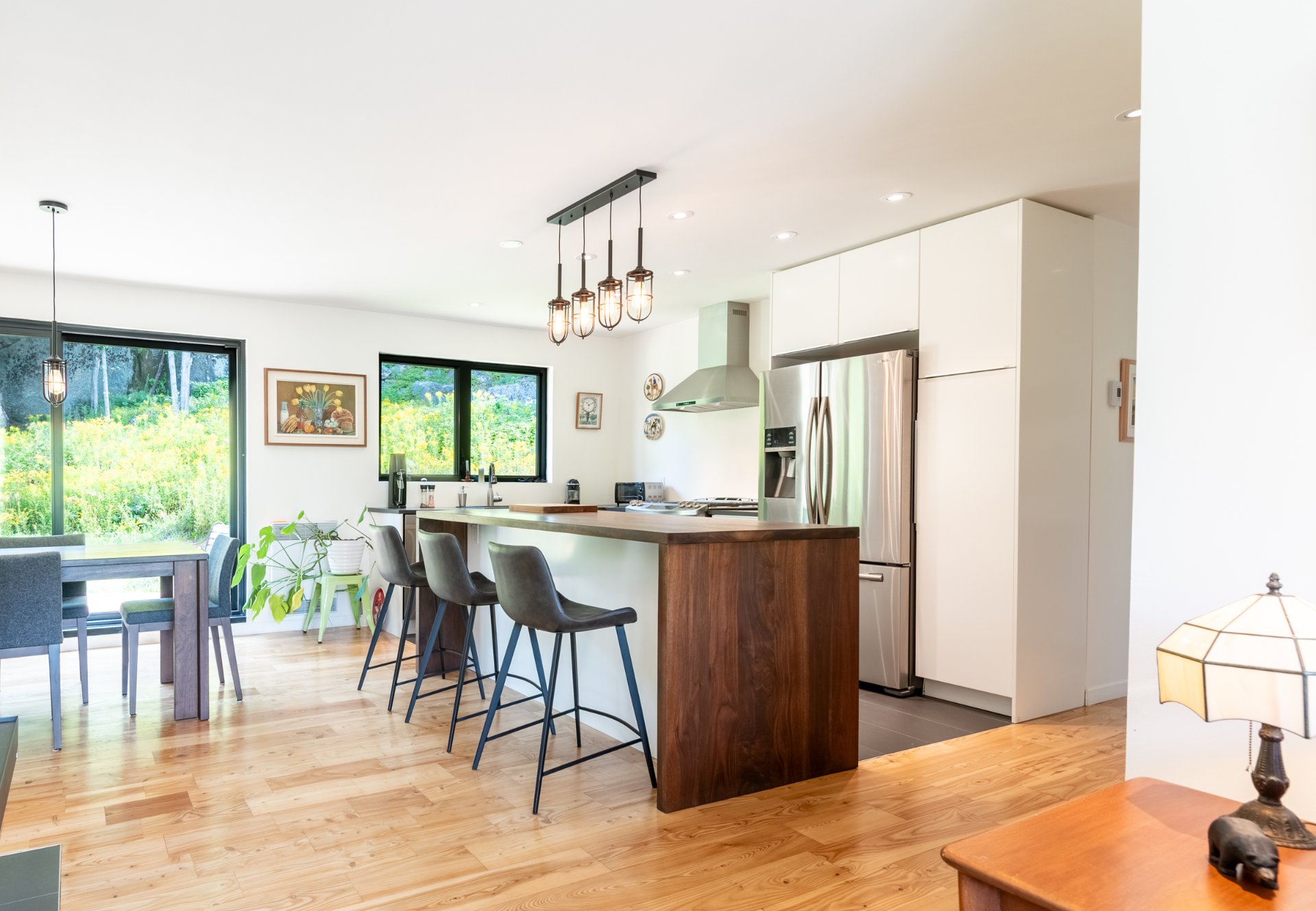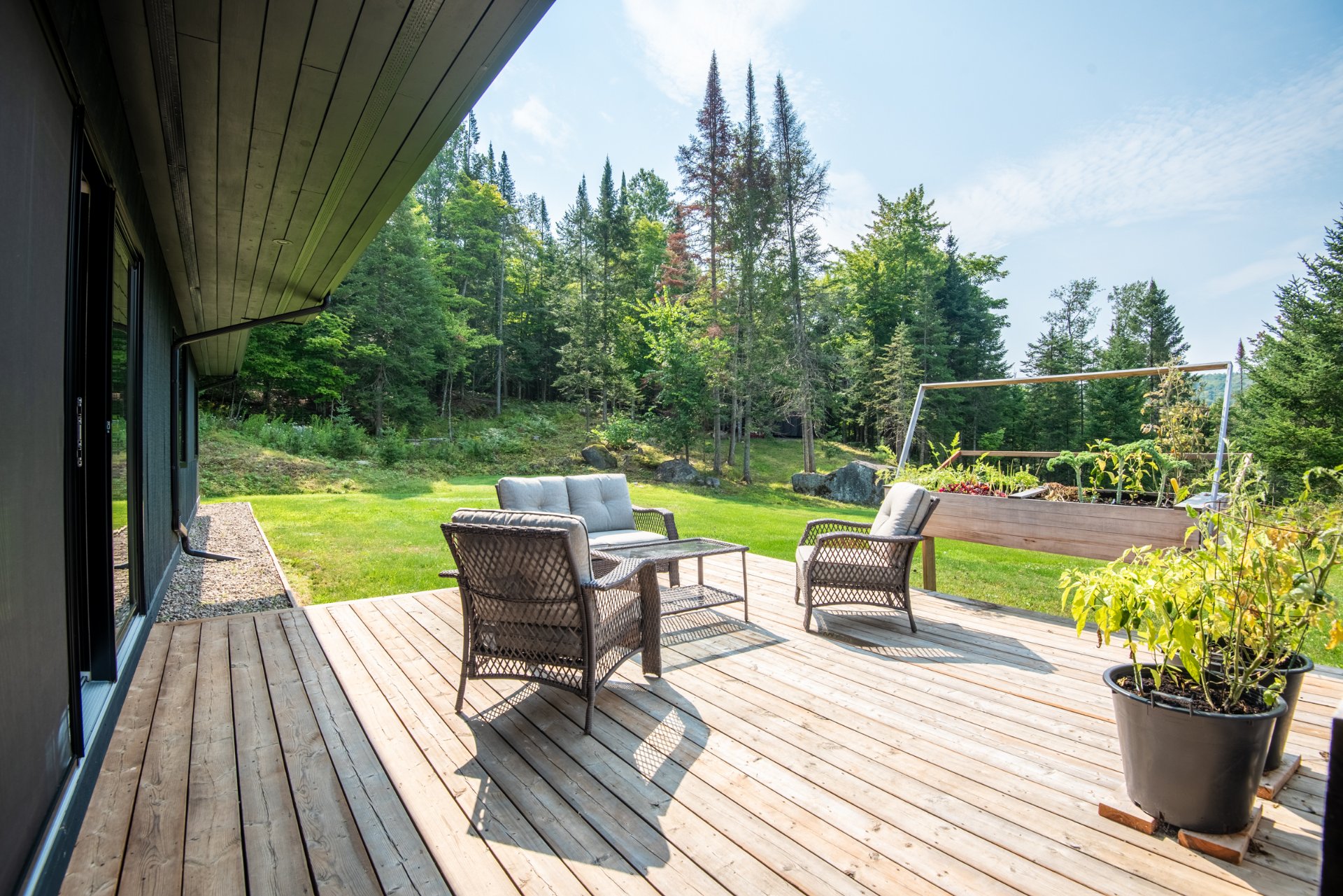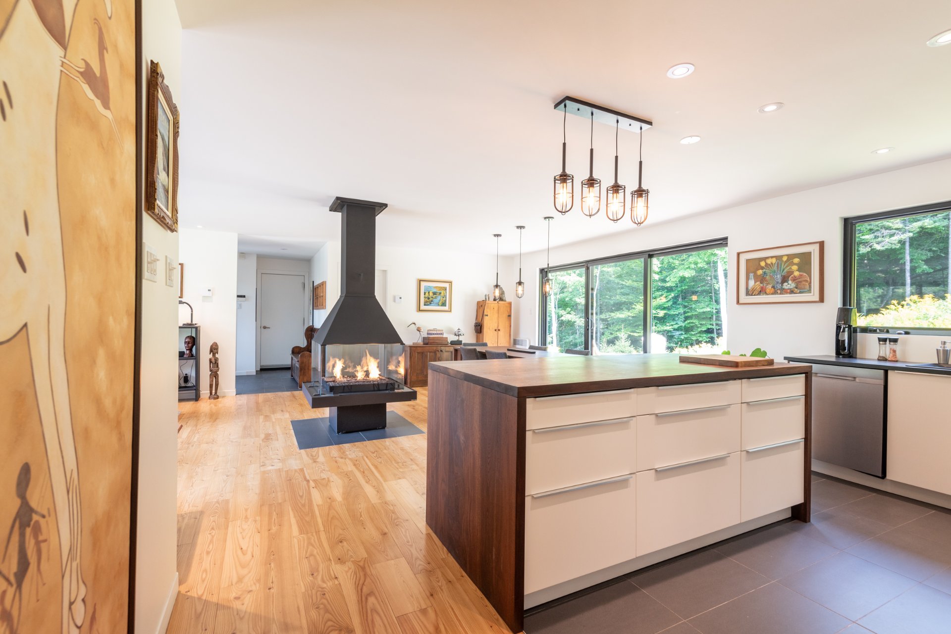 Propriété unique à seulement 2 km de Mont-Tremblant ! Entièrement rénovée en 2017, cette maison orientée sud-ouest est nichée sur un terrain privé de 3 acres en pleine forêt, sans voisins proches, offrant des pièces baignées de lumière, calme et intimité, tout en restant proche de toutes les activités et services. Elle comprend 3 chambres, 2 salles de bains, un foyer central au gaz, un garage double et un sauna pour un petit luxe. Une longue allée privée renforce le sentiment d'exclusivité. Location court terme possible. Un vrai coup de coeur assuré.