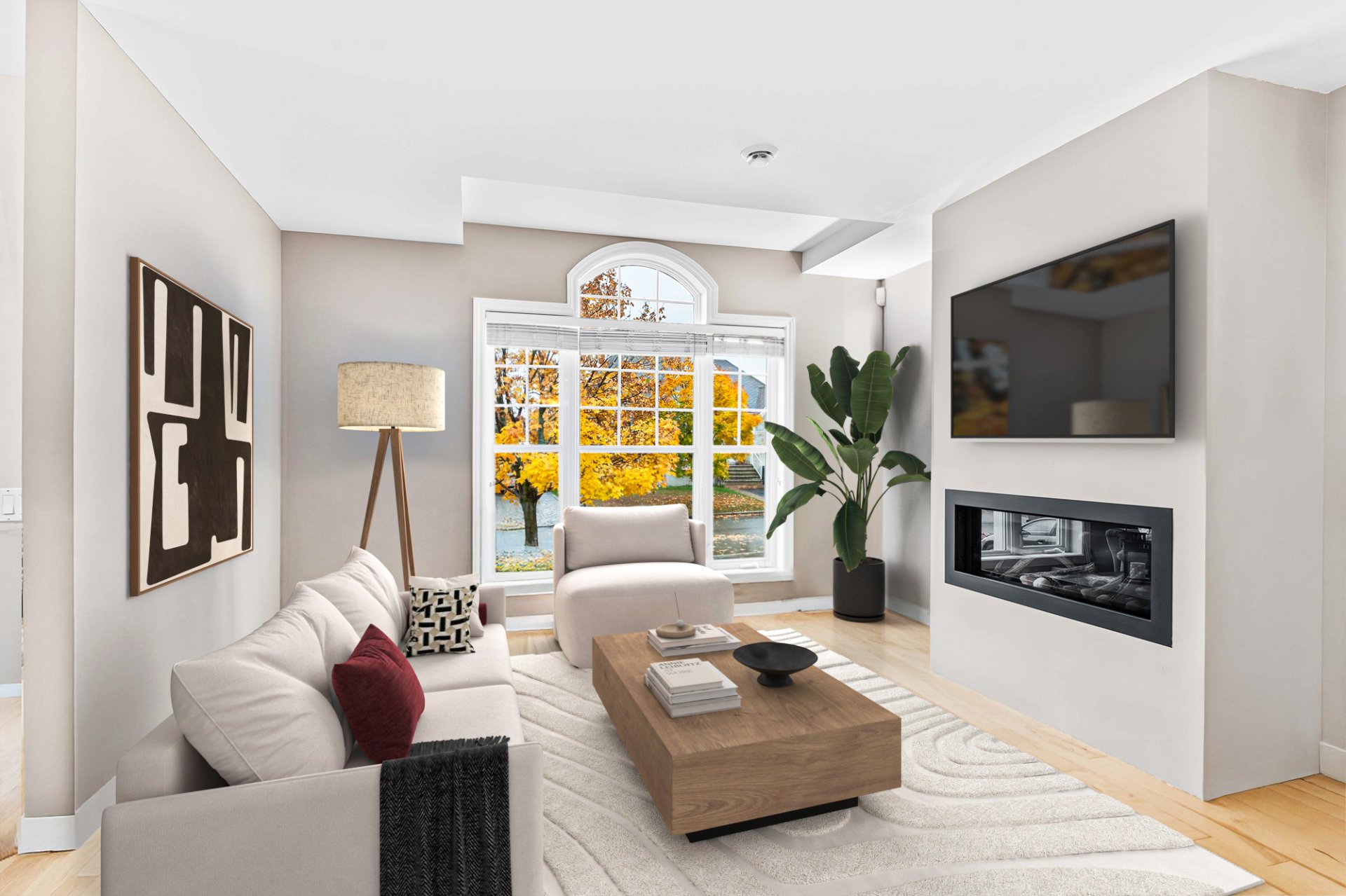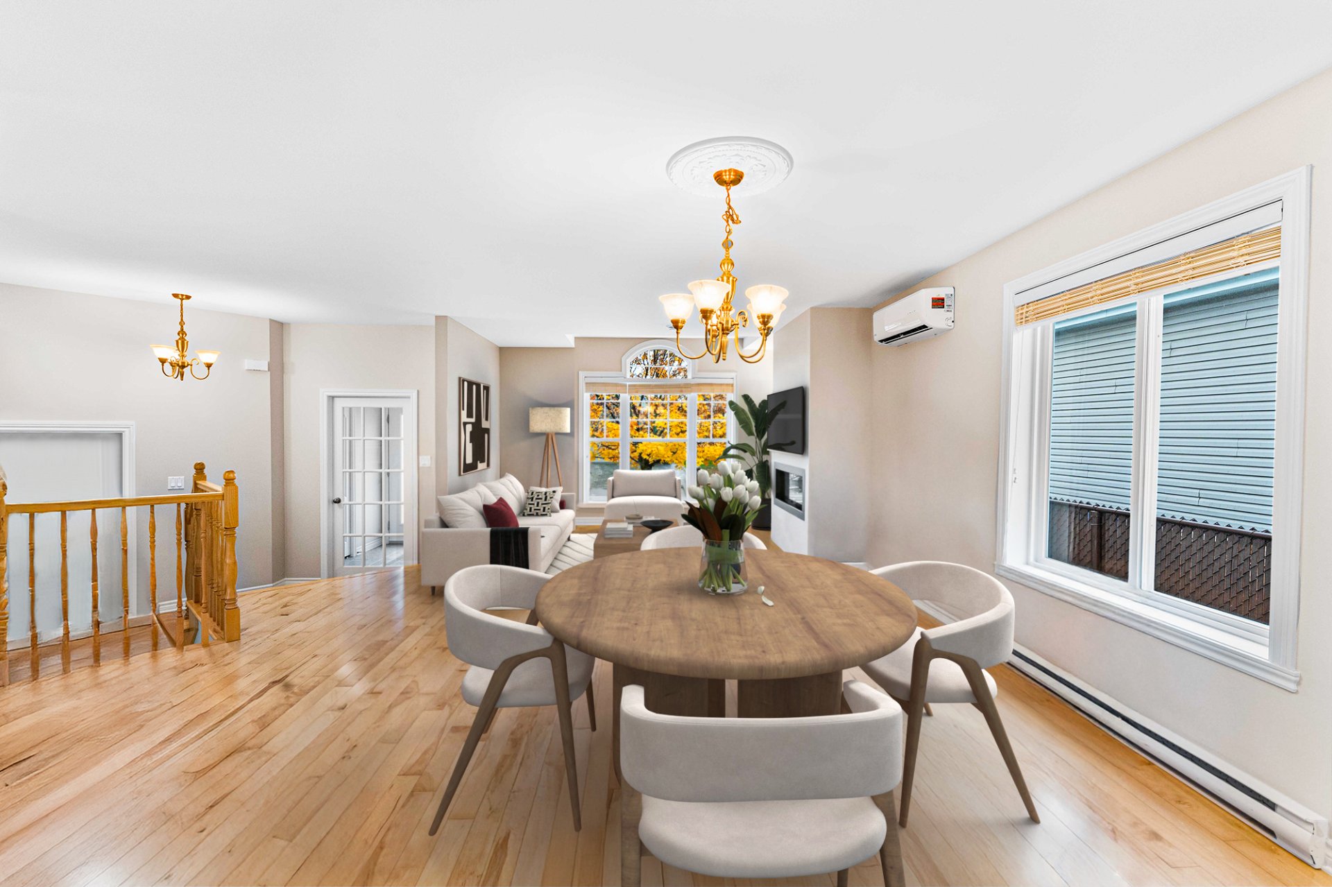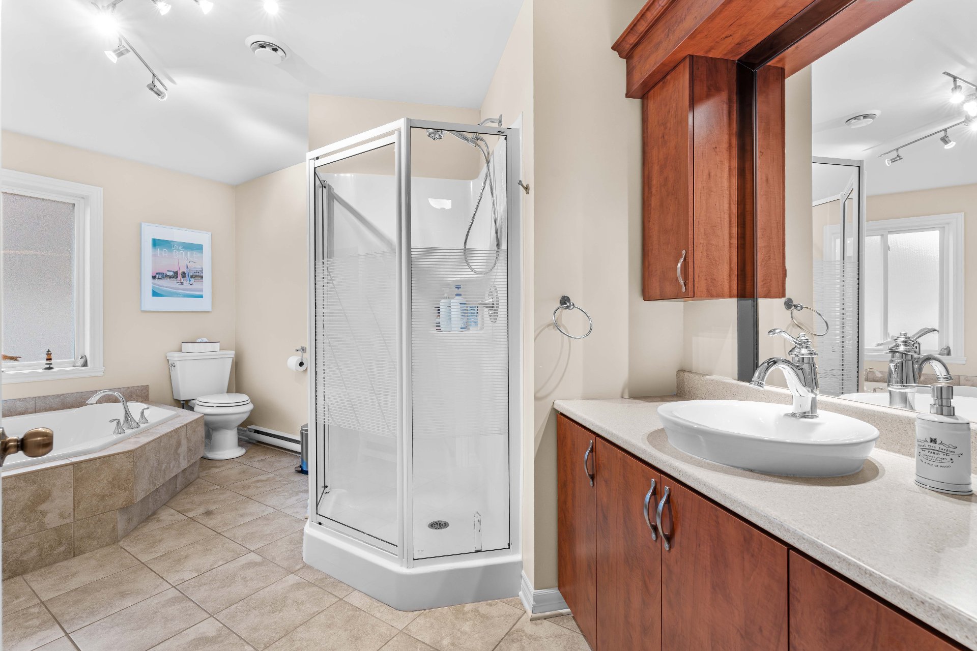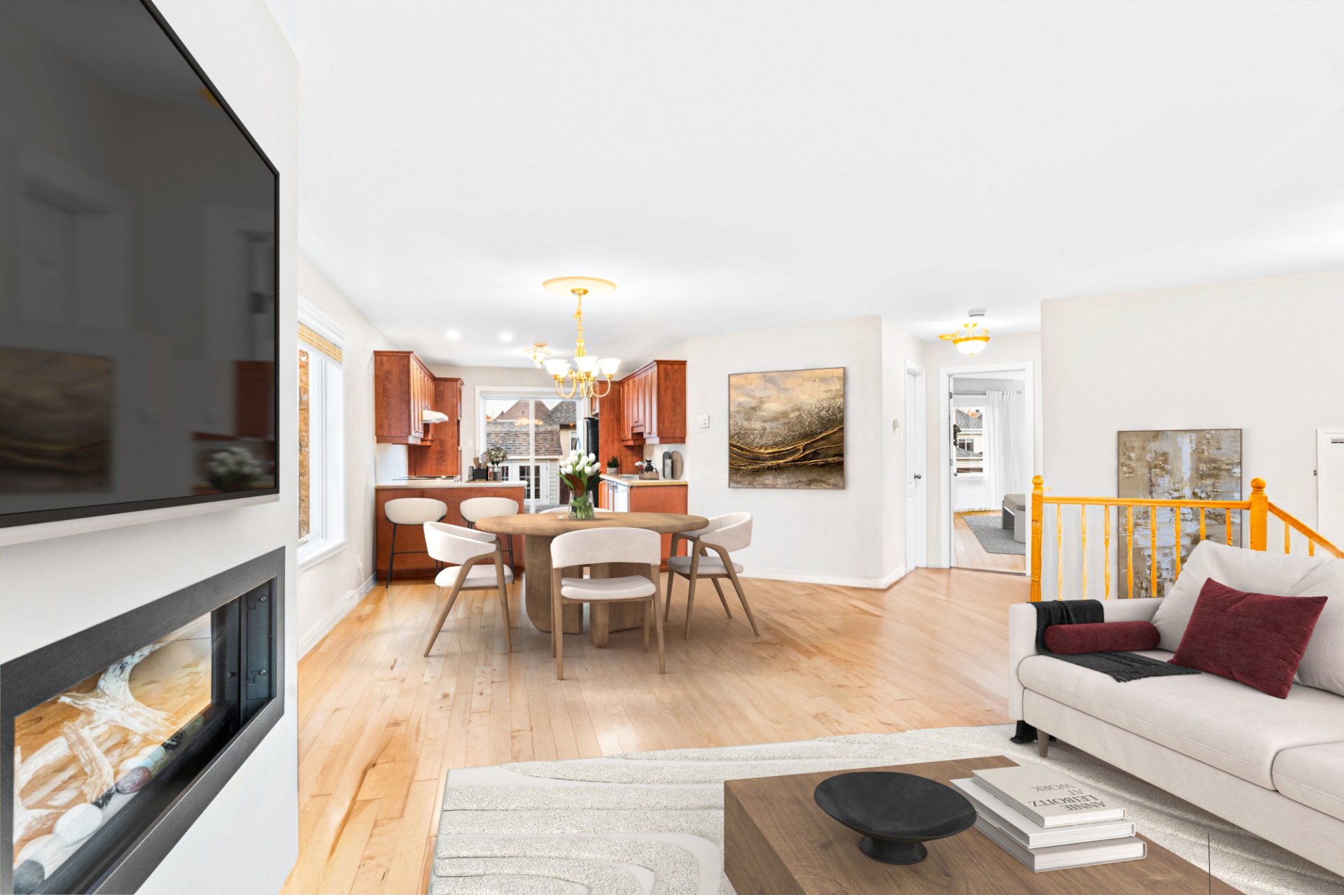 Luminaires, stores, rideaux et pôles, réservoir d'eau chaude, lave-vaisselle, système d'alarme, foyer gaz, supports aux murs de TV, aspirateur central, échangeur d'air, meuble de rangement de la salle familiale, ouvre...