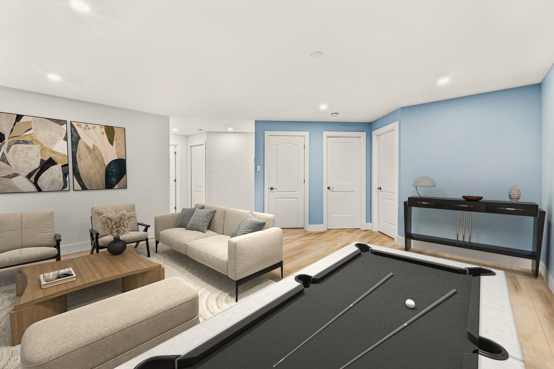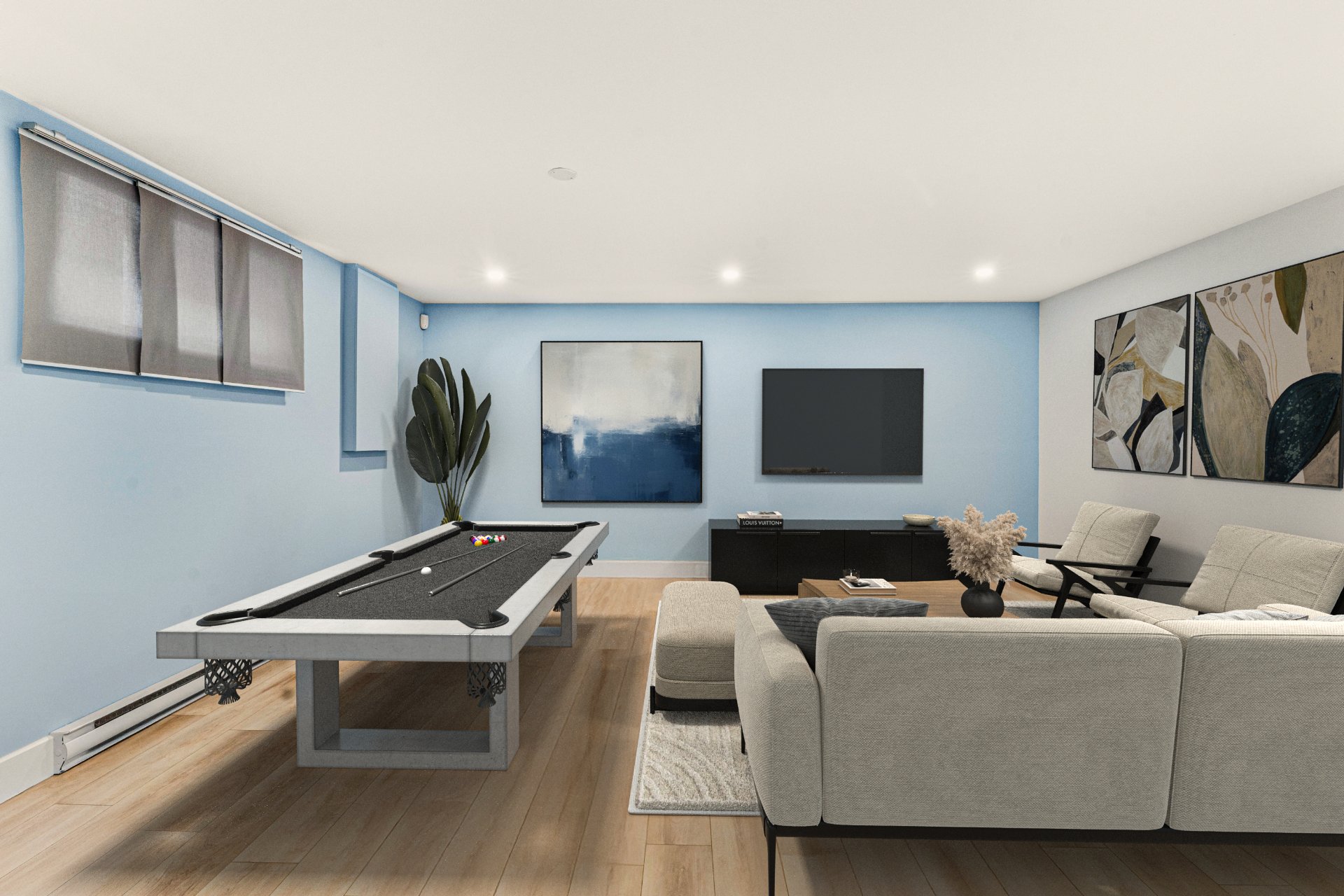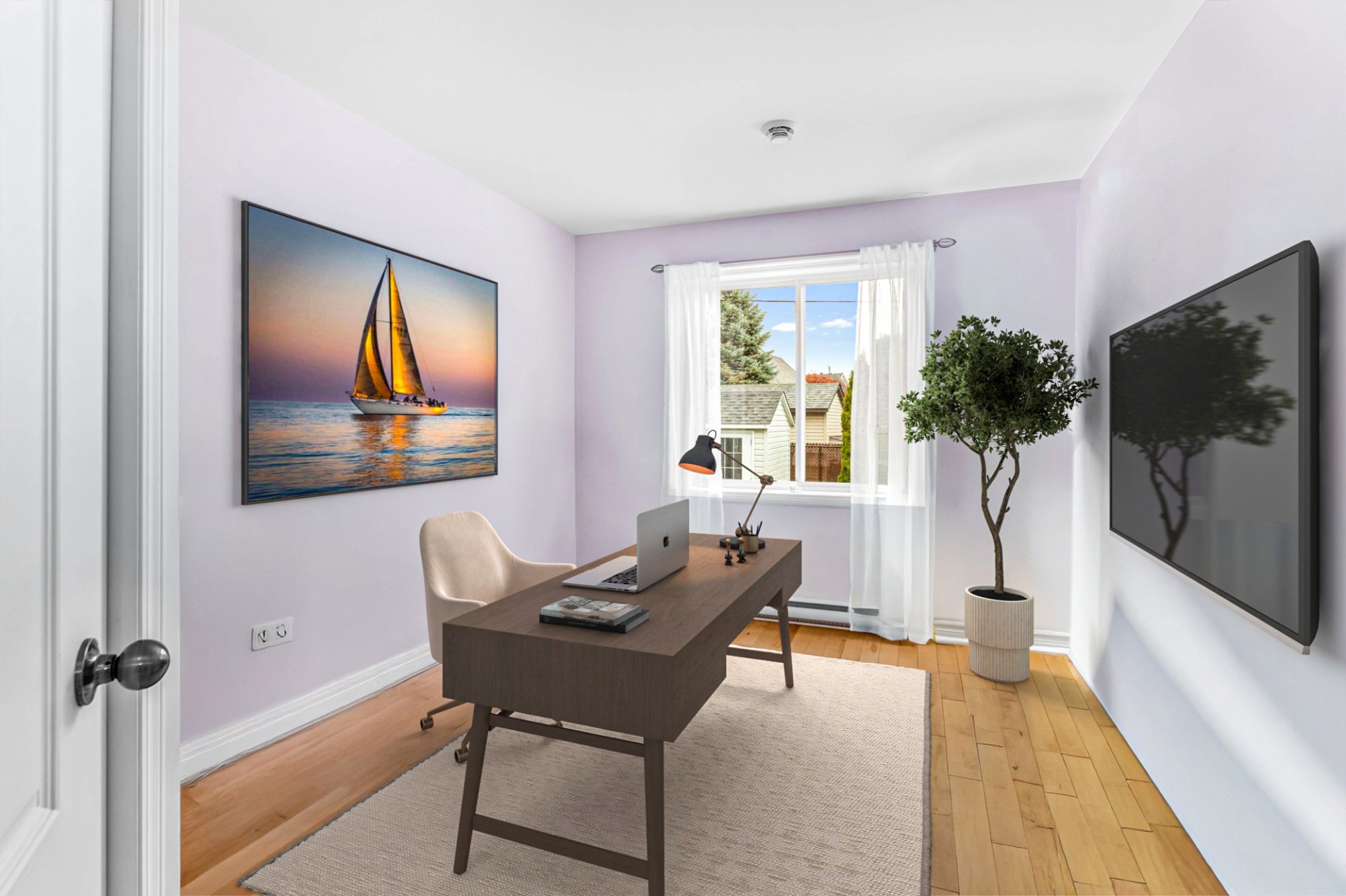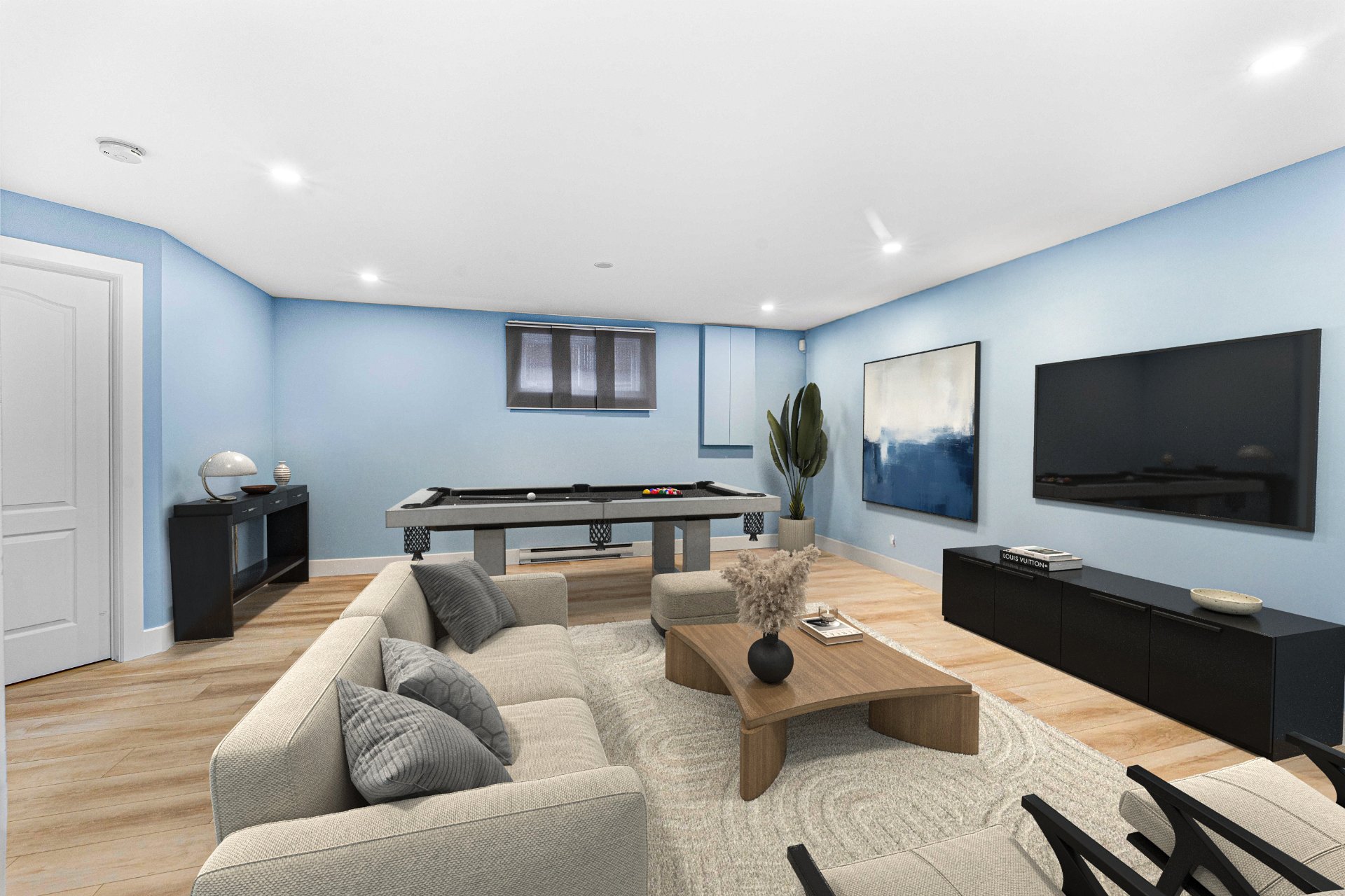 Luminaires, stores, rideaux et pôles, réservoir d'eau chaude, lave-vaisselle, système d'alarme, foyer gaz, supports aux murs de TV, aspirateur central, échangeur d'air, meuble de rangement de la salle familiale, ouvre...