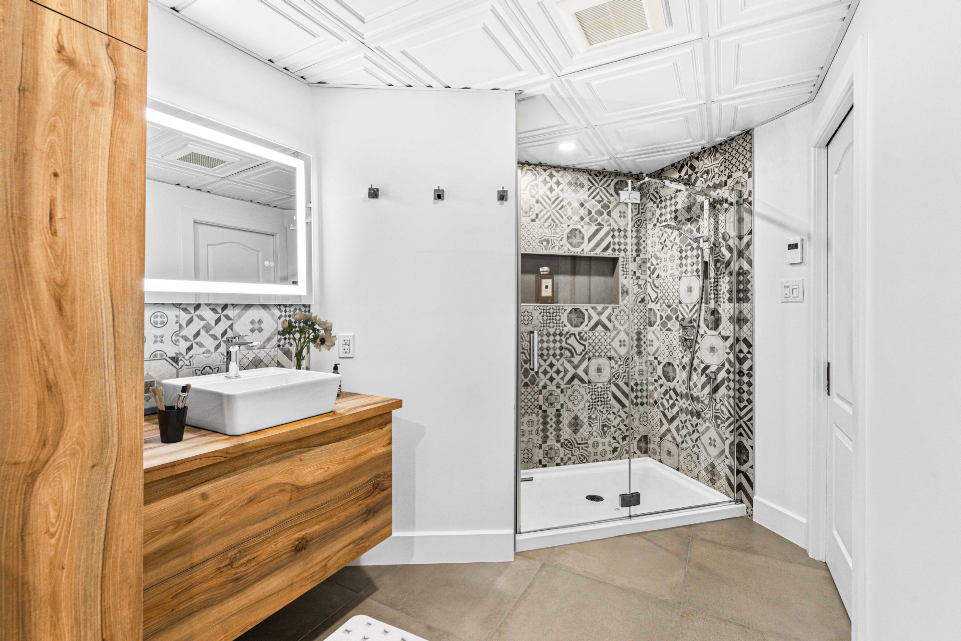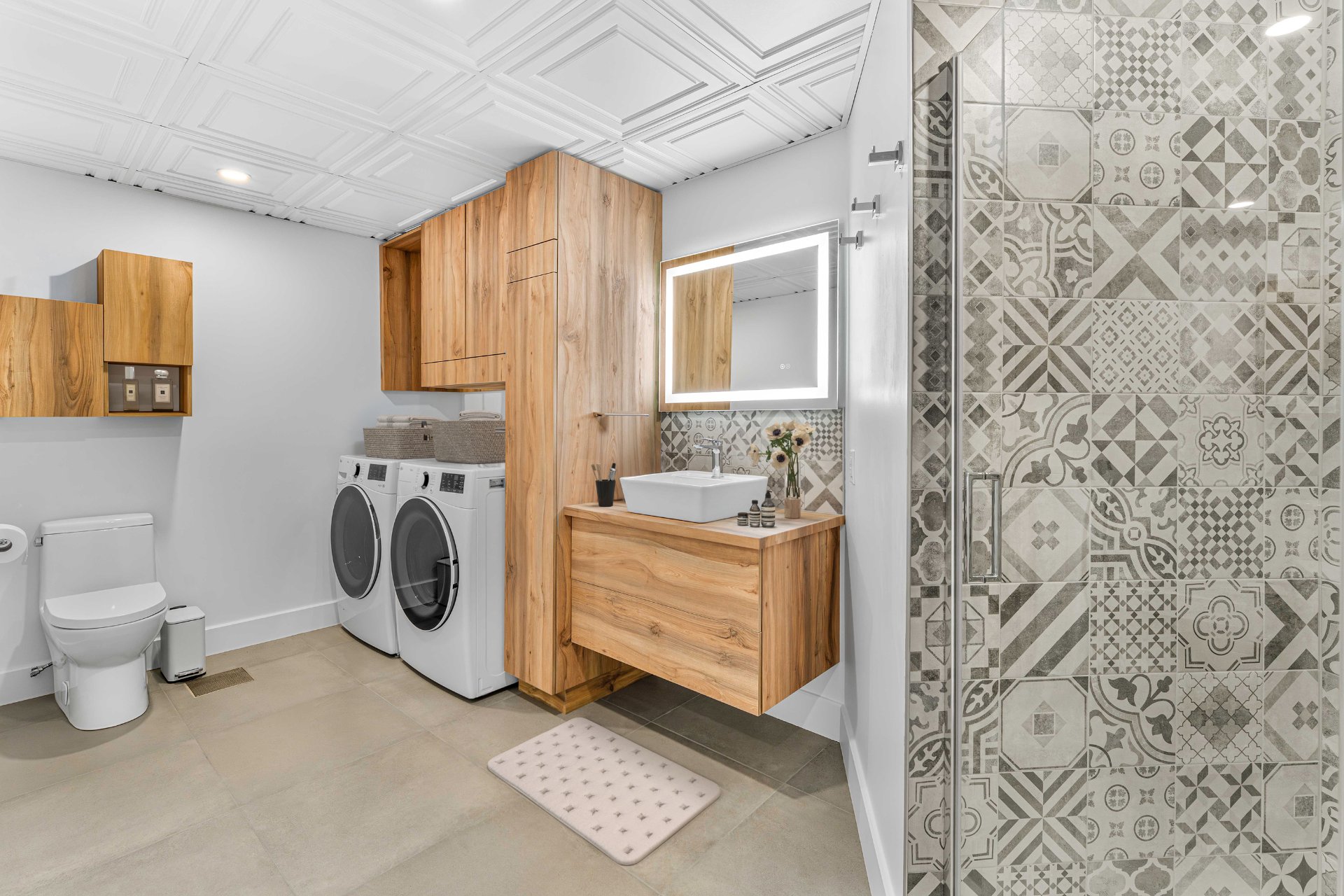 Voir plus Voir moinstéléviseurs aux murs, échelle de la salle de bain.