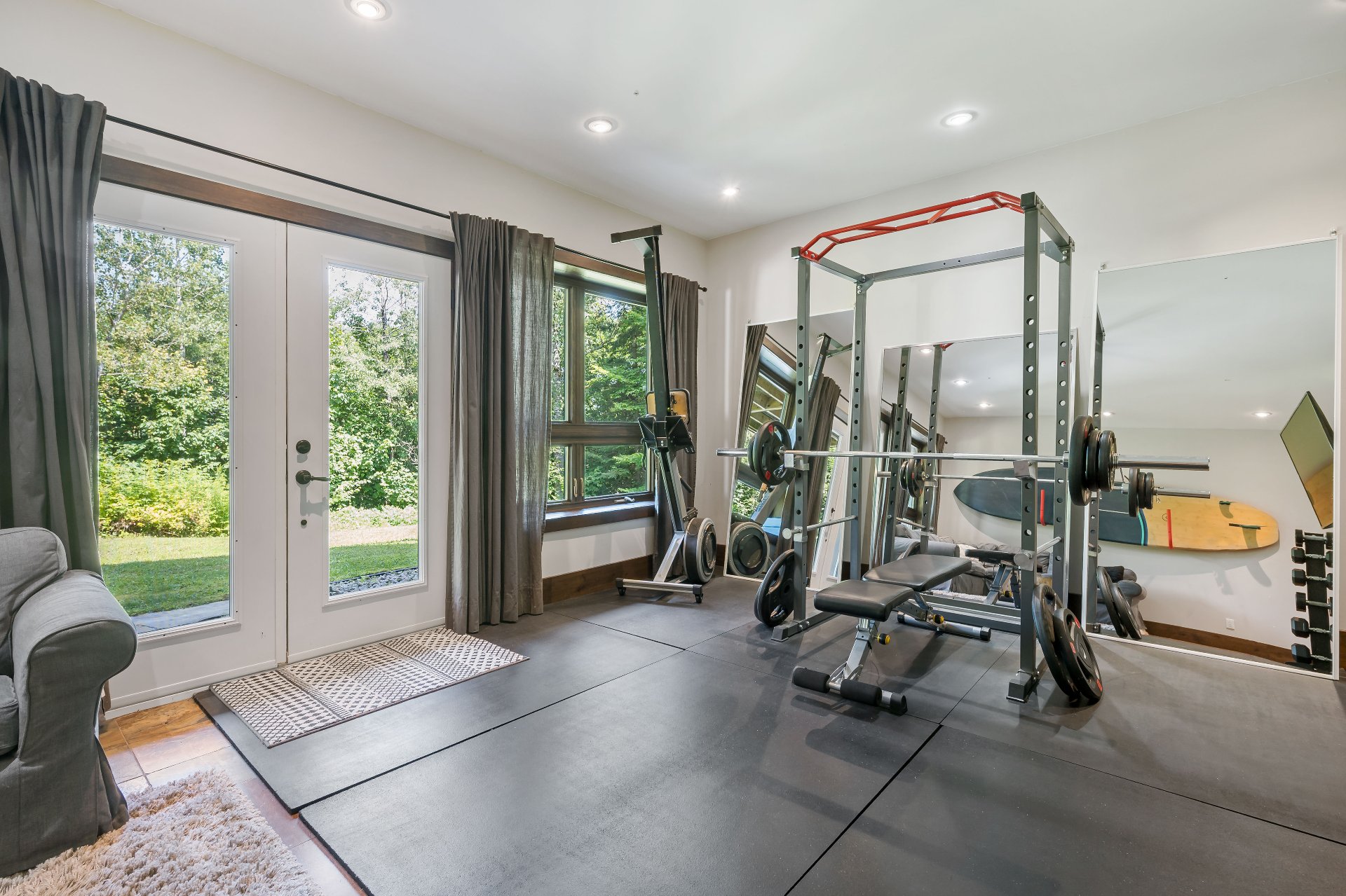 Électroménagers de la cuisine (réfrigérateur et congélateur, hotte de cuisinière, cuisinière au gaz (fourneau électrique), micro-onde, lave-vaisselle, cellier et frigo de l'îlot, fixtures, rideaux et pôles à rideaux, aménagement sur mesure des walk-in, thermopompe murale, aspirateur central et acc., réservoir eau chaude (2021), adoucisseur d'eau au sel, échangeur d'air , génératrice automatique 16 000W, installation (sans la borne) pour voiture électrique, cabanon amovible, spa.