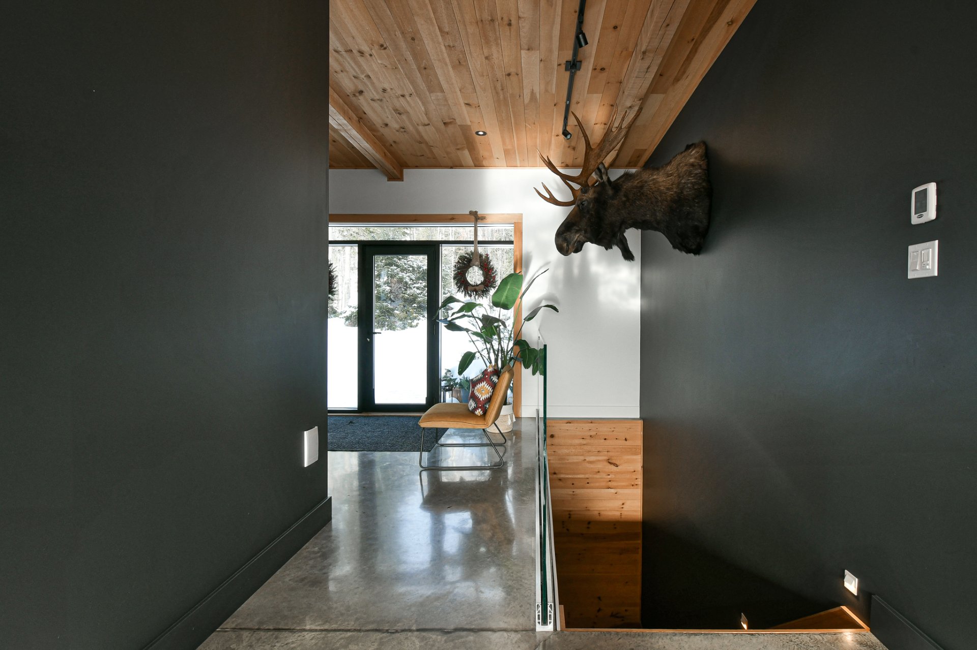 Dès l'entrée, l'architecture contemporaine et les planchers