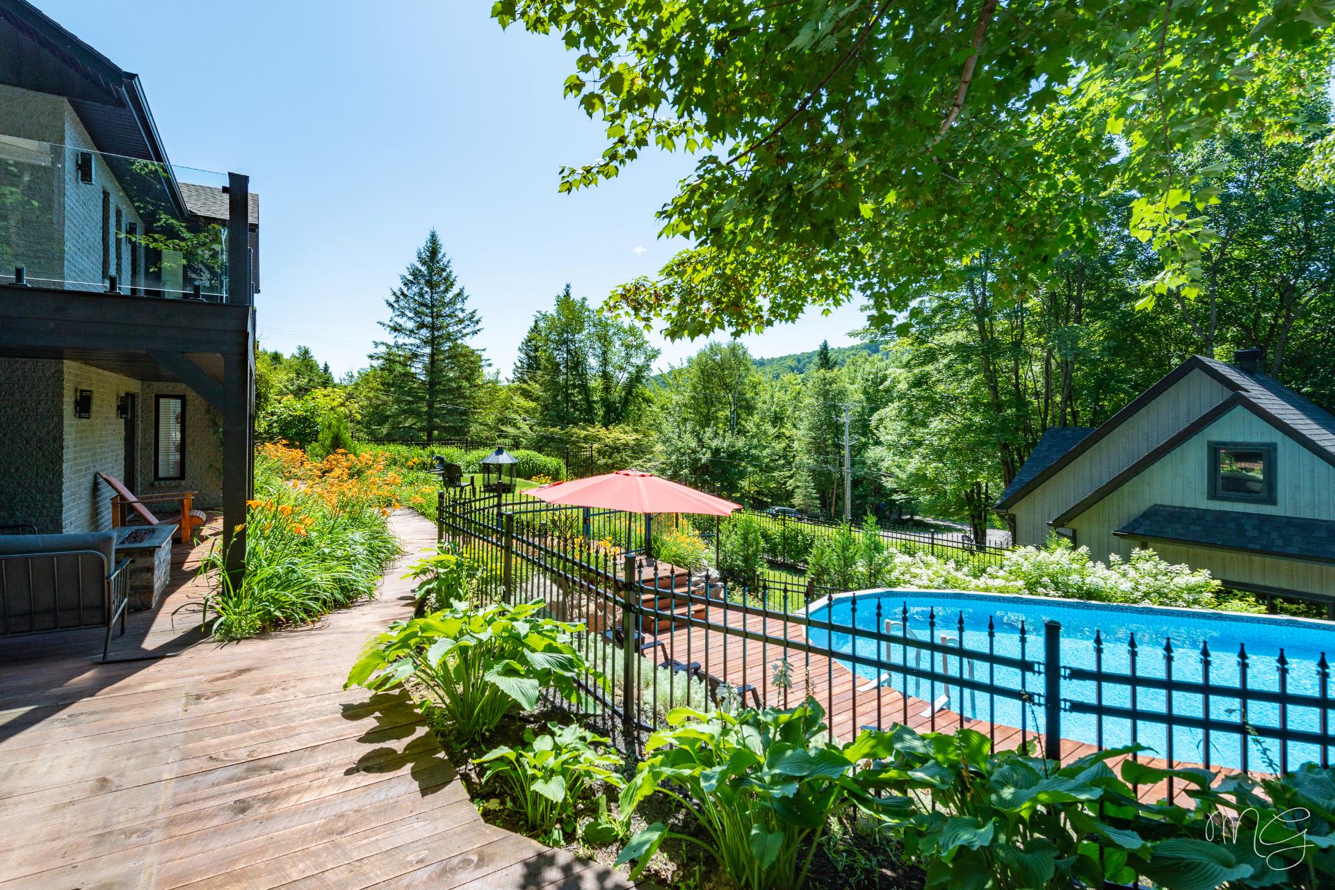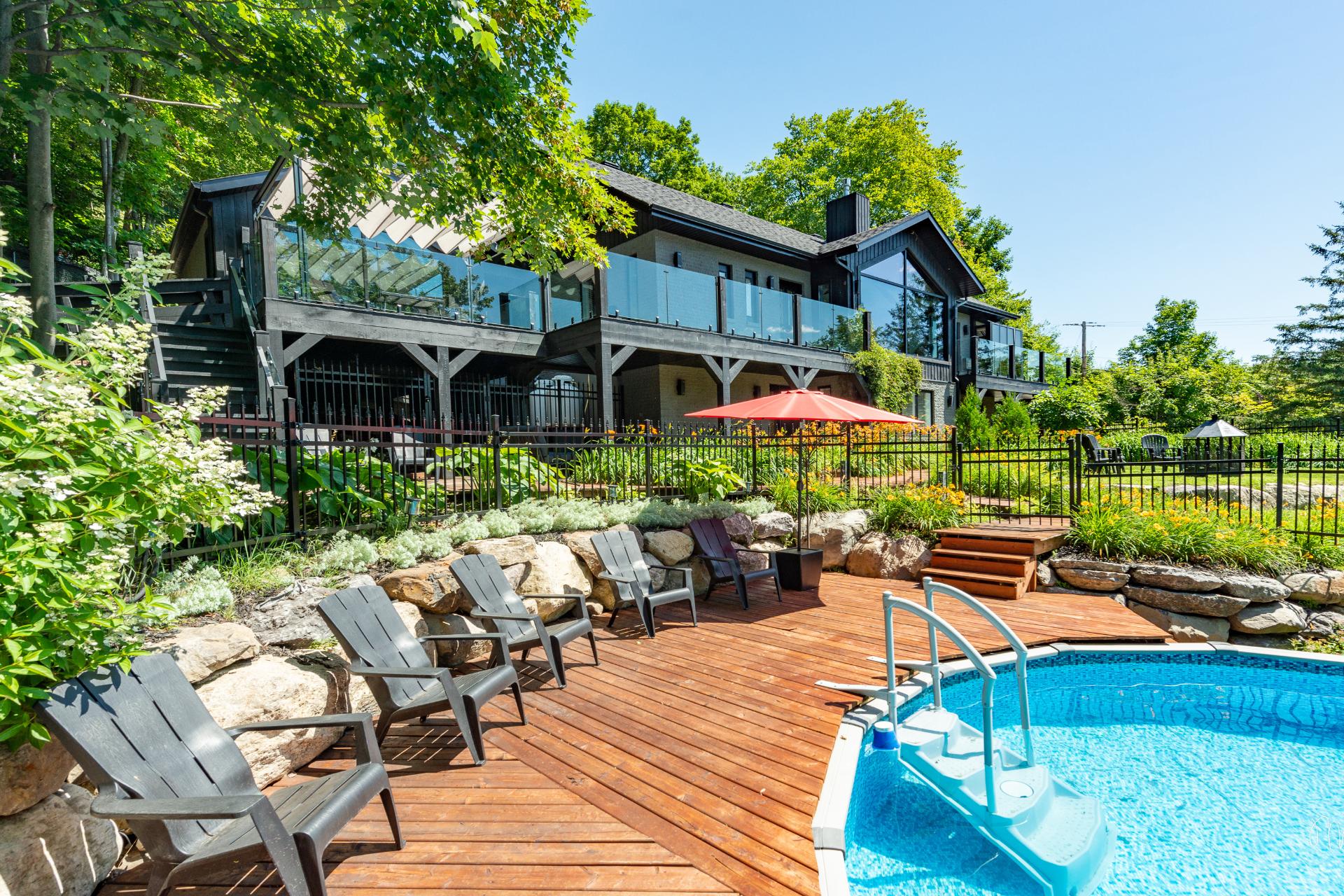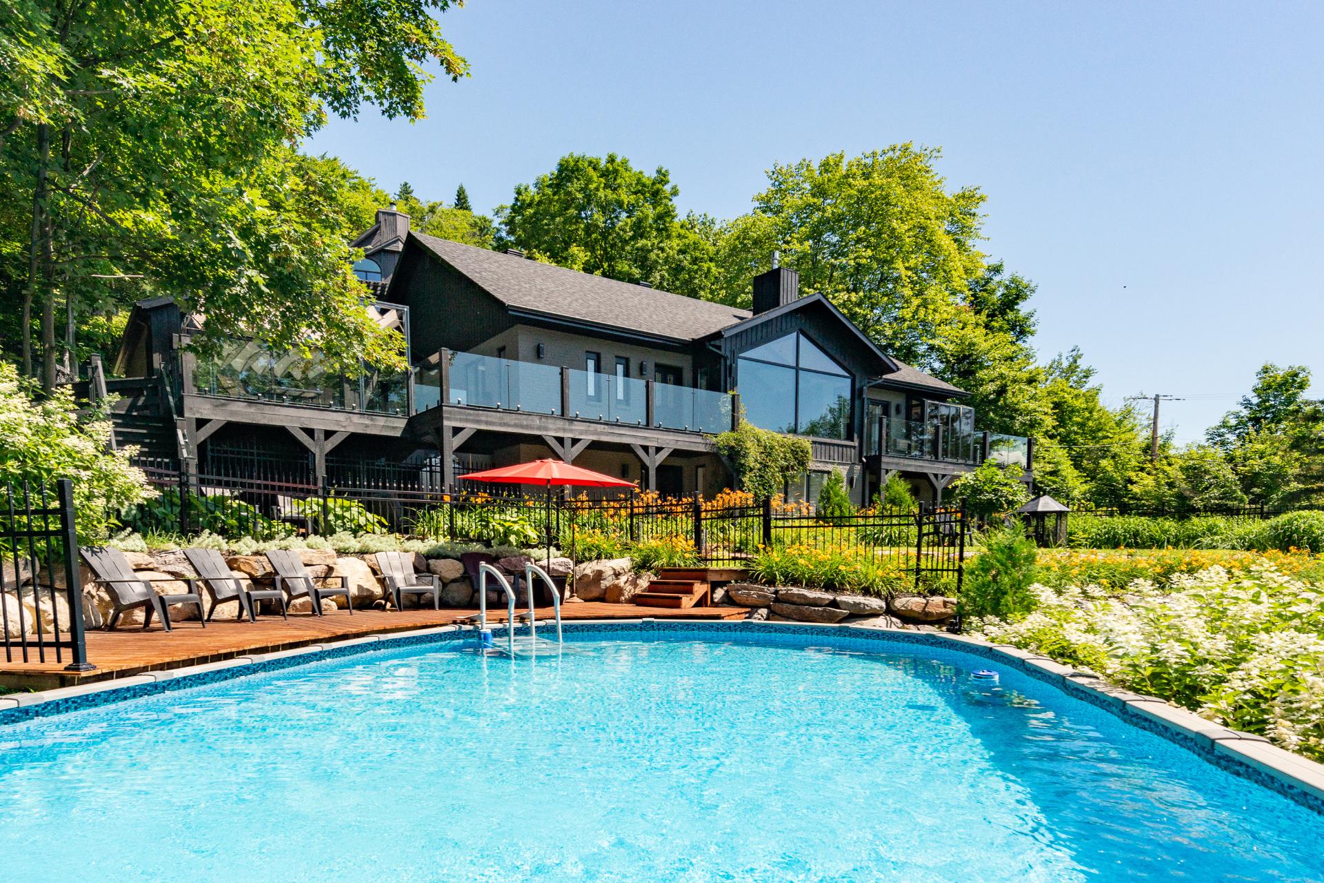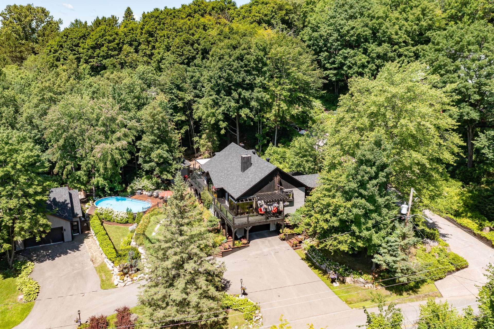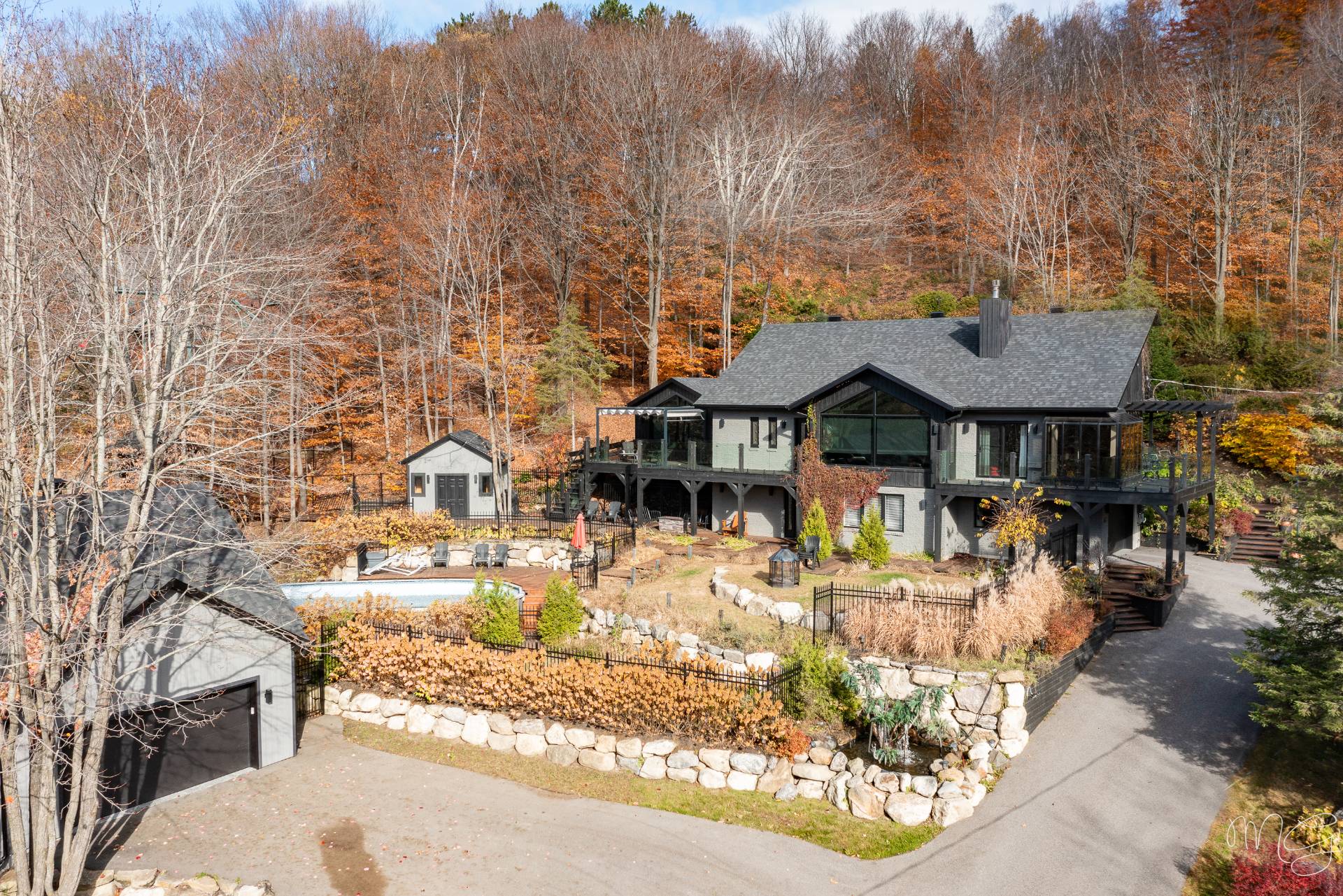 *Le charme des Laurentides* *VUE FÉÉRIQUE* Magnifique propriété sise en flanc de montagne sur un grand terrain de plus de 26000 pi2 soigneusement aménagé offrant une vue dégagée sur les pentes. Ayant bénéficié d'une refonte majeure dans les dernières années, la maison offre 4 chambres, 2 salles de bains rénovée et une superbe cuisine en merisier avec comptoirs en granite. Aménagement paysager tout simplement spectaculaire incluant plusieurs zones de détente, piscine et même un terrain de pickleball! Superbe garage double totalement aménagé idéal pour bricoleur. Emplacement de choix près de tous les services et accès rapide A-15. Impeccable !