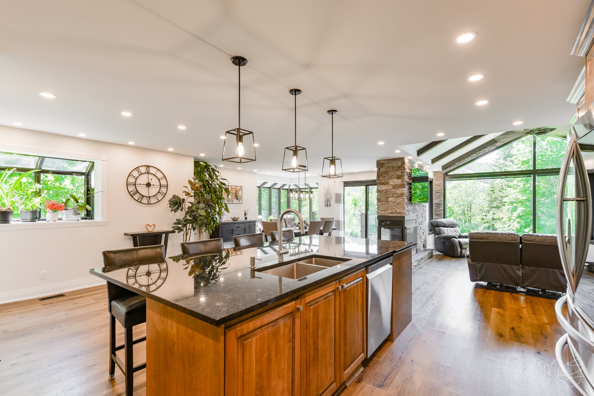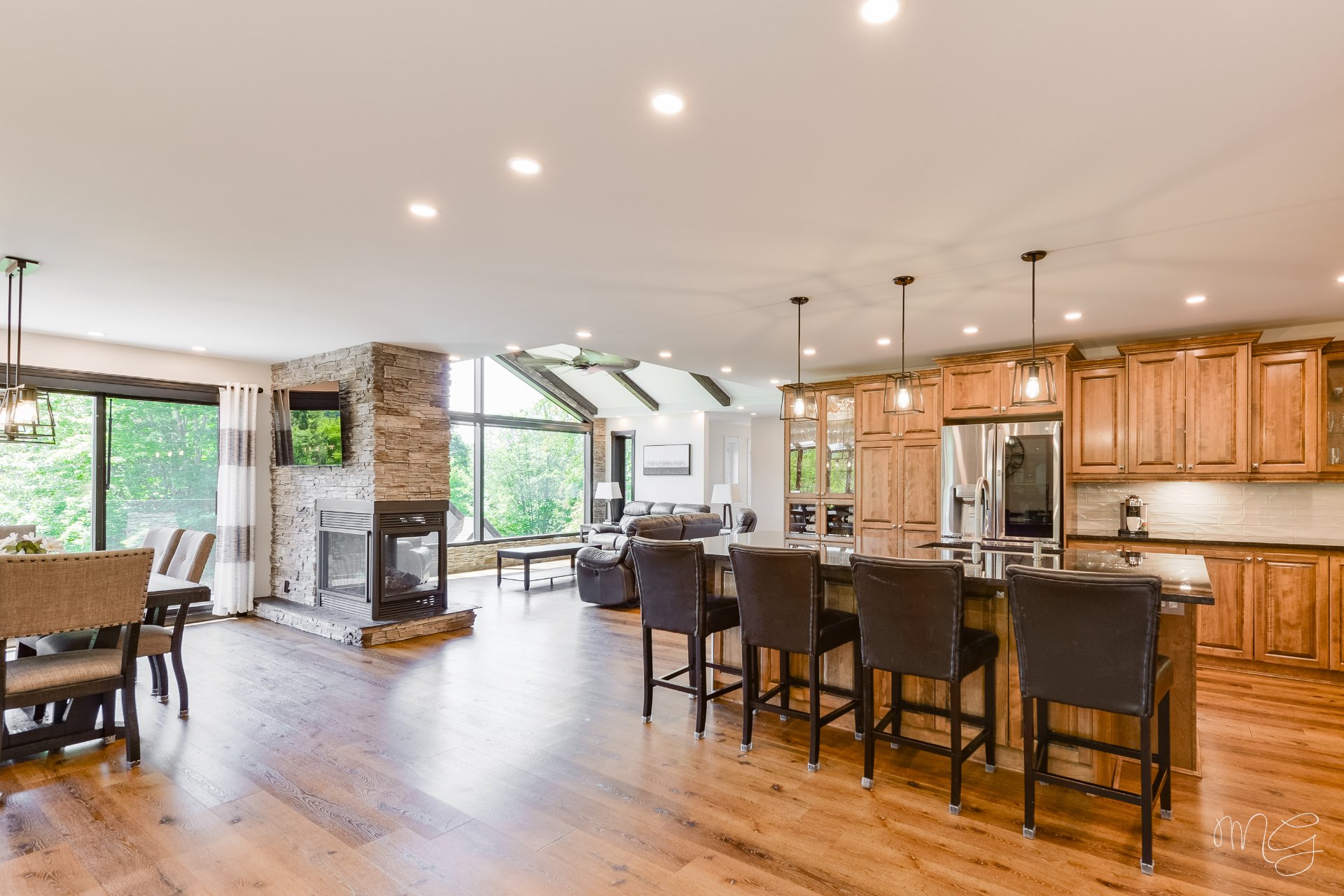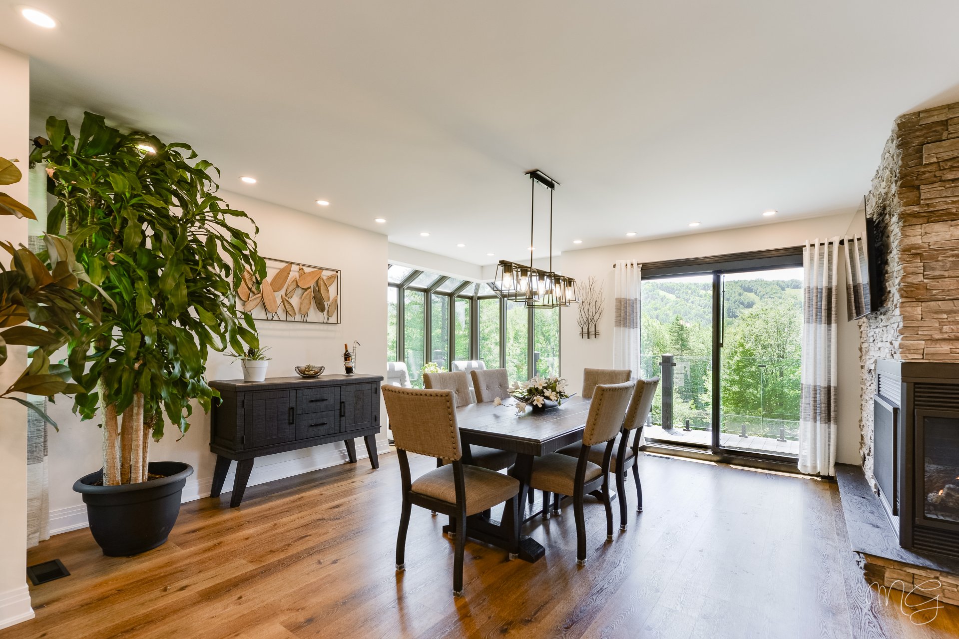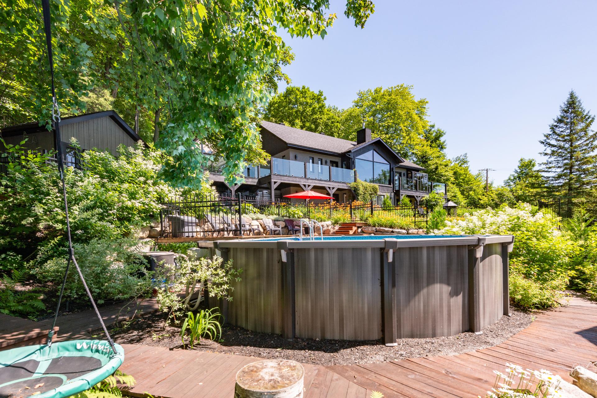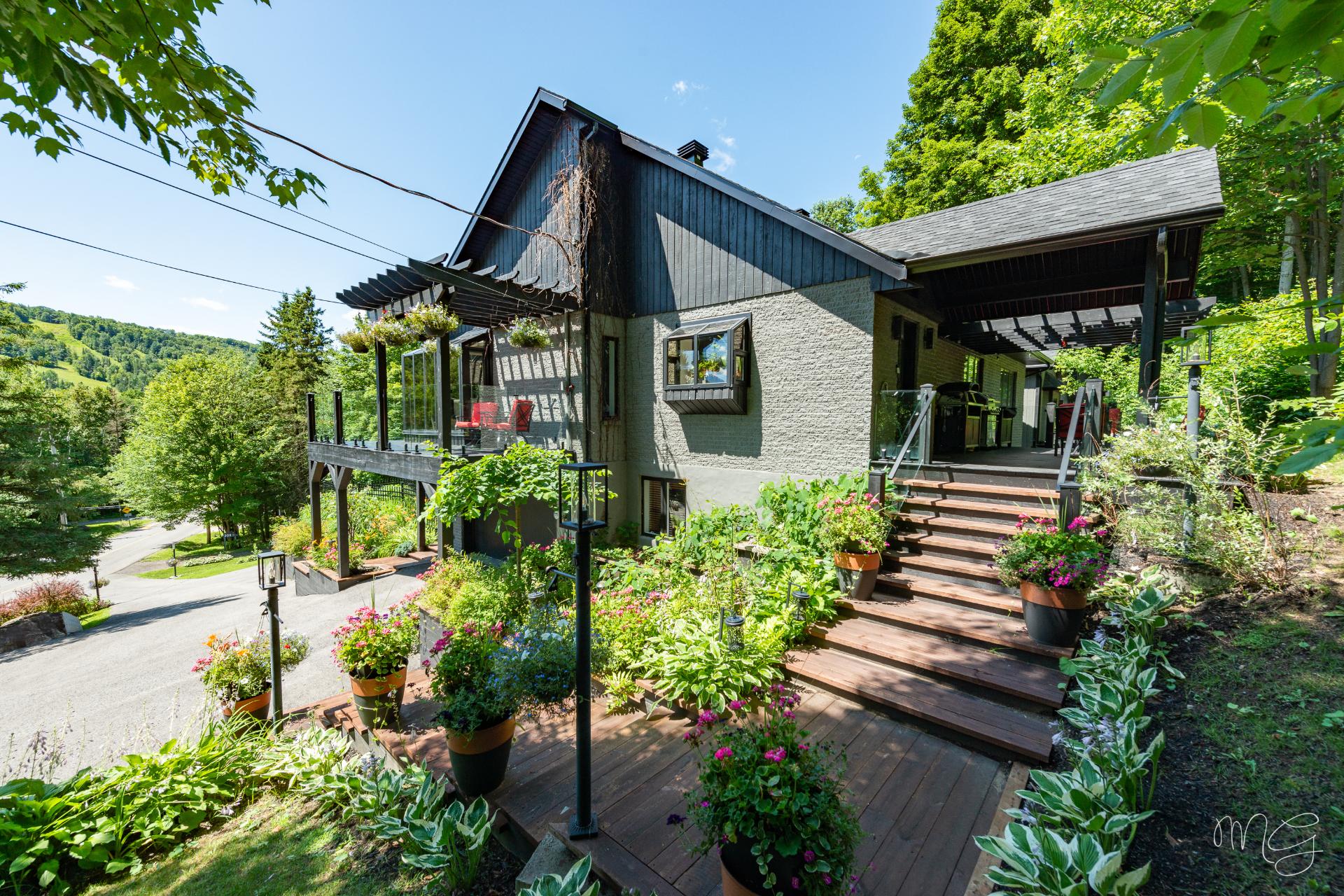 *Le charme des Laurentides* *VUE FÉÉRIQUE* Magnifique propriété sise en flanc de montagne sur un grand terrain de plus de 26000 pi2 soigneusement aménagé offrant une vue dégagée sur les pentes. Ayant bénéficié d'une refonte majeure dans les dernières années, la maison offre 4 chambres, 2 salles de bains rénovée et une superbe cuisine en merisier avec comptoirs en granite. Aménagement paysager tout simplement spectaculaire incluant plusieurs zones de détente, piscine et même un terrain de pickleball! Superbe garage double totalement aménagé idéal pour bricoleur. Emplacement de choix près de tous les services et accès rapide A-15. Impeccable !