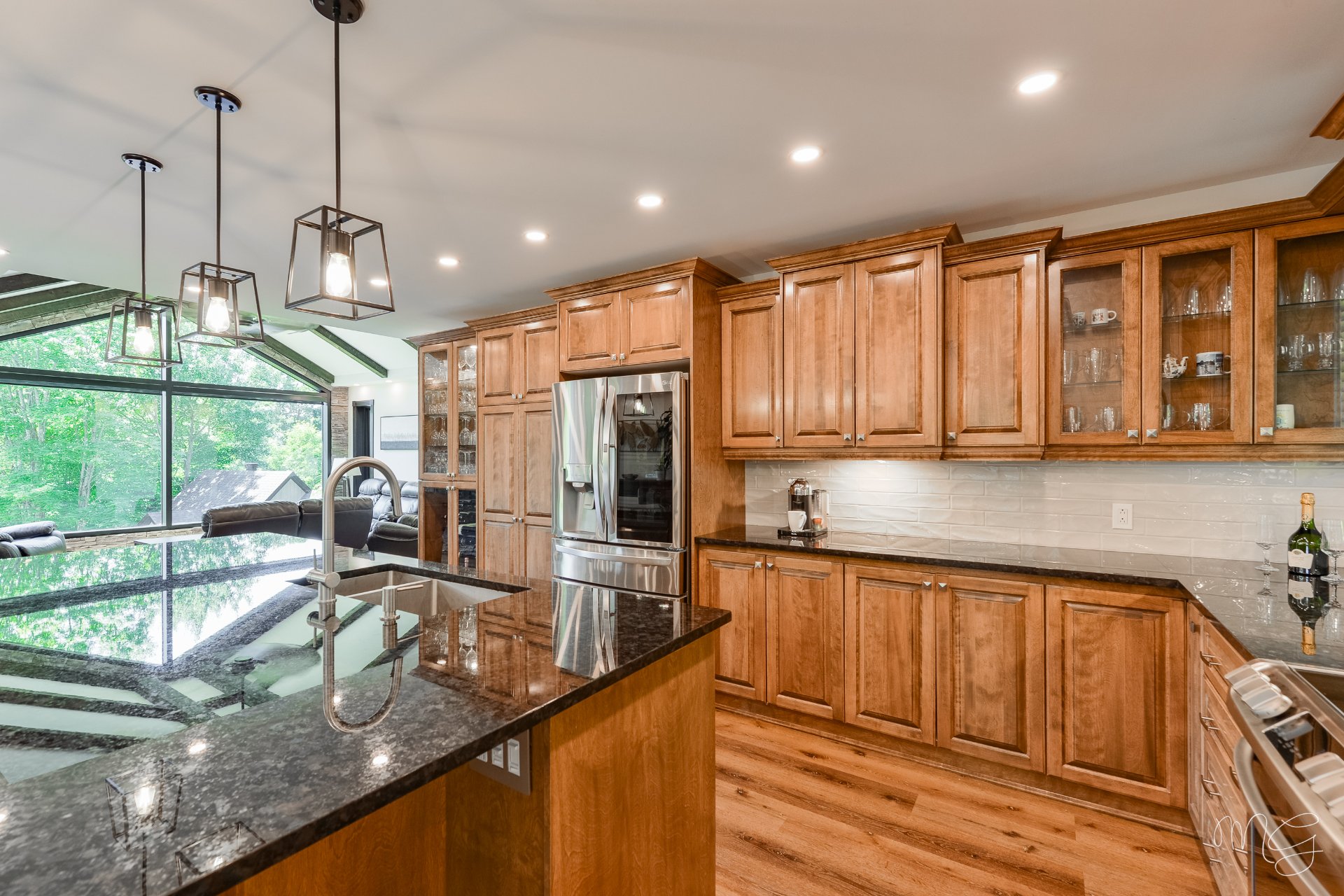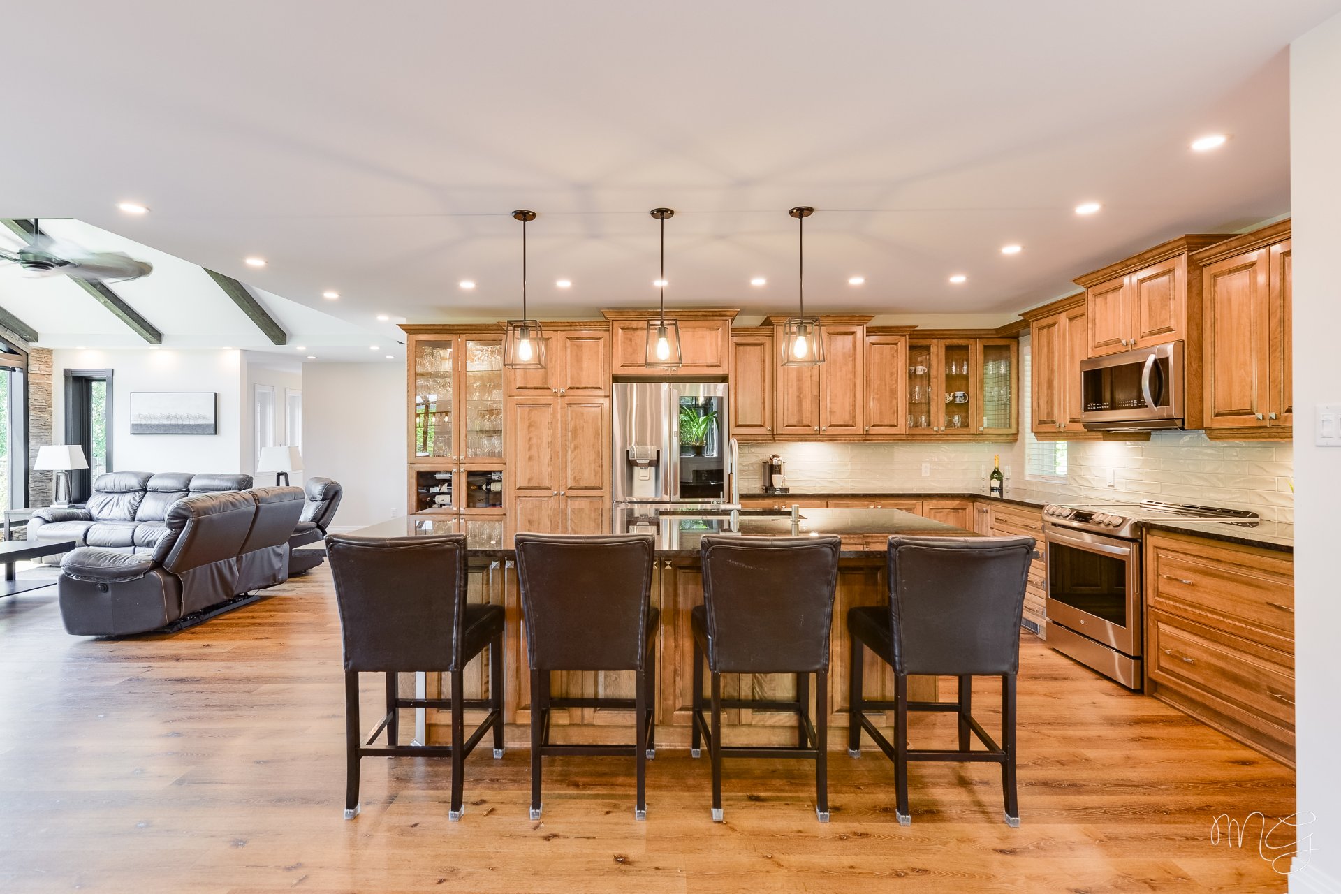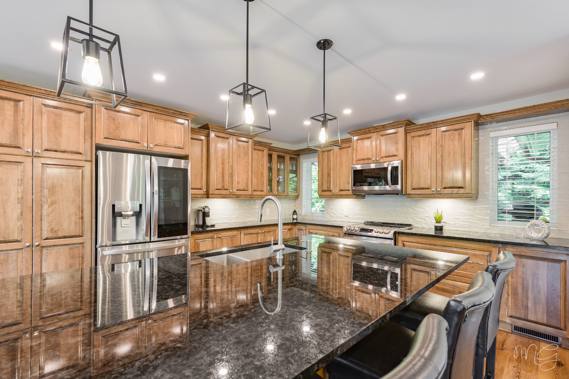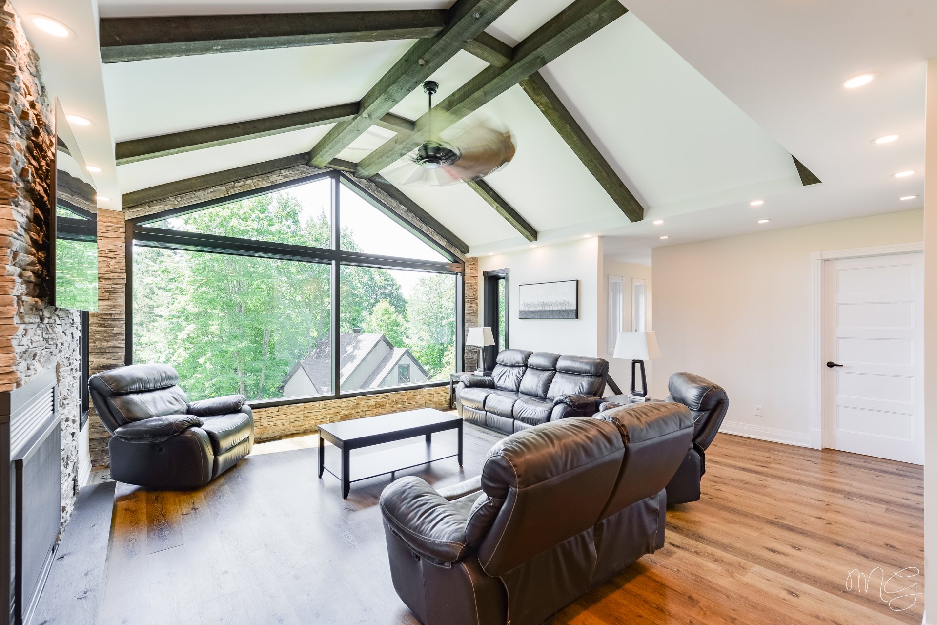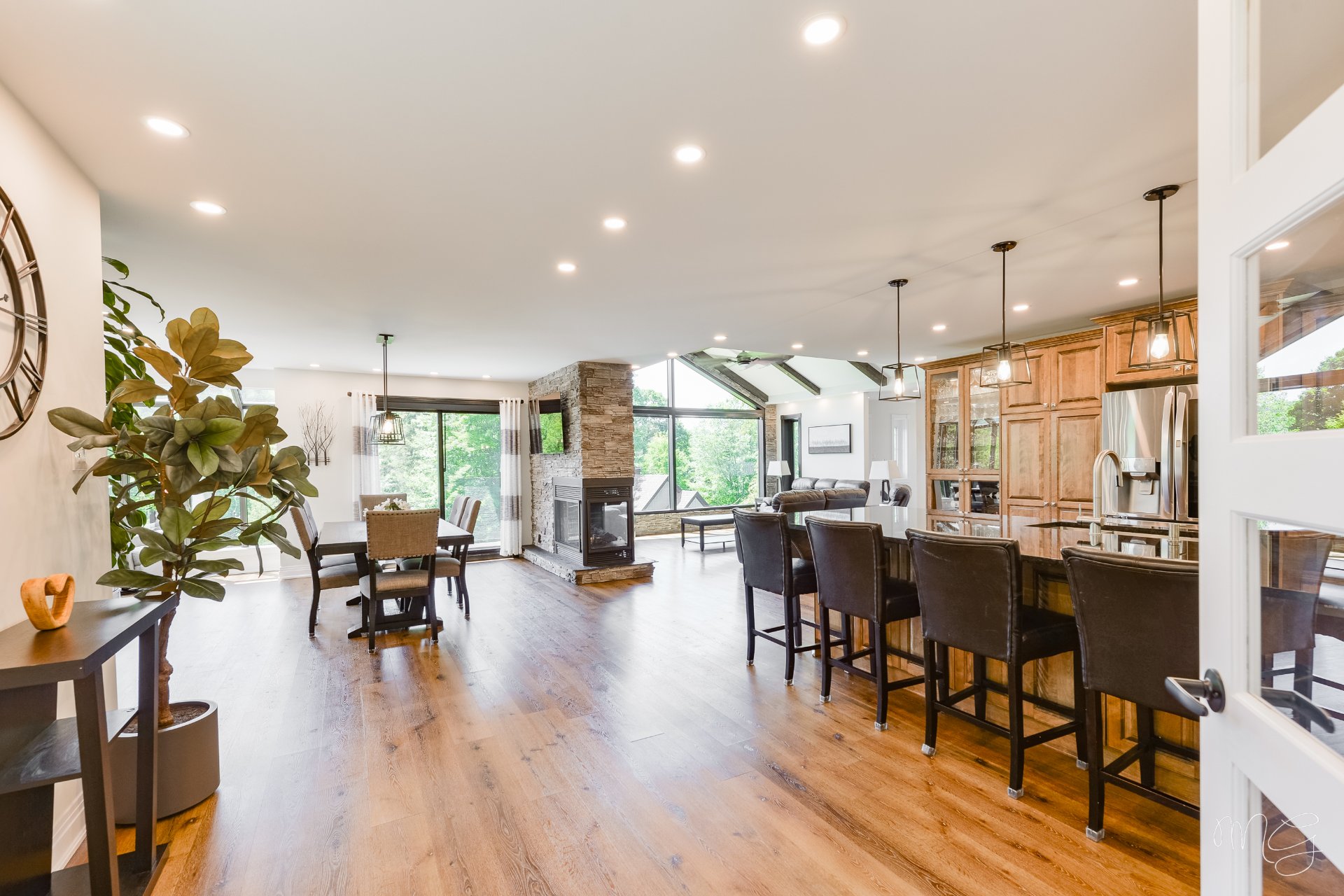 *Le charme des Laurentides* *VUE FÉÉRIQUE* Magnifique propriété sise en flanc de montagne sur un grand terrain de plus de 26000 pi2 soigneusement aménagé offrant une vue dégagée sur les pentes. Ayant bénéficié d'une refonte majeure dans les dernières années, la maison offre 4 chambres, 2 salles de bains rénovée et une superbe cuisine en merisier avec comptoirs en granite. Aménagement paysager tout simplement spectaculaire incluant plusieurs zones de détente, piscine et même un terrain de pickleball! Superbe garage double totalement aménagé idéal pour bricoleur. Emplacement de choix près de tous les services et accès rapide A-15. Impeccable !