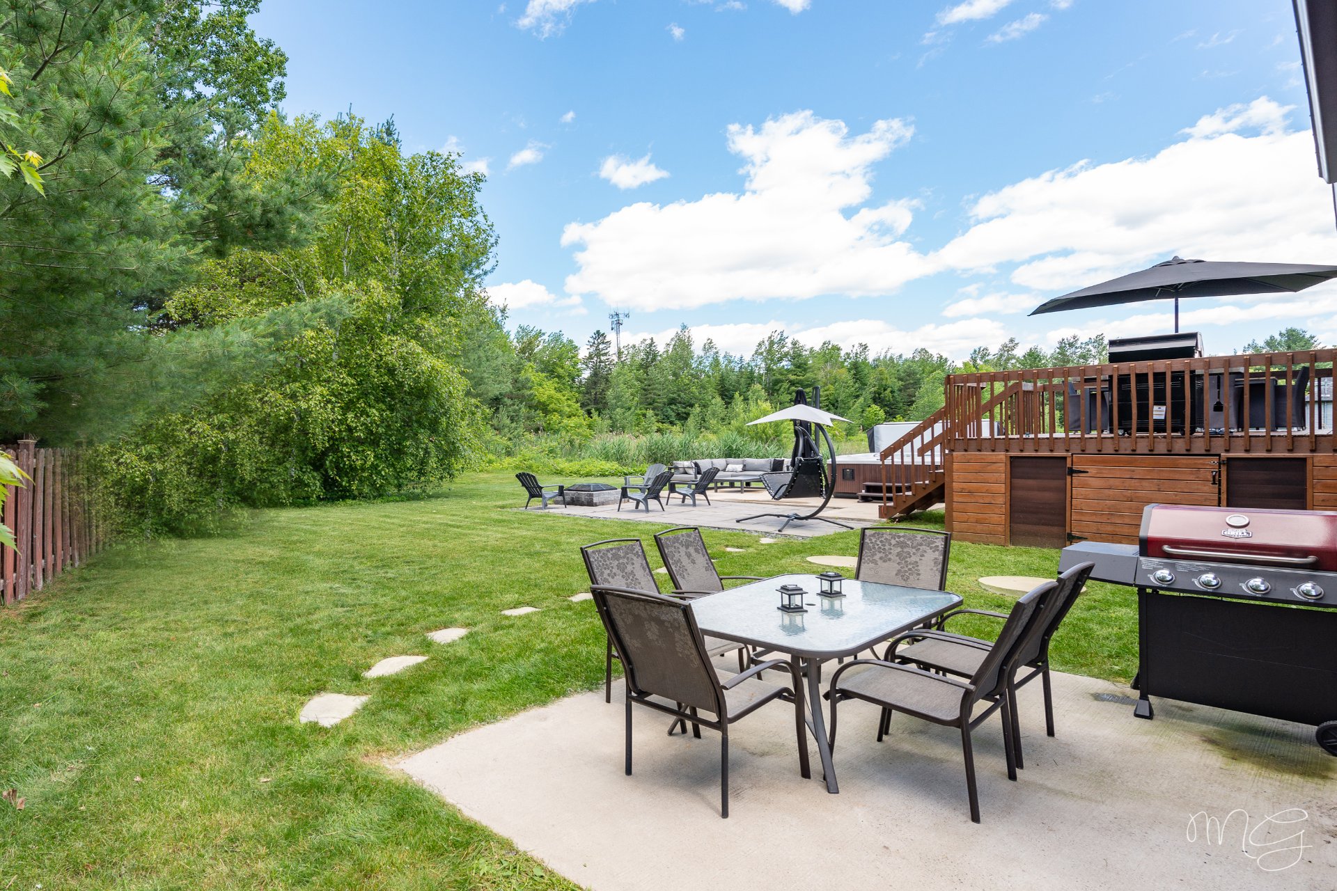 Luminaires, stores, pôles, rideaux, hotte de cuisinière, lave-vaisselle, système de traitement d'eau au sel (adoucisseur), système d'alarme relié à la centrale (45$/mois), balayeuse centrale & accessoires, thermopompe murale, support murale à télévision, système de caméra, miroirs des SDB, cabanon, borne électrique