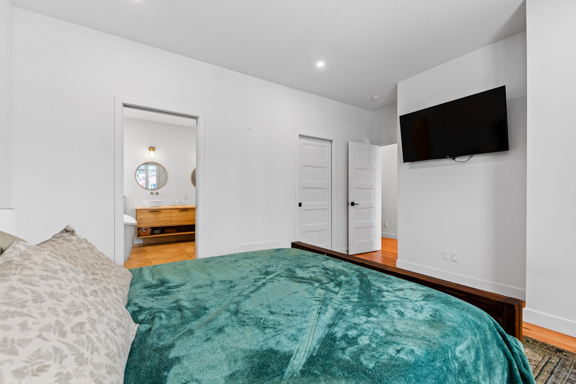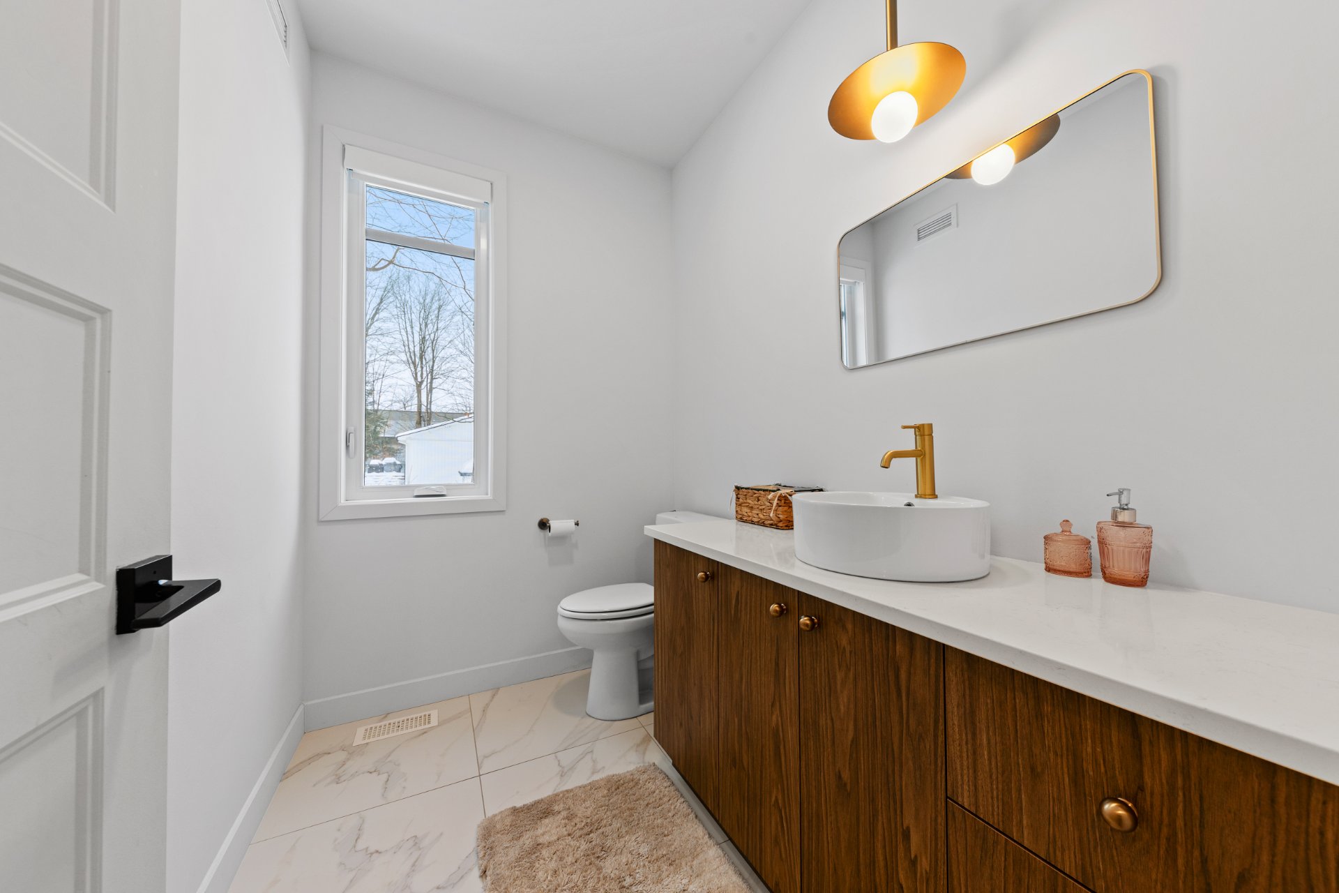 Thermopompe centrale, Échangeur d'air, 1 Chauffe-eau 60 Gallons, Hotte de poêle, Luminaires, Pôles à rideaux, Tous les stores, Meubles Ikéa du walk-in, 3 bacs (Poubelle, Recyclage, Composte)
