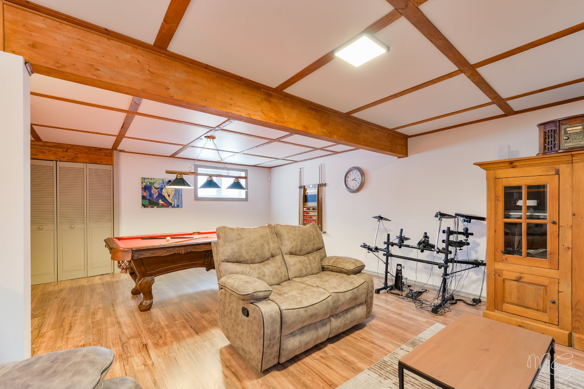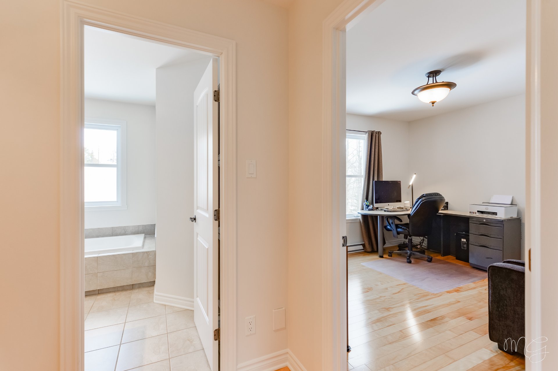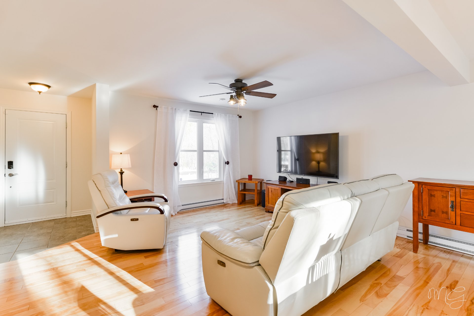 Unique sur le marché! Superbe jumelé avec garage DOUBLE situé dans le prestigieux secteur du Golf Le Champêtre. Entretenue avec grand soin par son propriétaire, la maison offre une architecture distinctive qui déborde de cachet et qui se marie à merveille avec l'environnement boisé. On y retrouve une aire de vie conviviale, de beaux planchers de latte de bois sur les 2 étages et plusieurs petits ajouts intéressants. Les deux chambres à l'étage sont de très bonne dimension et la principale dispose d'une immense penderie. Sous-sol totalement aménagé avec la possibilité de faire une 3e chambre facilement. Tout simplement impeccable!