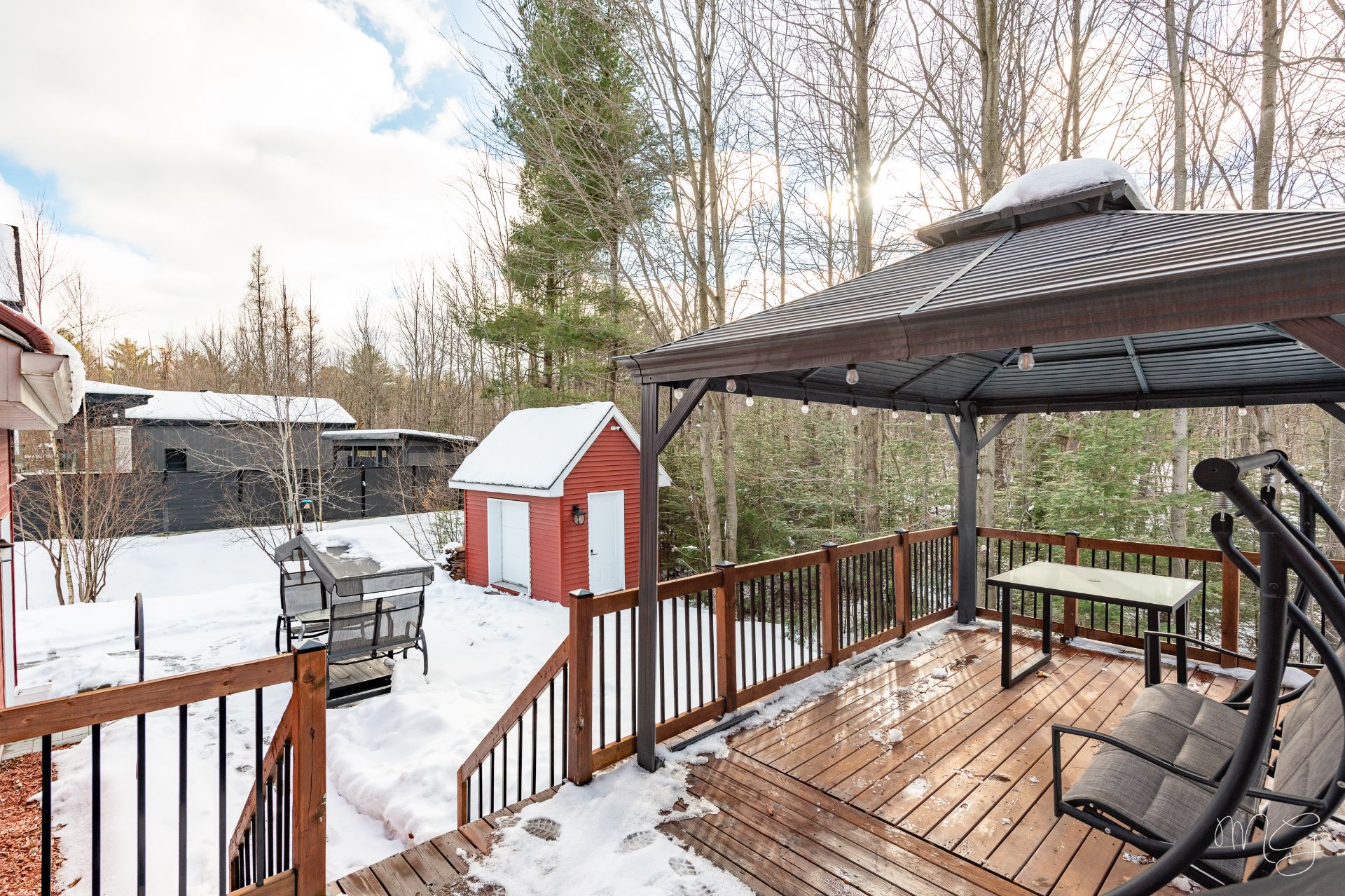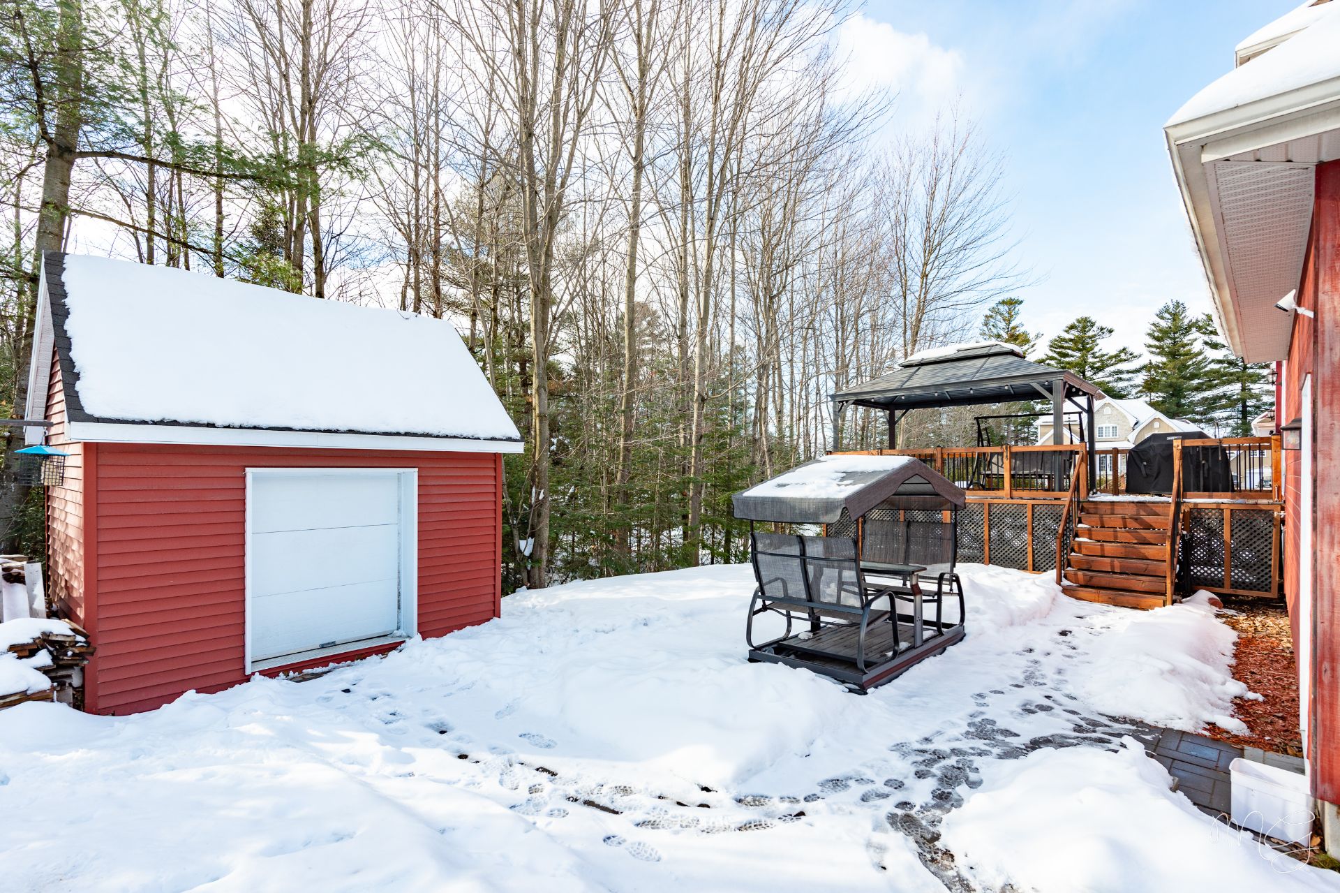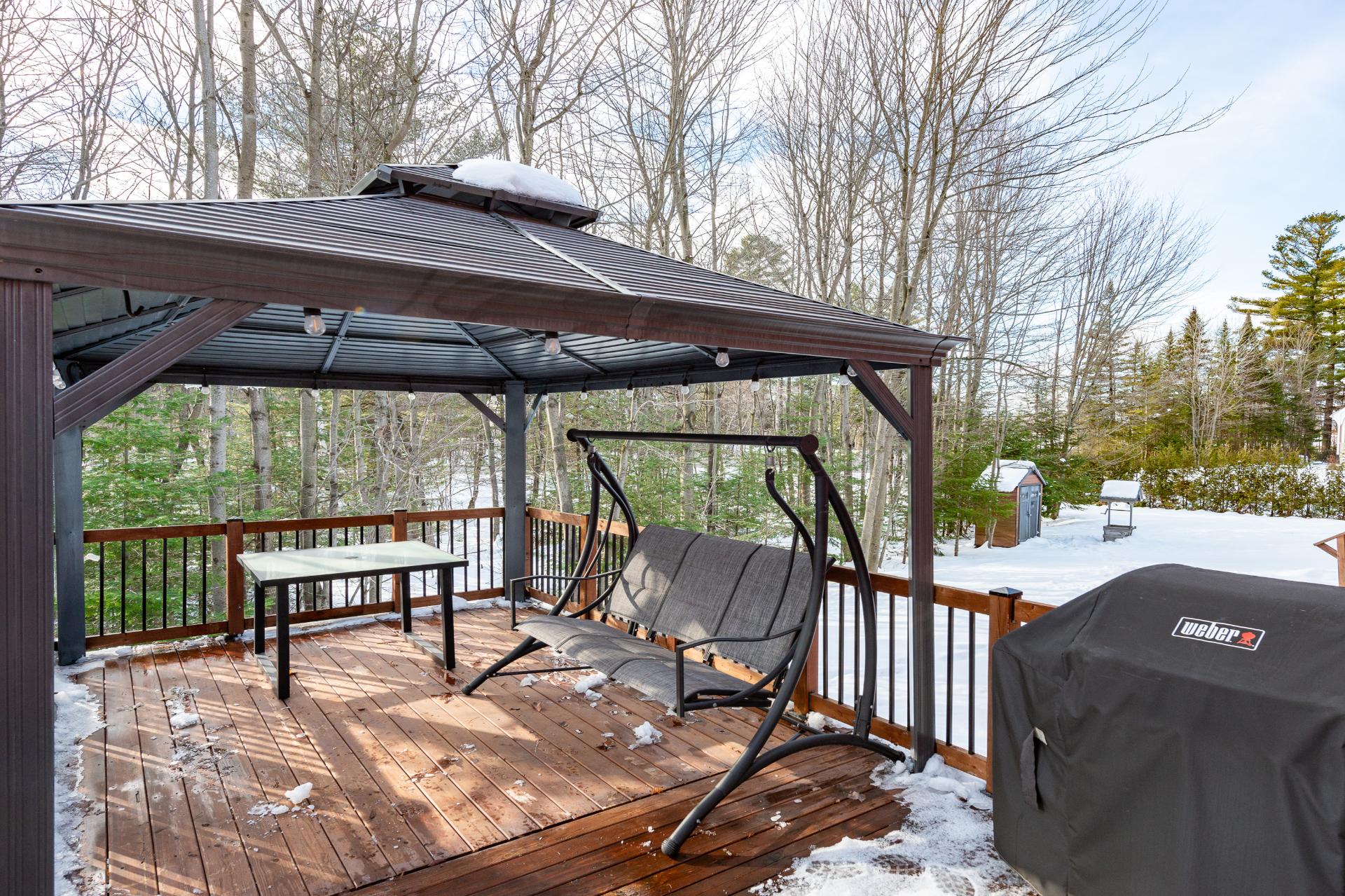 Luminaires, stores, pôles, rideaux, support à TV, ouvre-porte de garage, aspirateur central et accessoires, hotte de la cuisinière, miroir des SDB, gazebo, remise, système d'alarme (relié), thermopompe murale,
