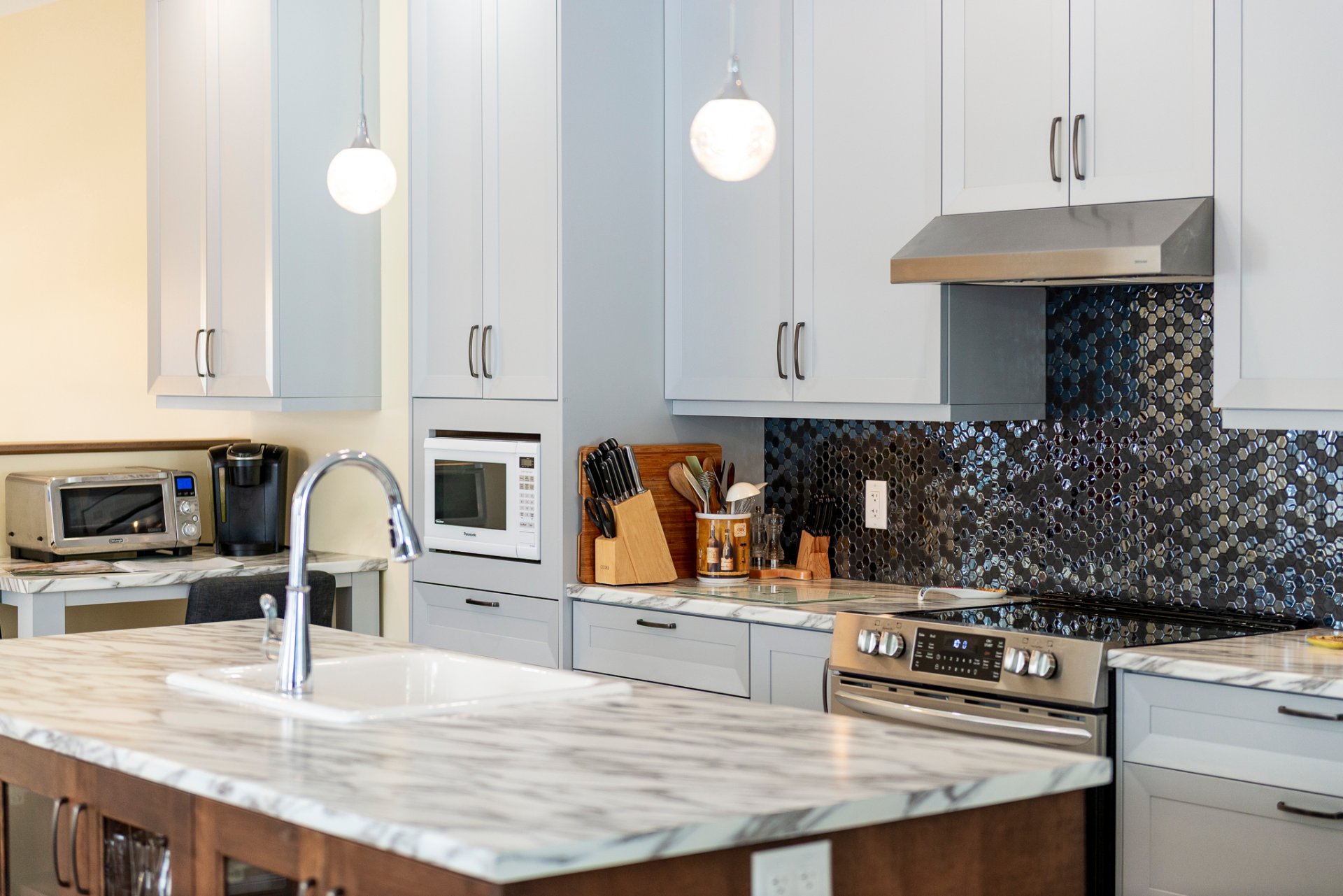 Luminaires, échangeur d'air, thermopompe murale est sa manette, poele et réfrigérateur, laveuse et sécheuse, cabanon extérieur, stores et poles, ouvre-porte de garage et ses manettes.