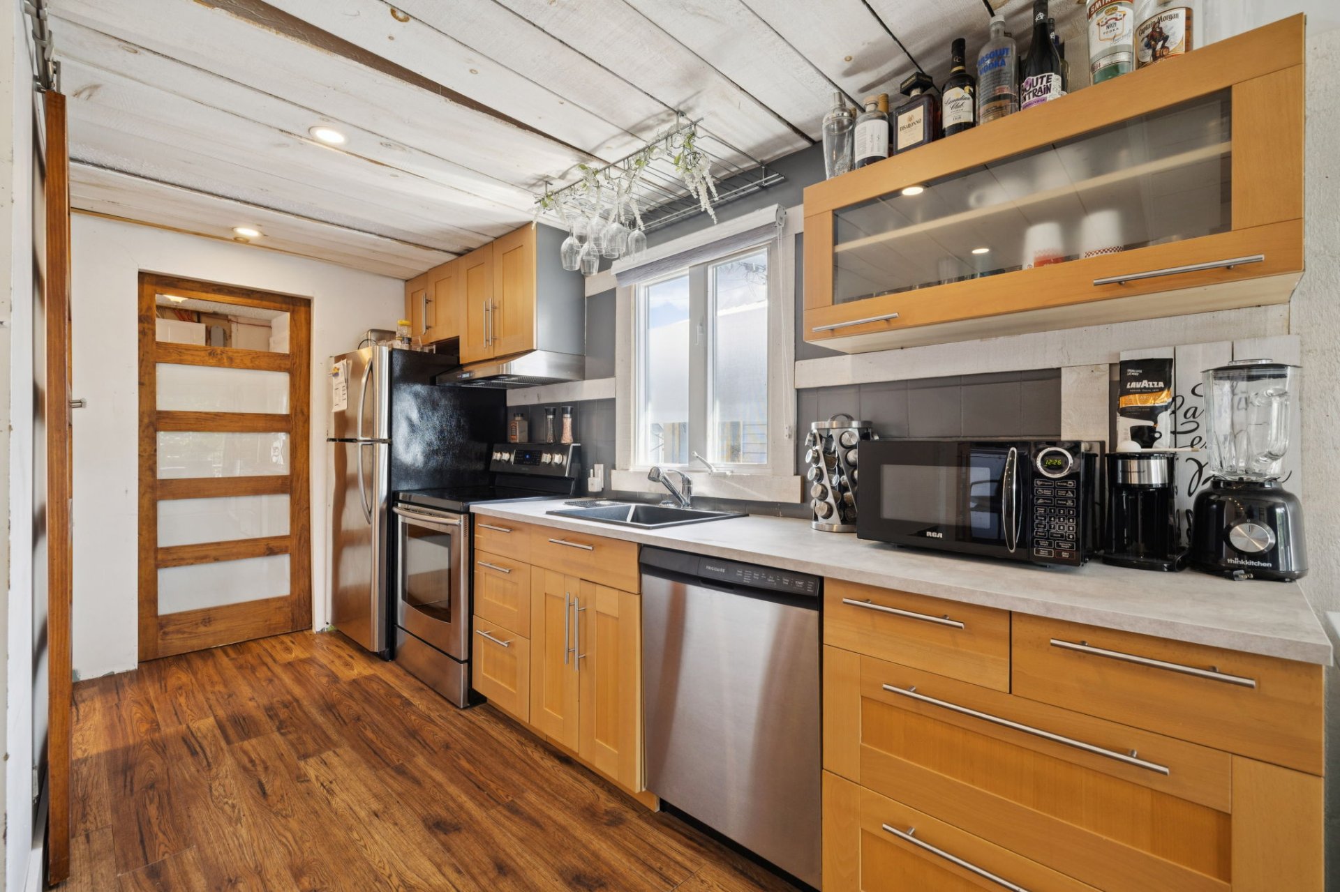 Within walking distance of the village of Saint-Sauveur and all its activities, discover this lovely 2-bedroom mobile home. It features a spacious vestibule, cathedral ceiling, wood-burning fireplace, and an inviting terrace overlooking a small stream. Located in a peaceful setting, this property has been very well maintained in recent years and has benefited from several upgrades, including the roof in 2023, the electrical panel in 2022, as well as the kitchen in 2019. The land is rented for $422/month, including snow removal and street maintenance.