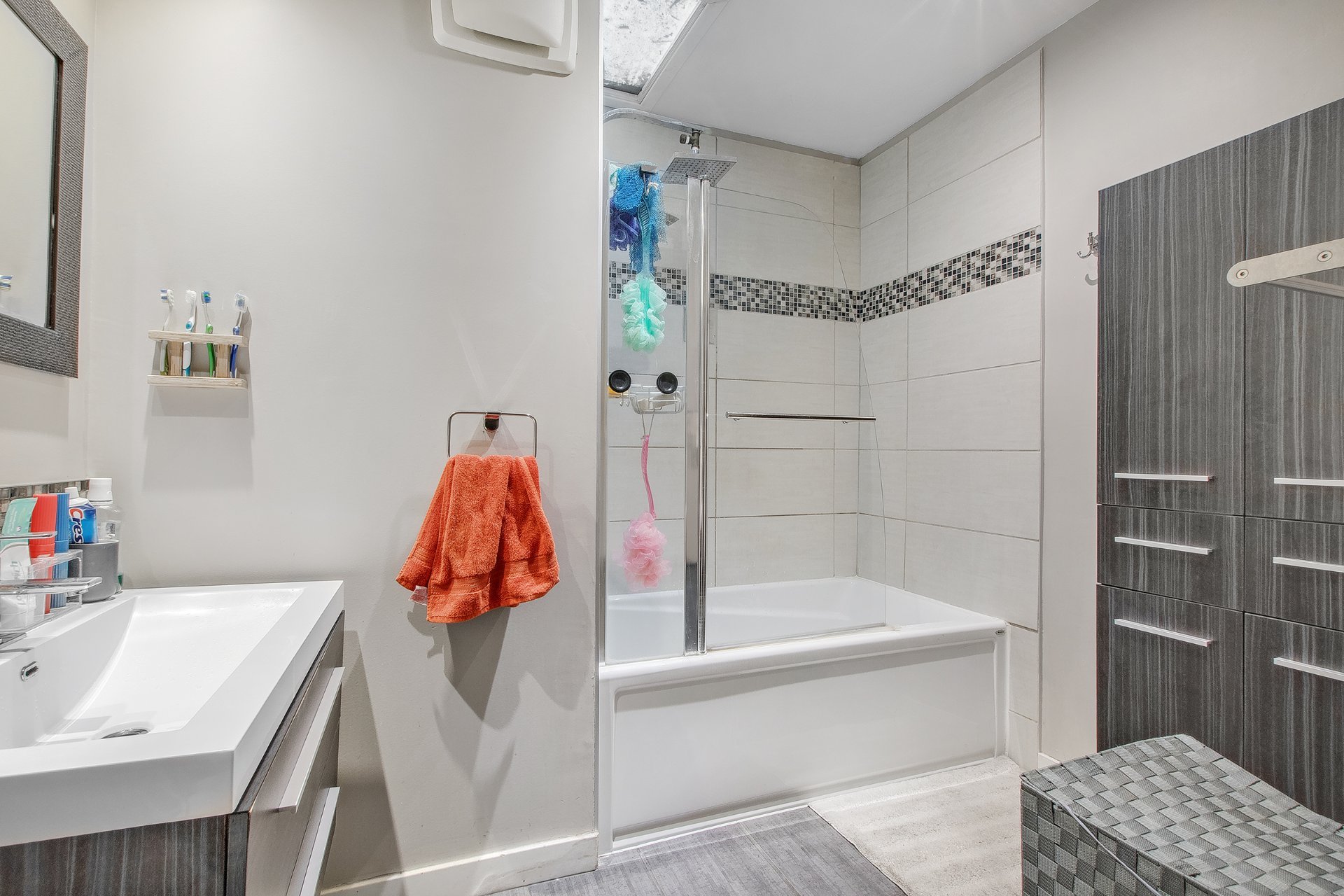 ** Salle de bains rénovée.