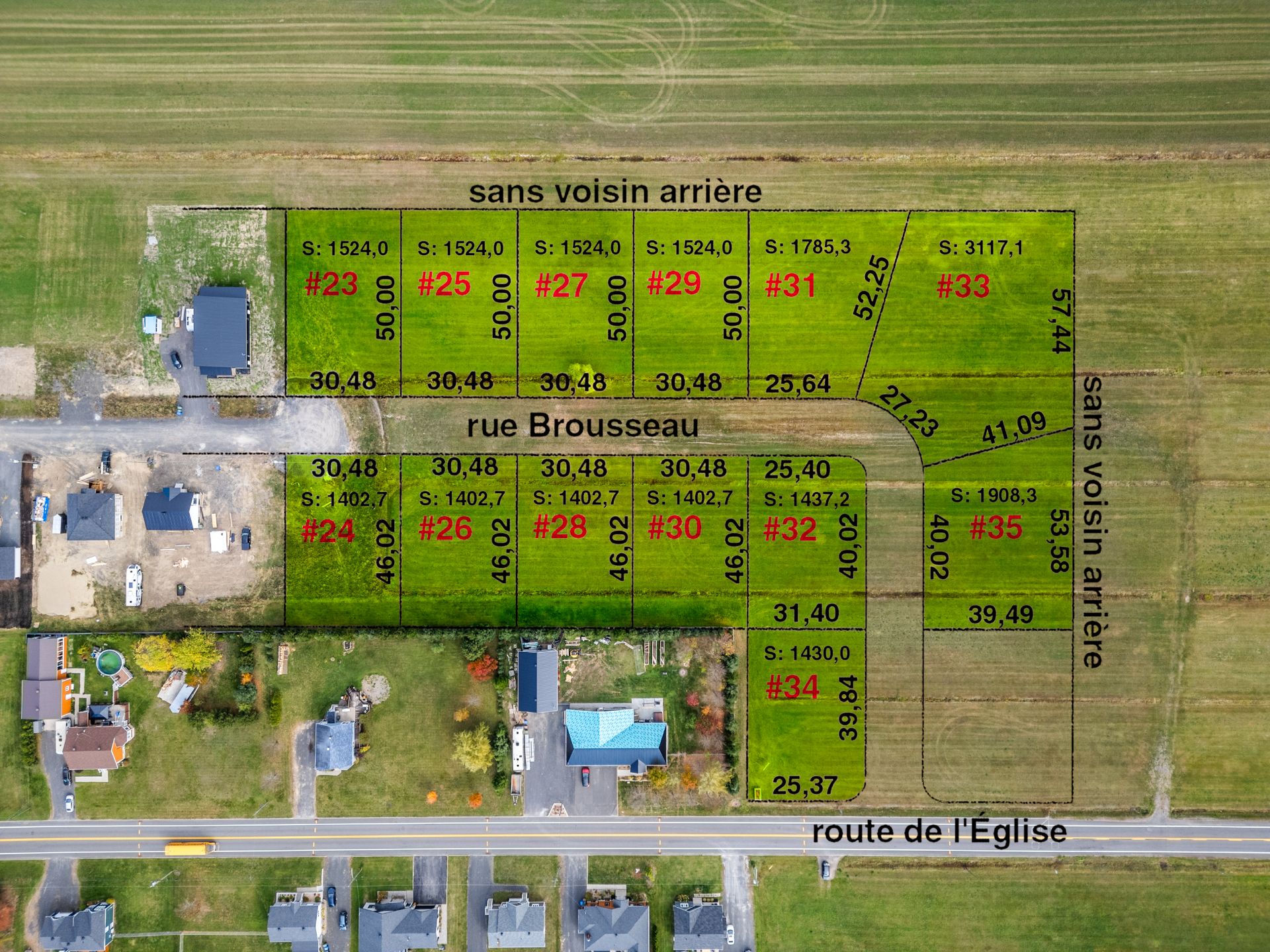 $5,25 le pied carré (107,835$). Nouveau développement (phase 3), prévu pour le printemps 2026, terrain résidentiel (unifamilial ou bifamilial) de 20,540 pi2. Aucun voisin arrière. Services d'égout sanitaire et pluvial seront disponibles au réseau de la ville.