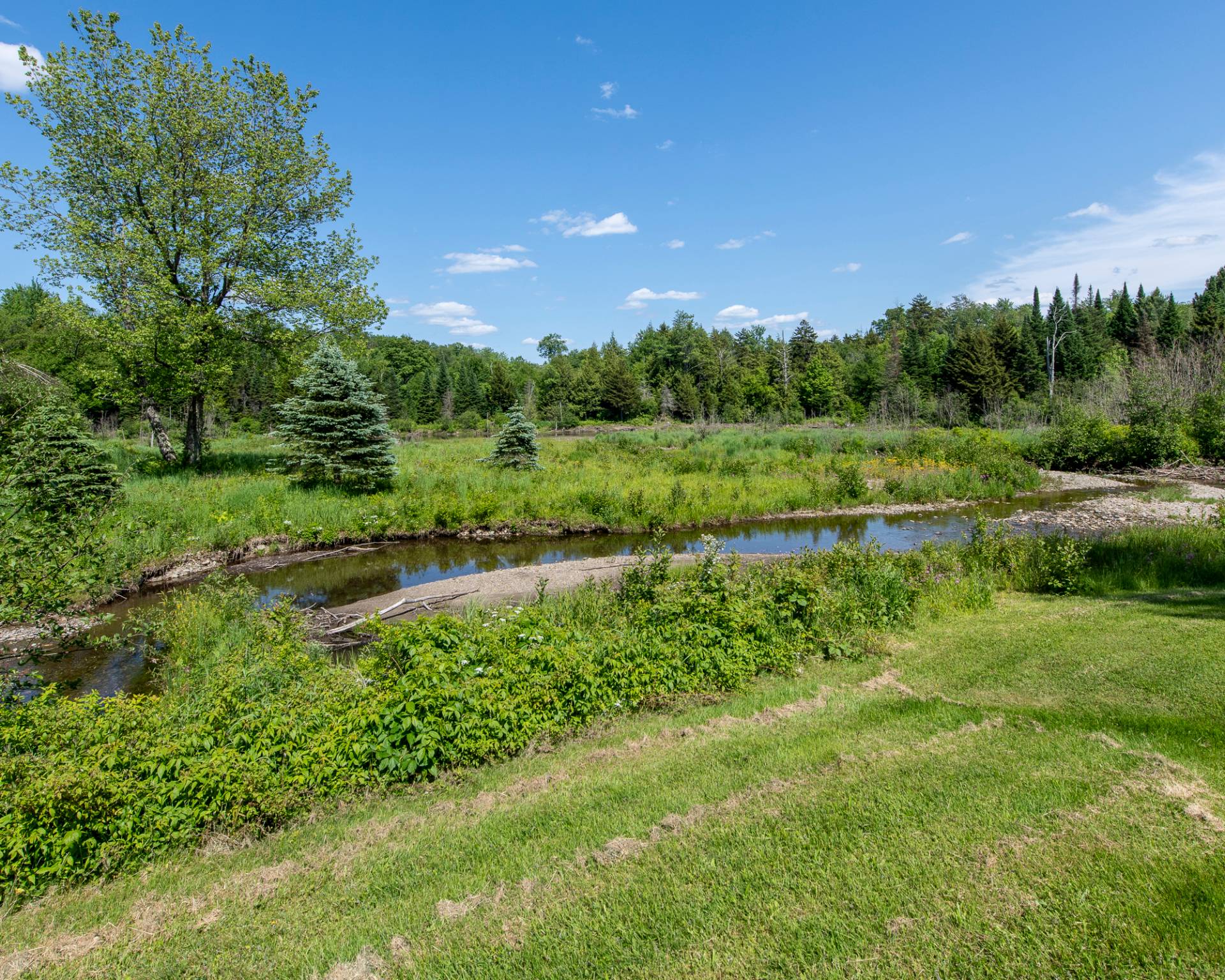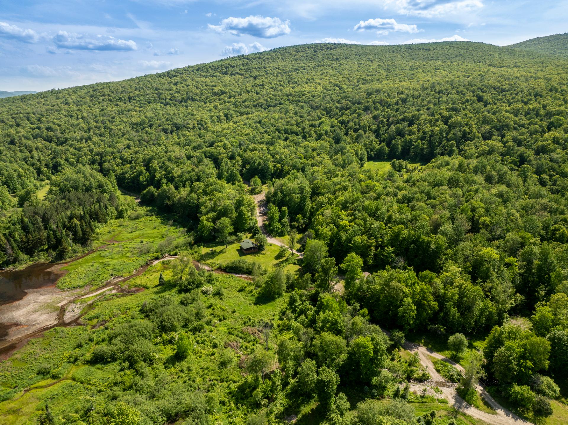 La propriété est adjacente sur 3 cotés à une réserve naturelle, donc aucun voisin à perpétuité. L'actuel propriétaire, producteur forestier, fait lui-même la gestion de son 3ième plan de gestion de la forêt depuis 1992. Le plus haut point du terrain est de 475 mètres.Propriété idéale pour les clubs de pêche/chasse/camping ou les retraites
