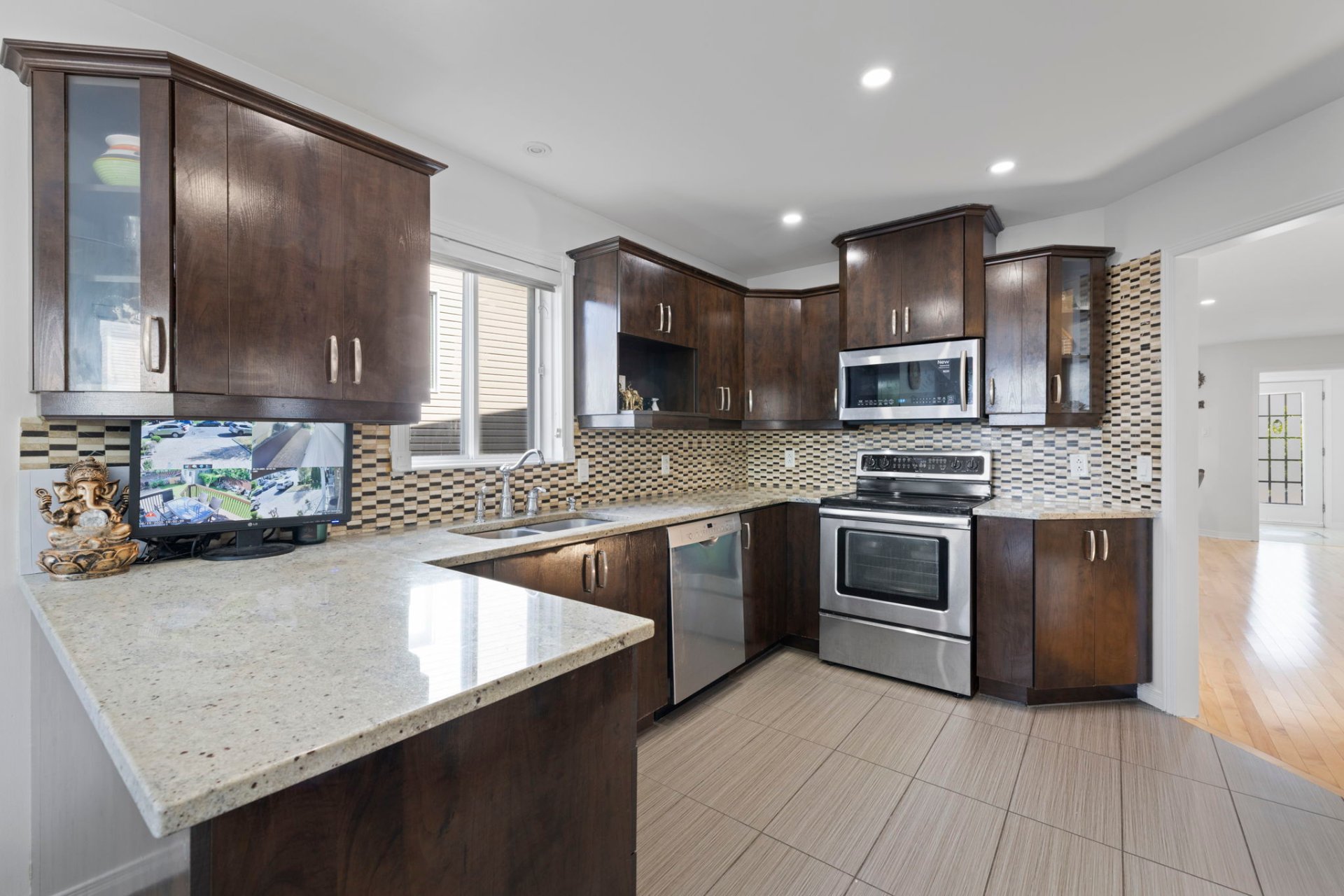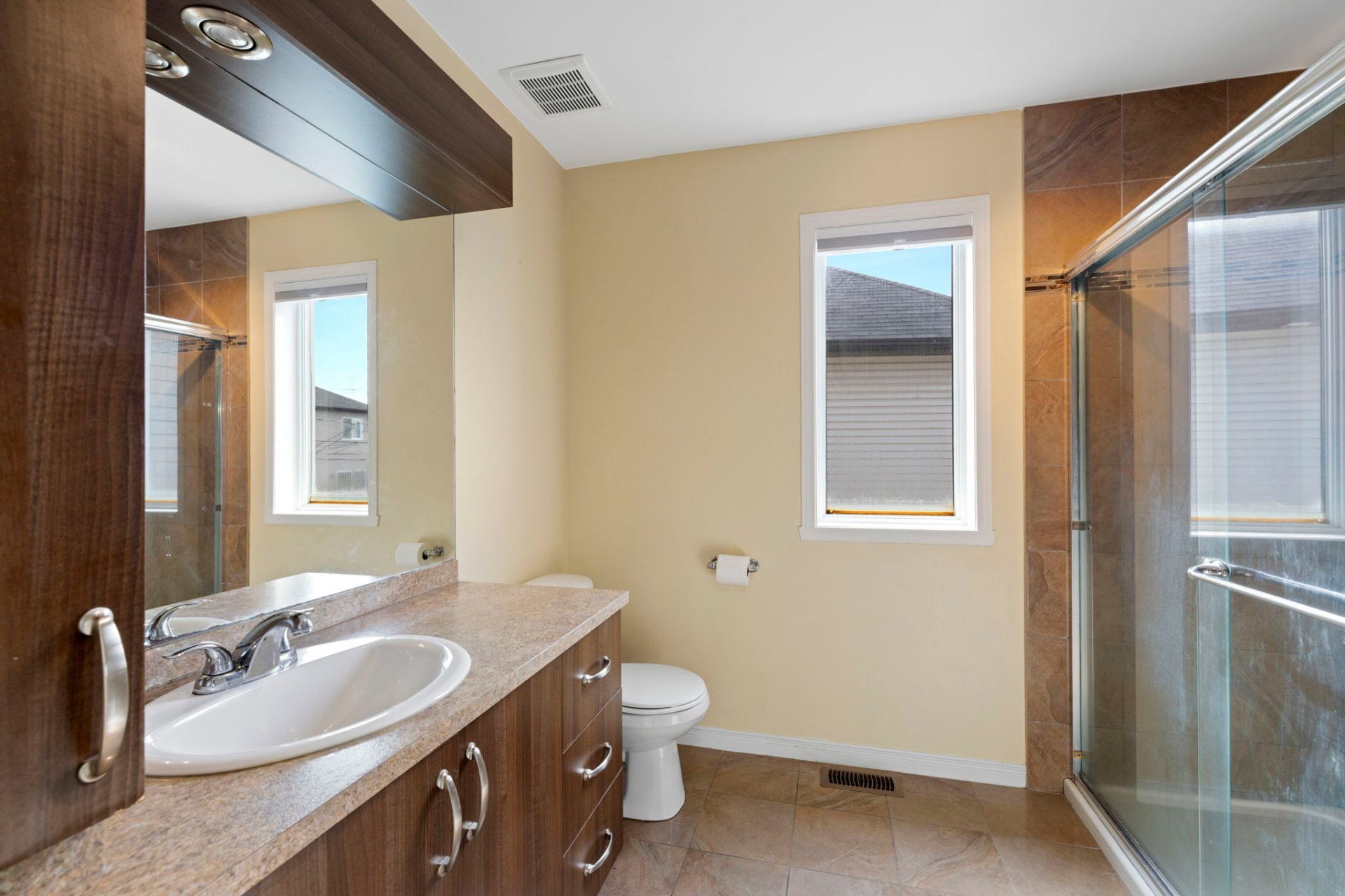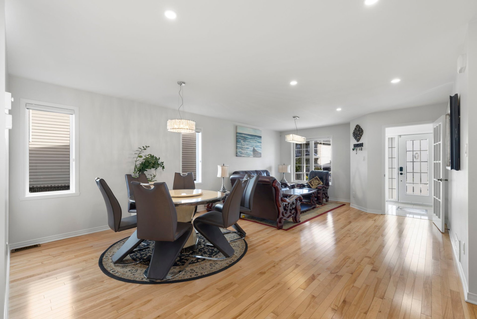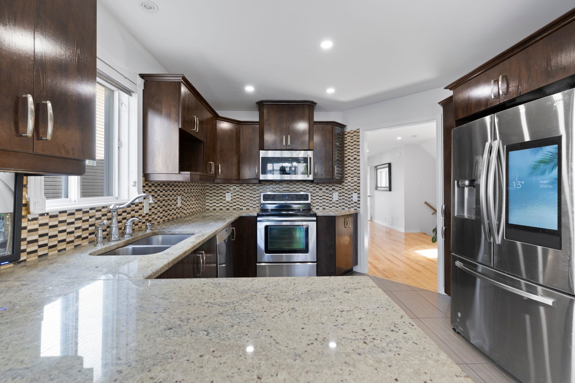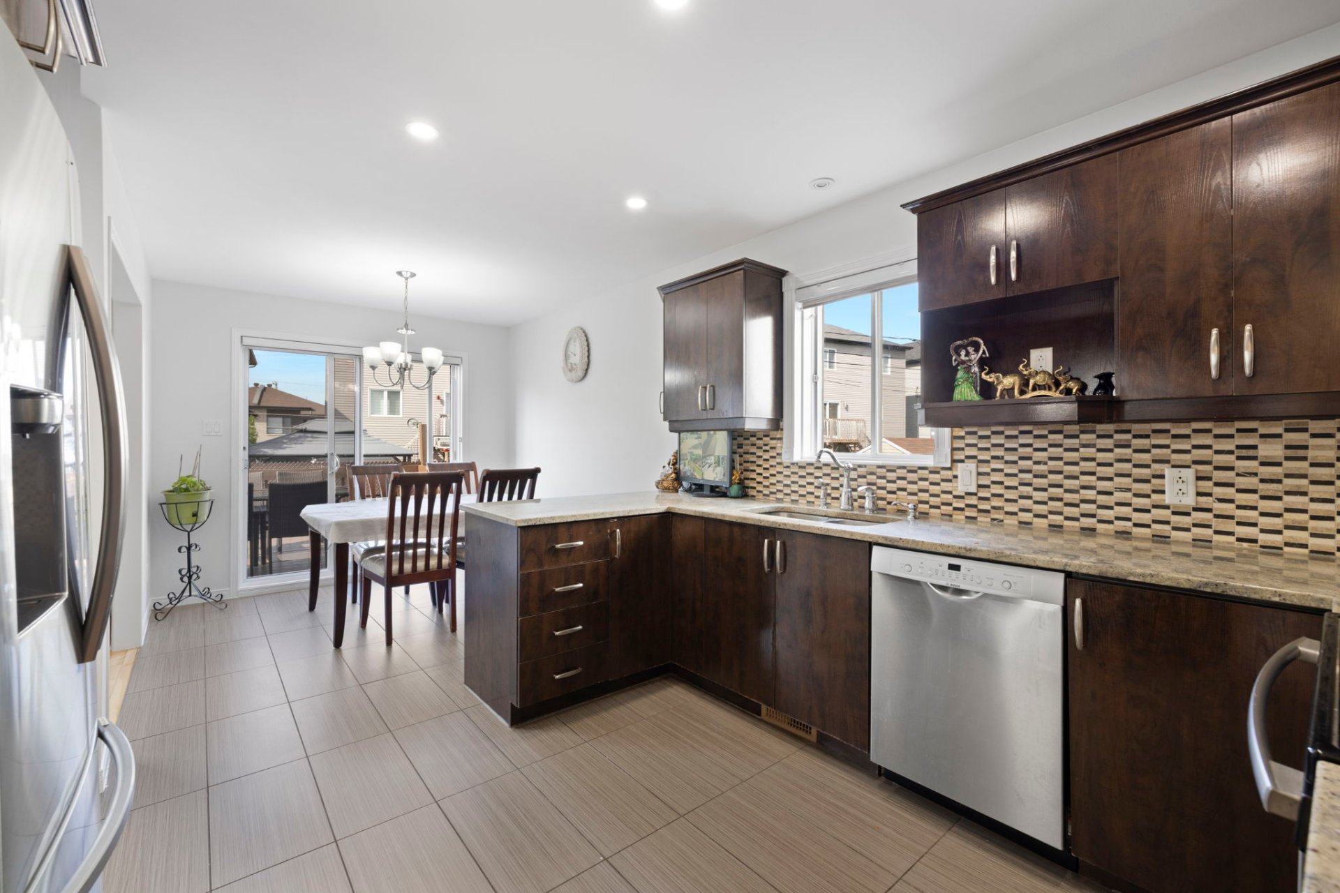 Welcome to this charming family home combining space, elegance, and functionality. The main floor features two inviting living rooms, two dining areas, a stylish kitchen, and a powder room. Upstairs, the primary suite includes a walk-in closet and ensuite with soaker tub and glass shower, complemented by three additional bedrooms and a full bath. The finished basement adds a large family room, two bedrooms, a full bathroom, mechanical room, and storage. With its stone façade, attached garage, fenced backyard, and deck, this move-in ready home is ideal for modern living.