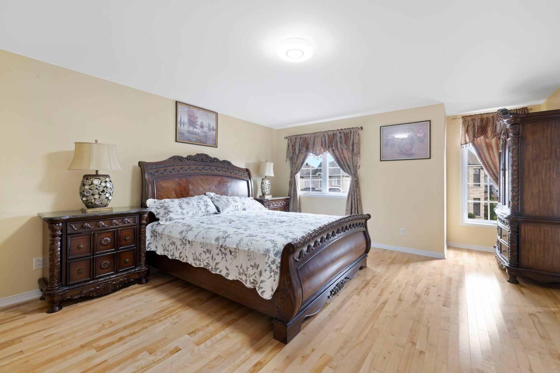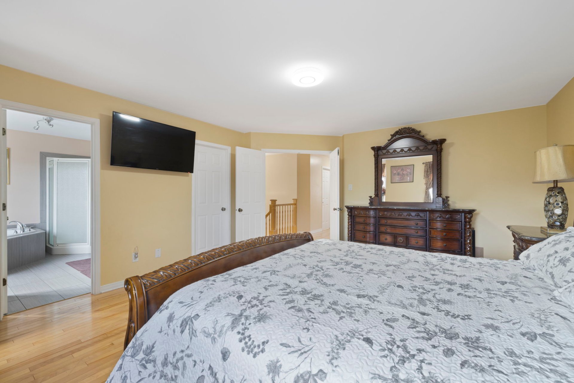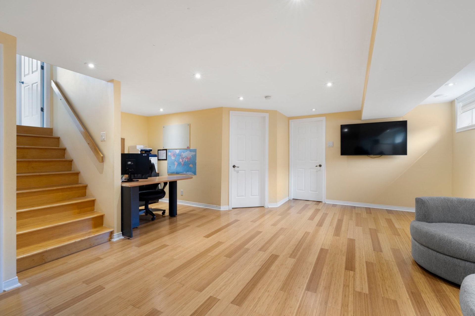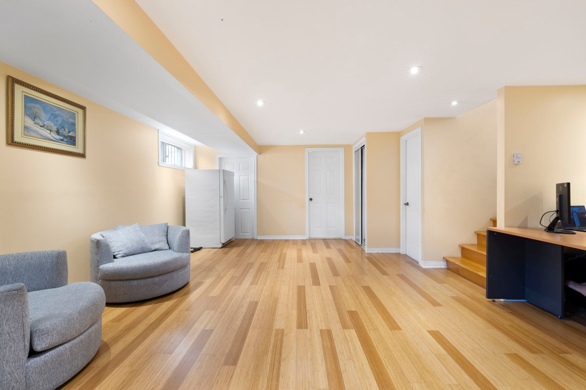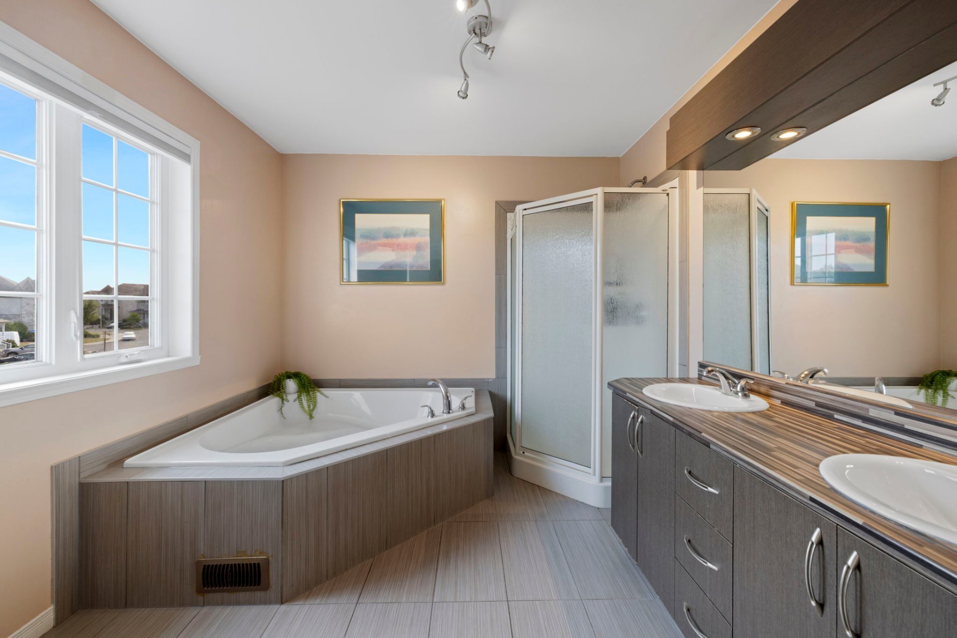 Welcome to this charming family home combining space, elegance, and functionality. The main floor features two inviting living rooms, two dining areas, a stylish kitchen, and a powder room. Upstairs, the primary suite includes a walk-in closet and ensuite with soaker tub and glass shower, complemented by three additional bedrooms and a full bath. The finished basement adds a large family room, two bedrooms, a full bathroom, mechanical room, and storage. With its stone façade, attached garage, fenced backyard, and deck, this move-in ready home is ideal for modern living.