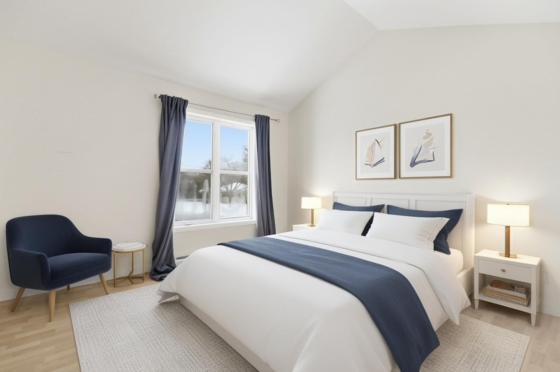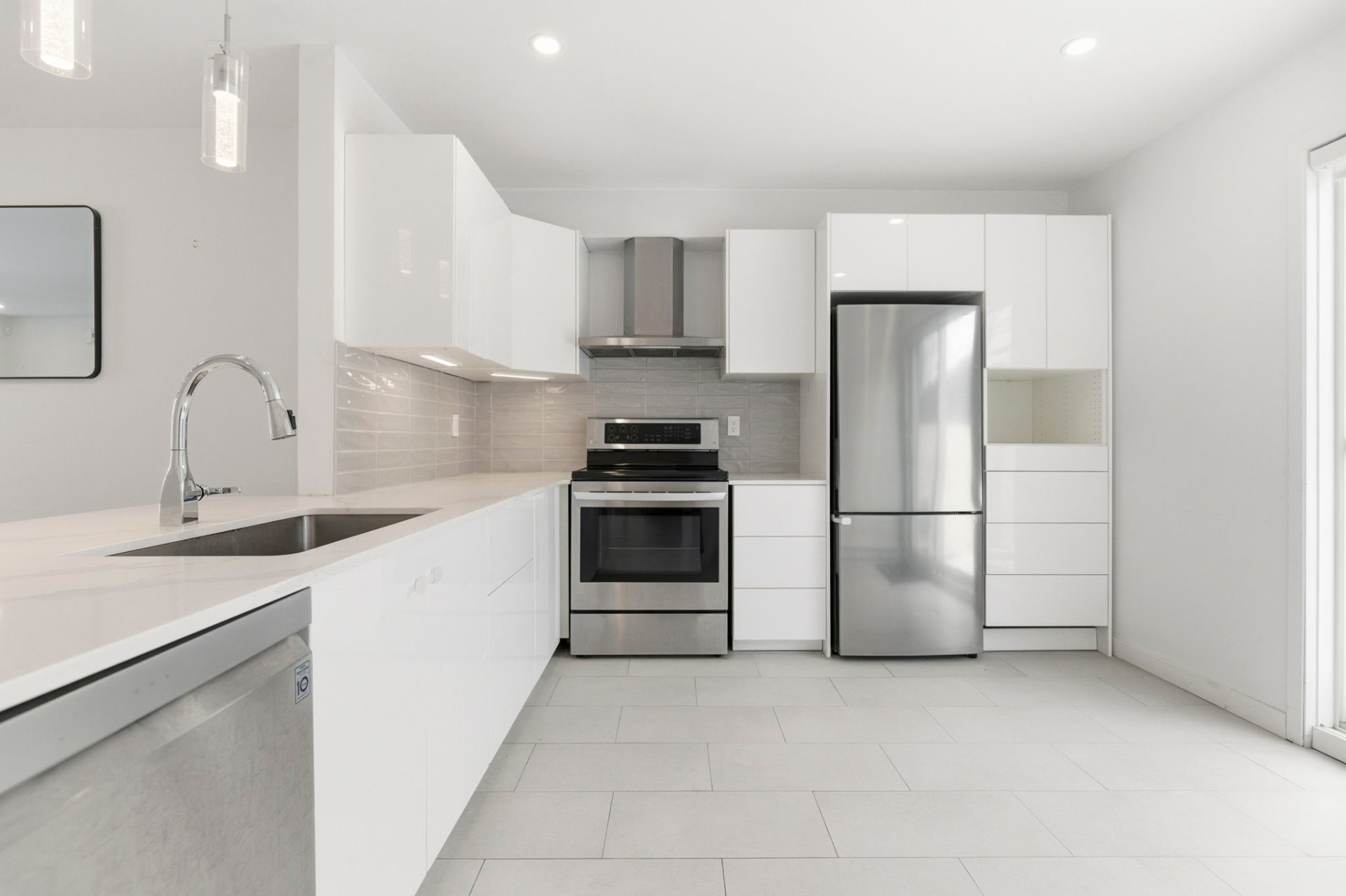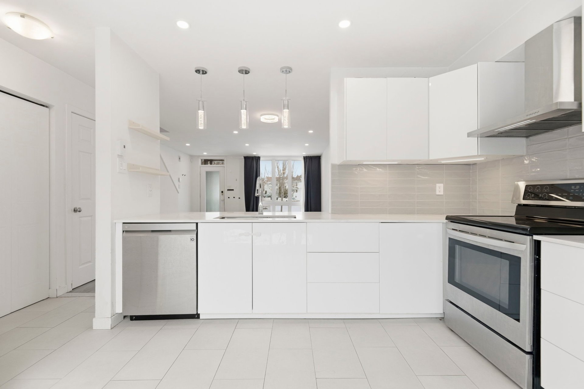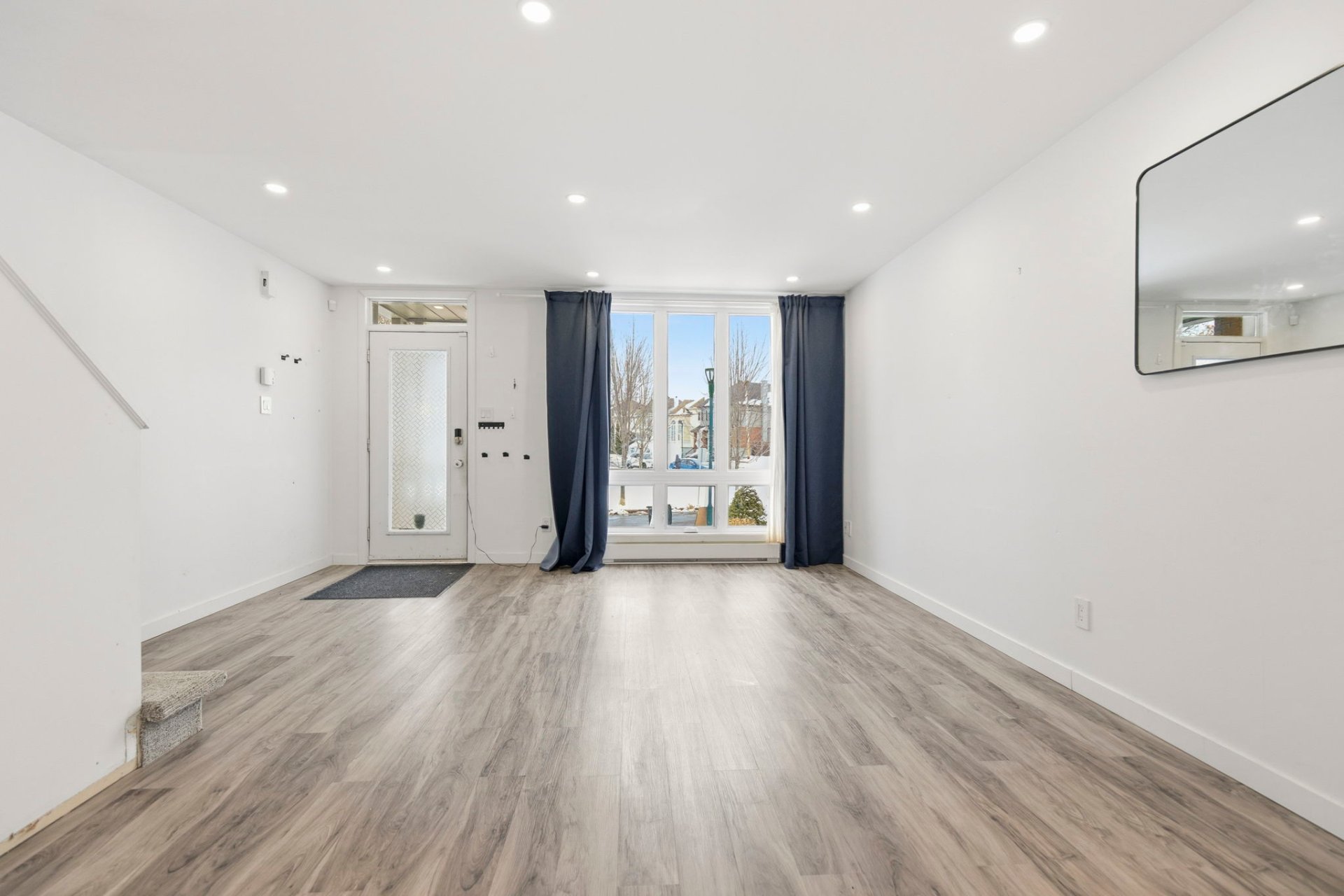 Bright and modern townhouse located at 1058 Rue des Nénuphars, perfect for a family or couple seeking space and tranquility. The open-concept main floor features a sunlit living room, dining area, and sleek kitchen, enhanced by large windows. A powder room with washer-dryer area adds convenience. Upstairs offers a primary bedroom, two additional bedrooms, and a bathroom with a glass shower and freestanding tub. The finished basement includes a family room, fourth bedroom, and storage. Enjoy a fenced backyard and driveway parking. Peaceful neighborhood close to schools, parks, and amenities.