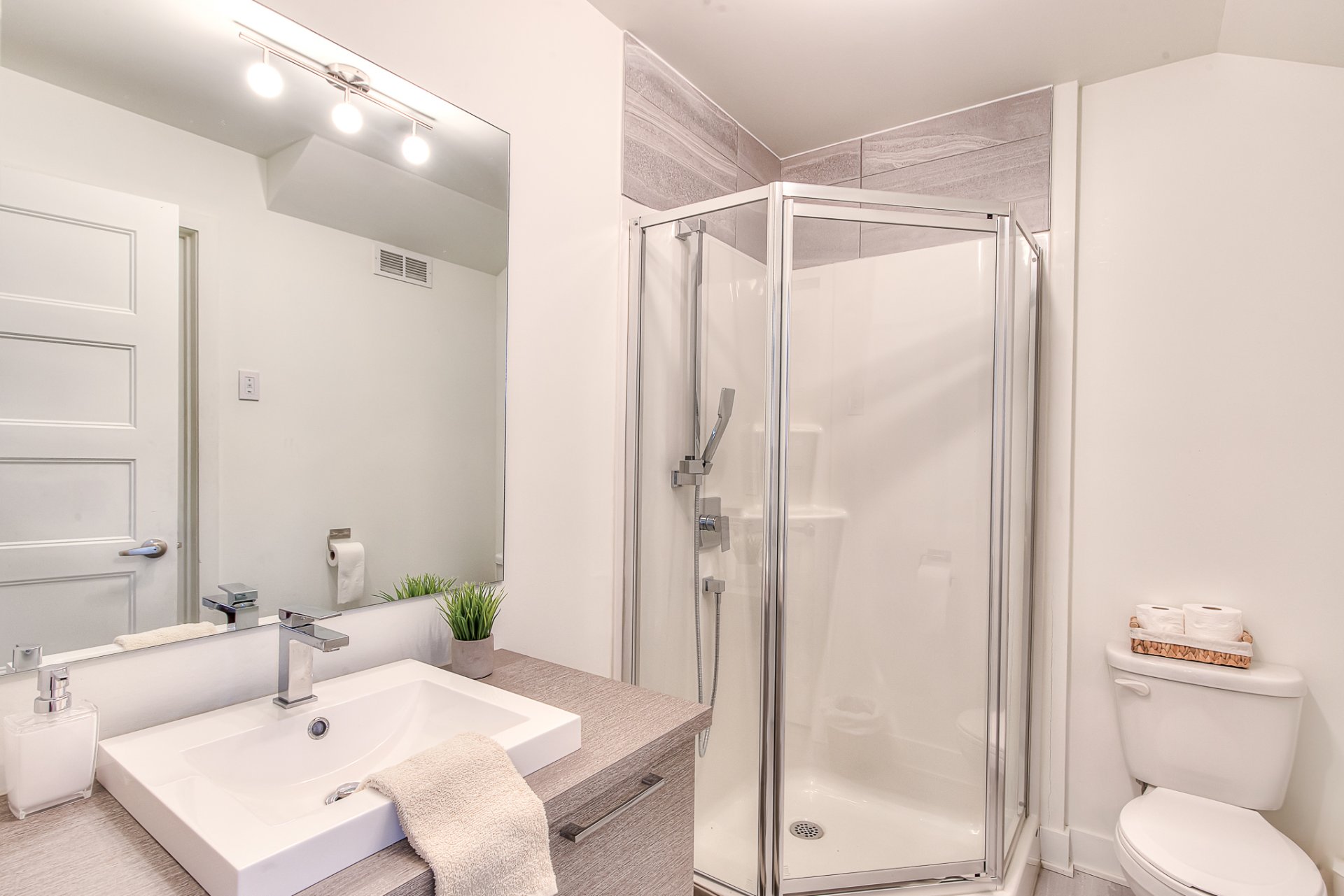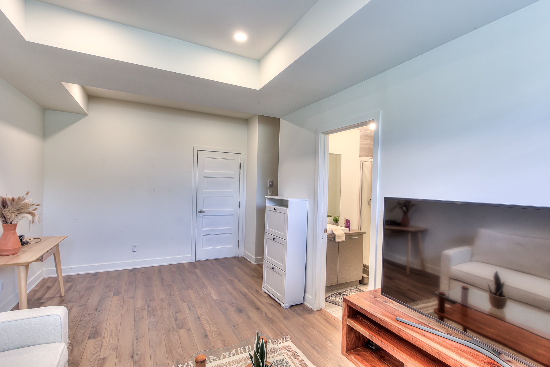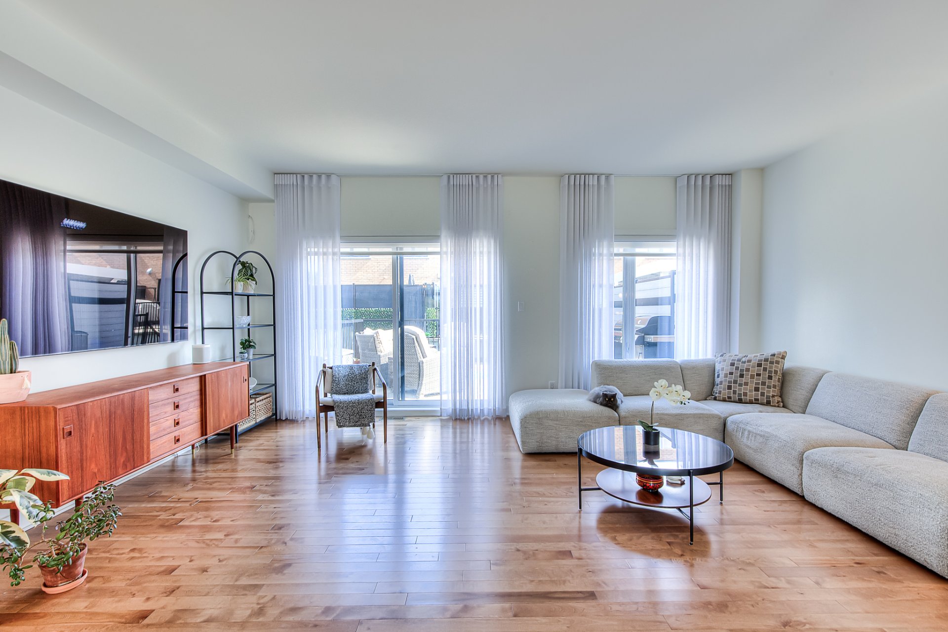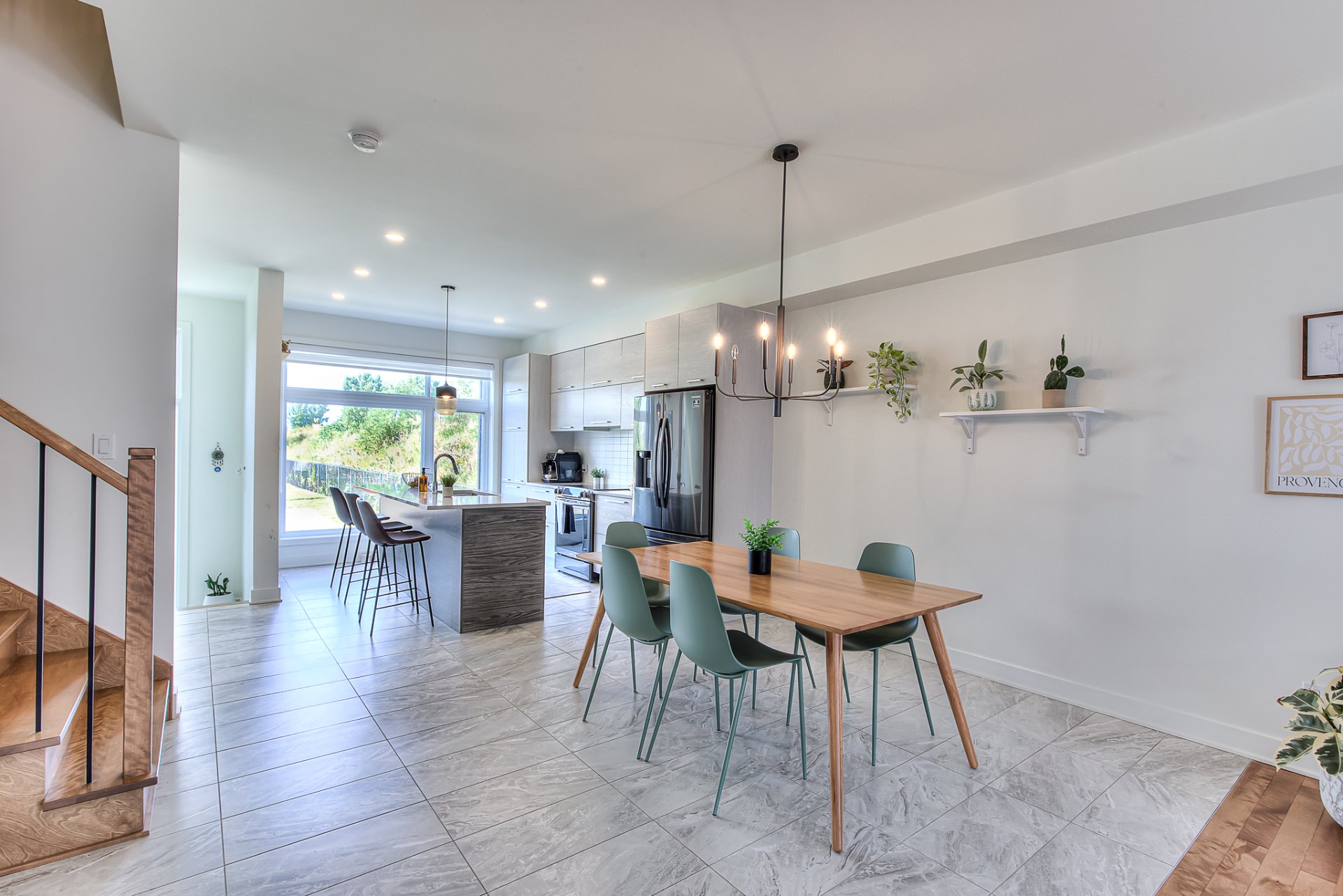 Magnificent townhouse located in the prestigious "Villas-sur-Rive" neighborhood. The main floor, with 9-foot ceilings, offers a spacious open-concept layout featuring a stunning kitchen with an island that seats four, quartz countertops, and a view overlooking a beautiful park. The living and dining areas open onto a large terrace equipped with a natural gas hookup for a barbecue. Upstairs, you'll find three well-sized bedrooms, one bathroom, and a laundry room. The master bedroom includes a walk-in closet. Large windows throughout the home provide abundant natural light. (continued in addendum)