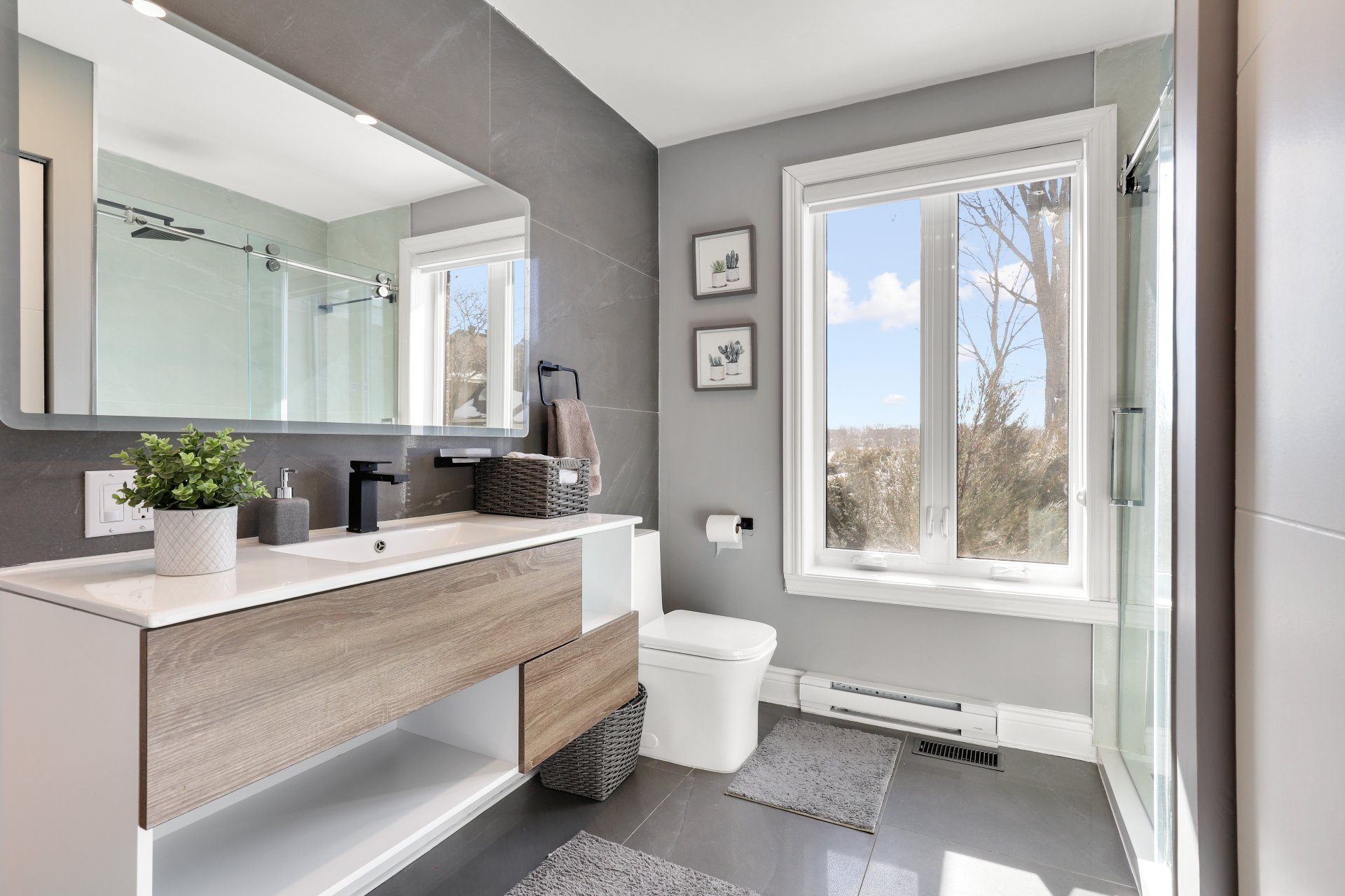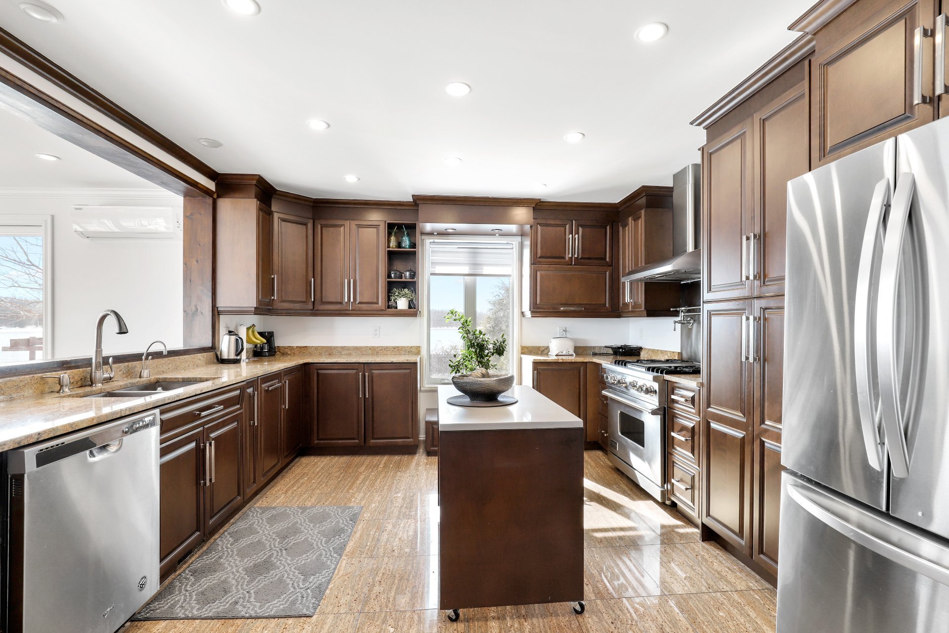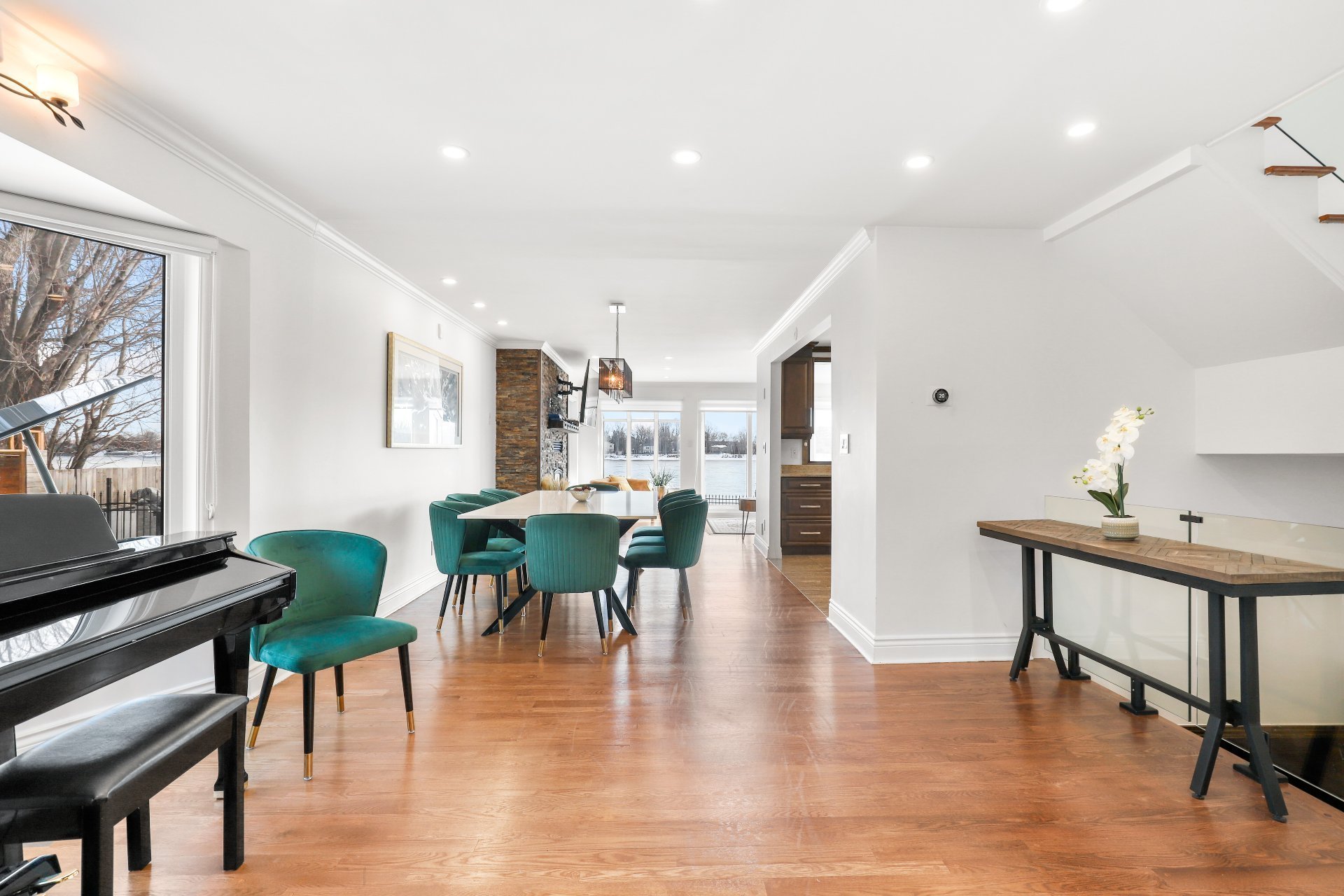 Beautiful waterfront home in Ste-Dorothée! The property offers bright & airy living spaces, comes fully furnished with today's trends, big kitchen with plenty of storage, 4 bedrooms total, 4 bathrooms and family room in the basement. The exterior offers a spacious backyard with a heated in-ground pool, stunning view, a simple garage, and large driveway accommodating up to 3 cars.