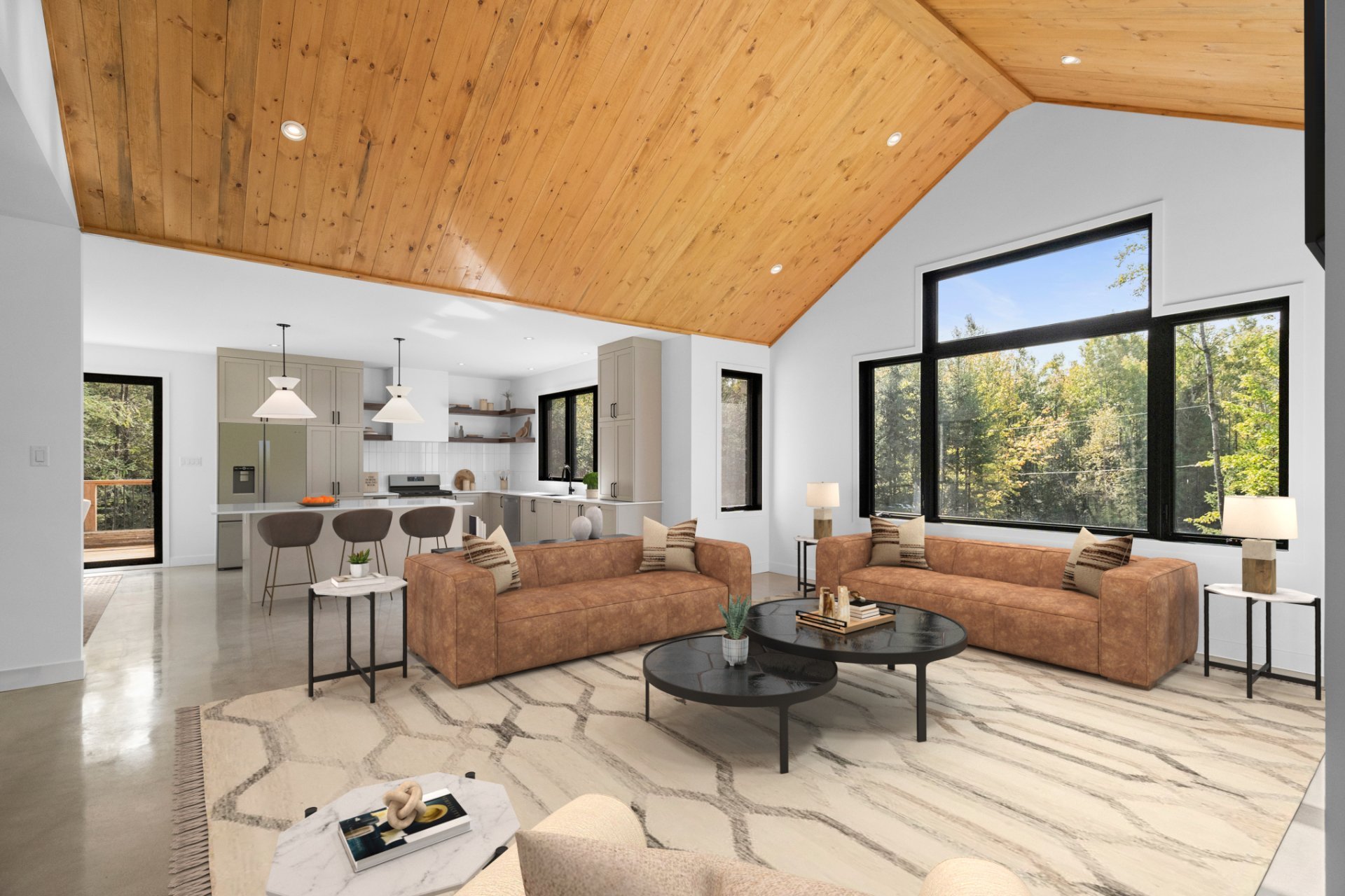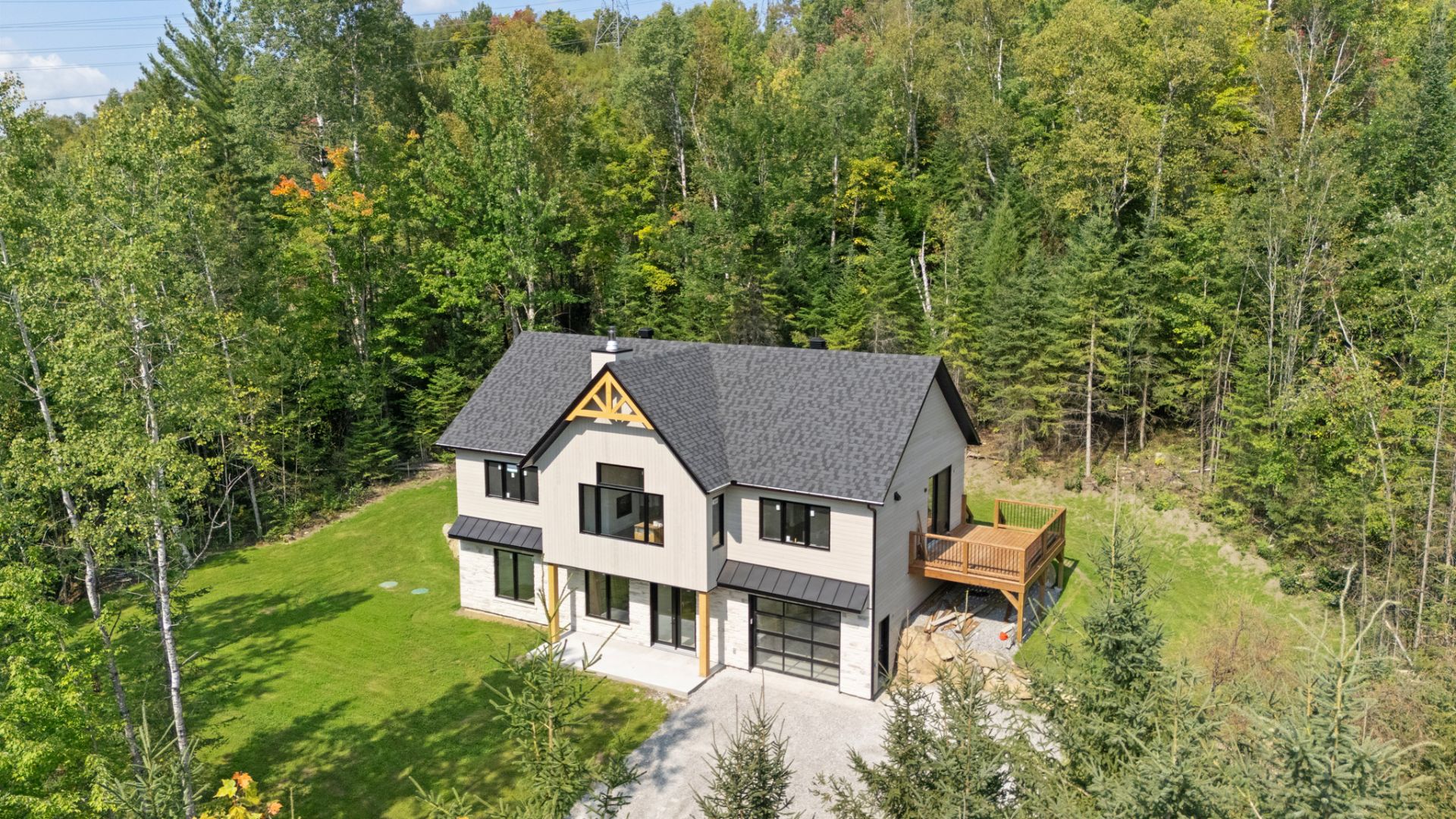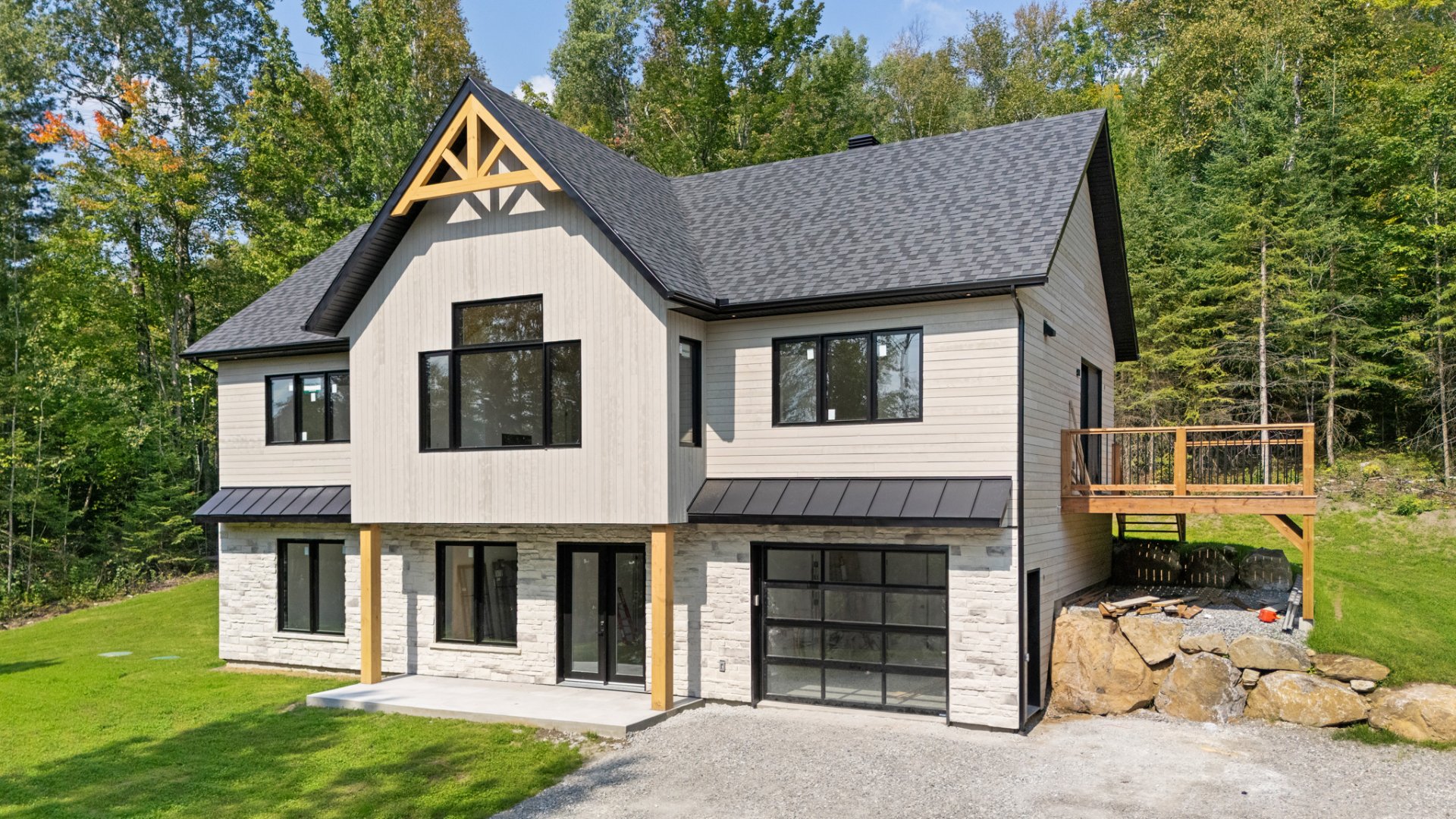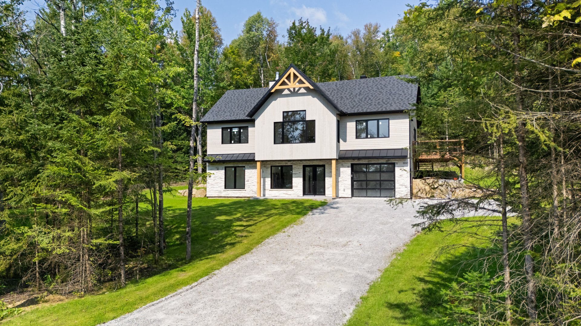 New construction, this turnkey warm and contemporary home offers 3 bedrooms and 2 bathrooms, spacious and bright, perfect for your family and friends. Built with high-quality materials, the home benefits from the GCR warranty, ensuring peace of mind and protection against construction defects. A large, flat, wooded plot surrounds the house, offering a peaceful natural setting. Within 10 minutes, you'll have access to Mont-Tremblant's amenities and attractions, as well as schools, grocery stores, clinics...