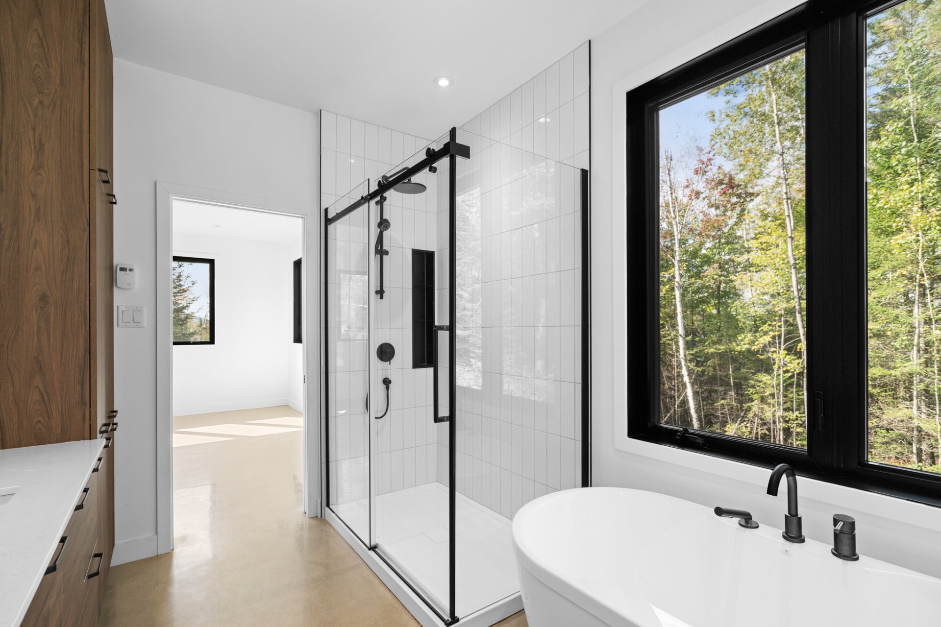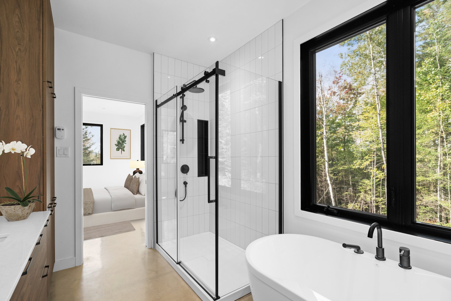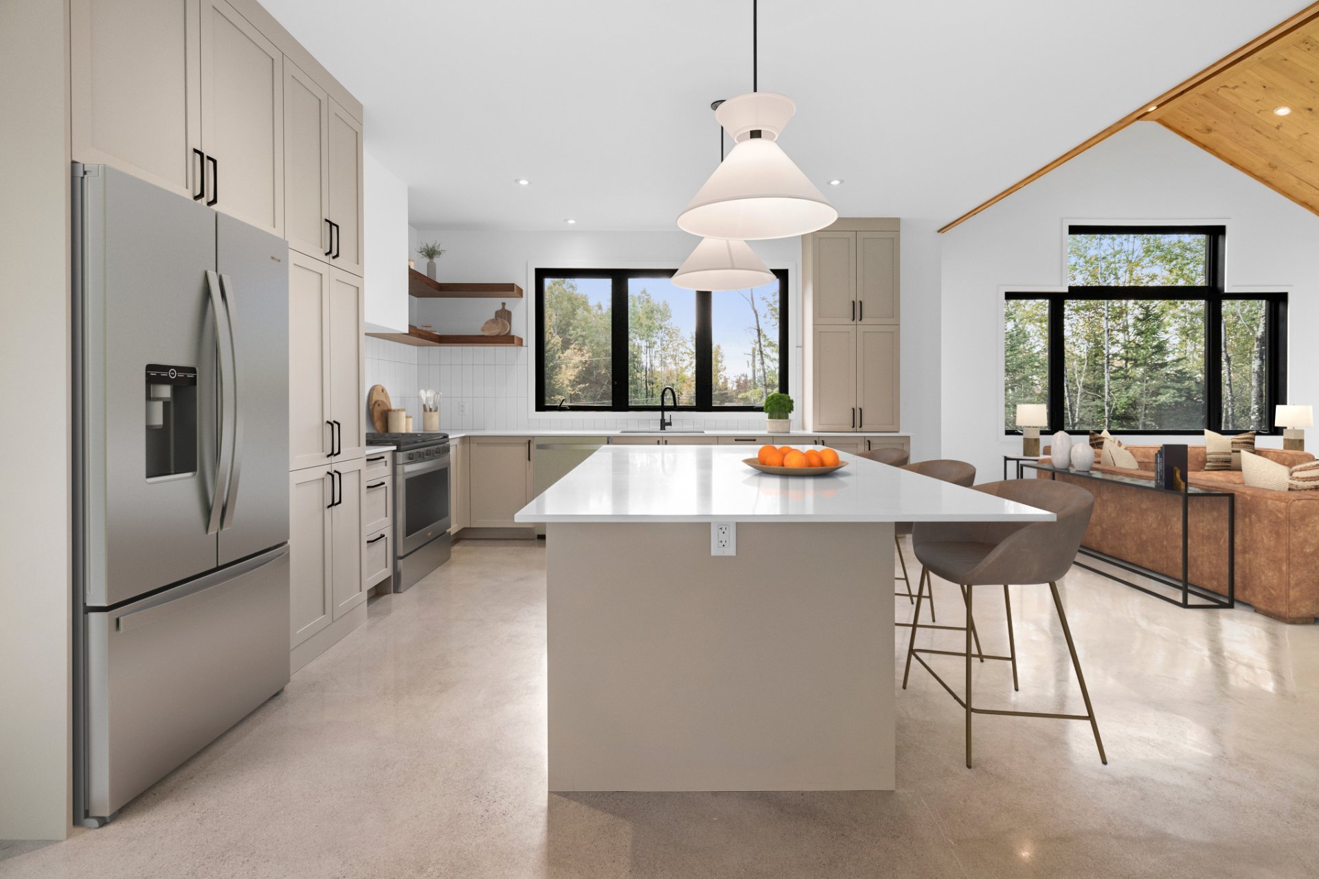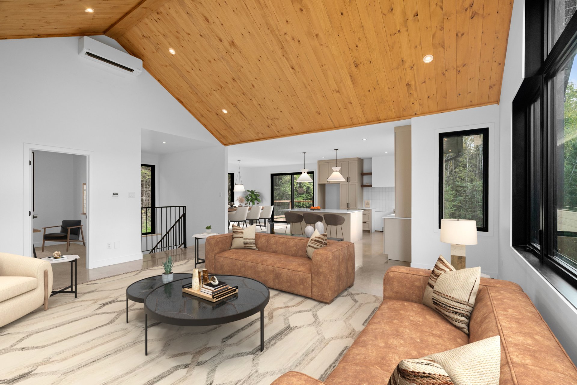 New construction, this turnkey warm and contemporary home offers 3 bedrooms and 2 bathrooms, spacious and bright, perfect for your family and friends. Built with high-quality materials, the home benefits from the GCR warranty, ensuring peace of mind and protection against construction defects. A large, flat, wooded plot surrounds the house, offering a peaceful natural setting. Within 10 minutes, you'll have access to Mont-Tremblant's amenities and attractions, as well as schools, grocery stores, clinics...