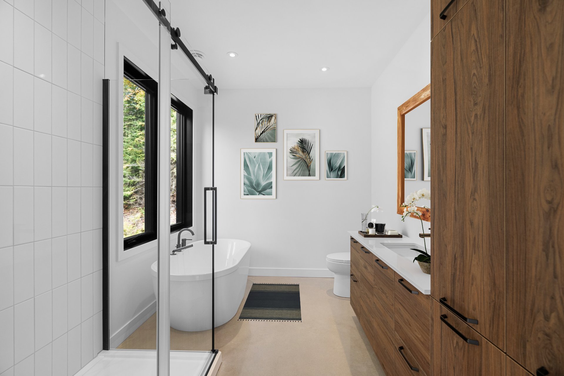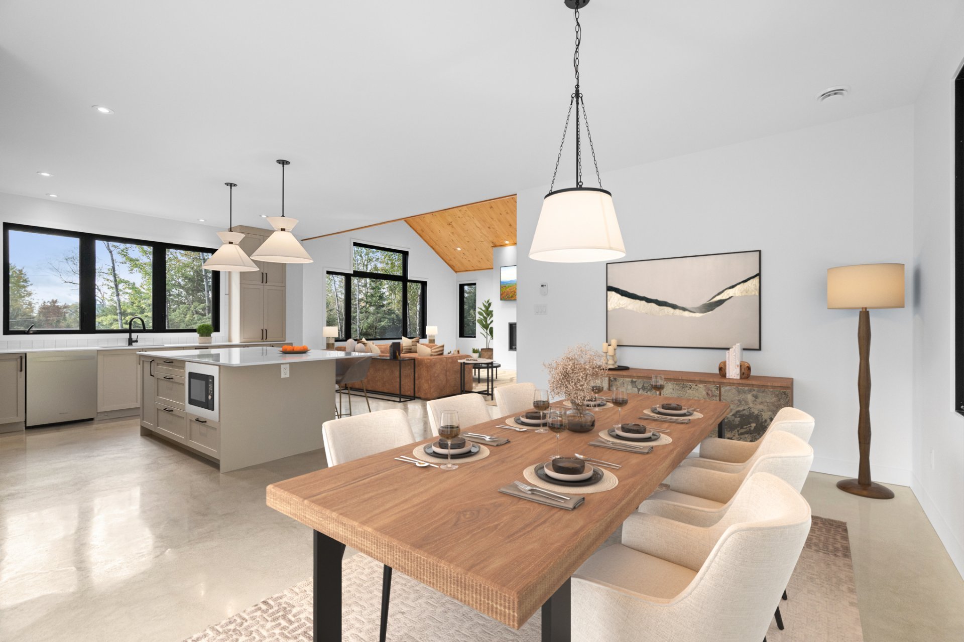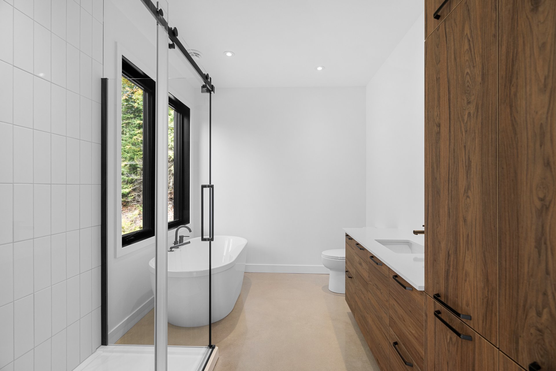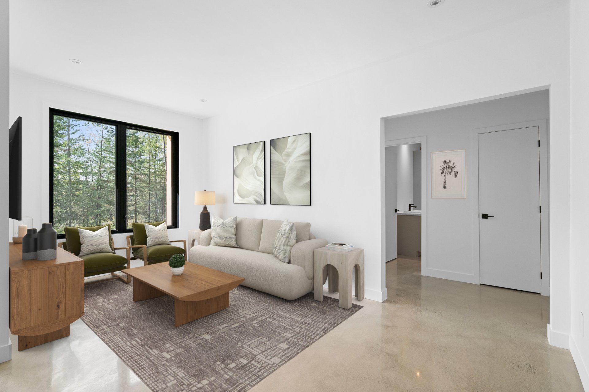 New construction, this turnkey warm and contemporary home offers 3 bedrooms and 2 bathrooms, spacious and bright, perfect for your family and friends. Built with high-quality materials, the home benefits from the GCR warranty, ensuring peace of mind and protection against construction defects. A large, flat, wooded plot surrounds the house, offering a peaceful natural setting. Within 10 minutes, you'll have access to Mont-Tremblant's amenities and attractions, as well as schools, grocery stores, clinics...