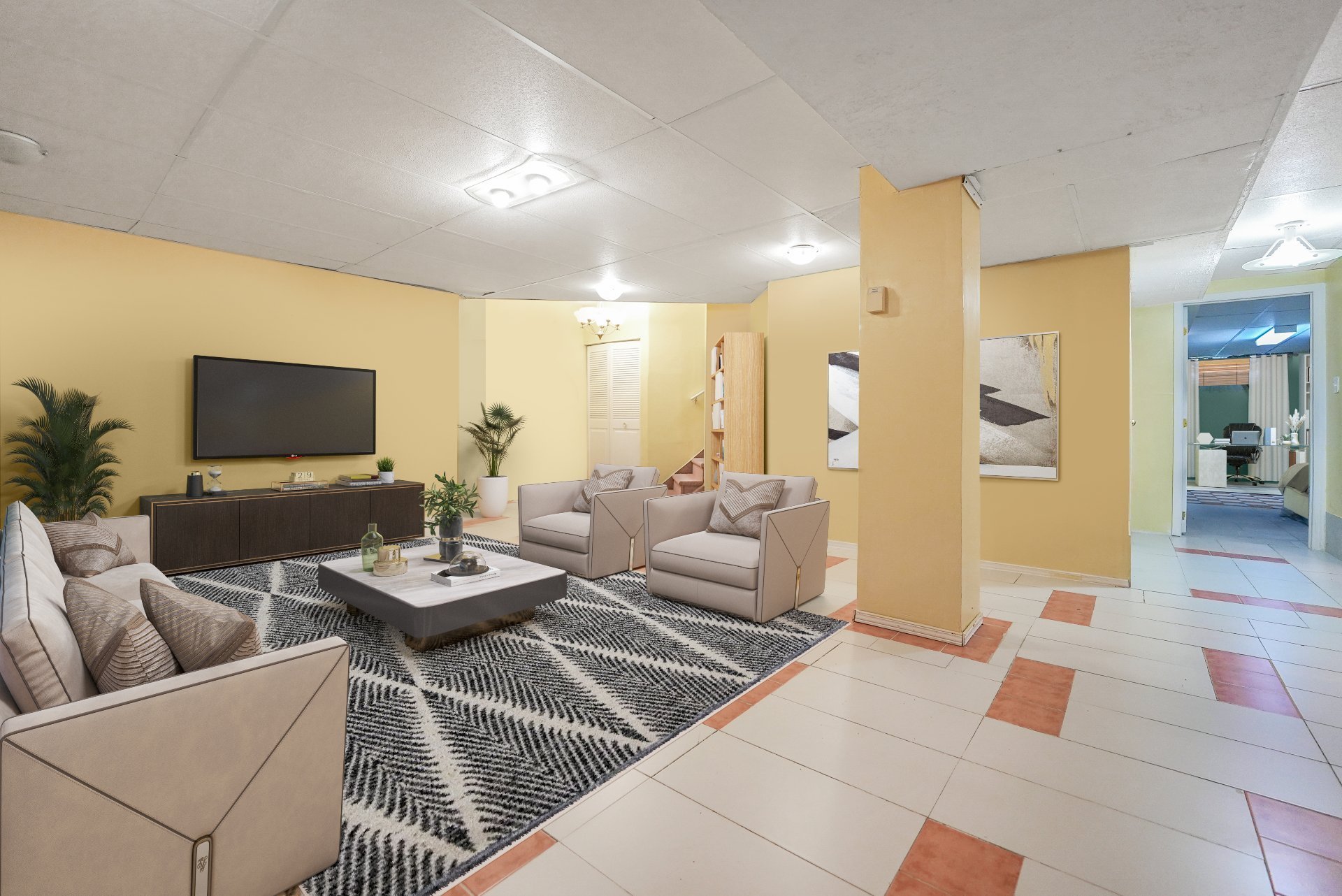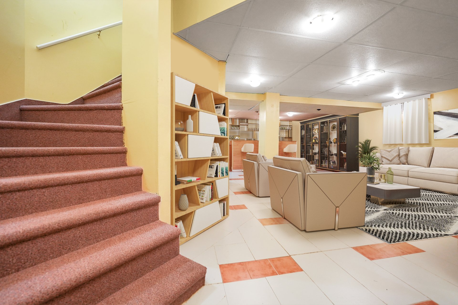 Downstairs, the fully finished basement adds a versatile