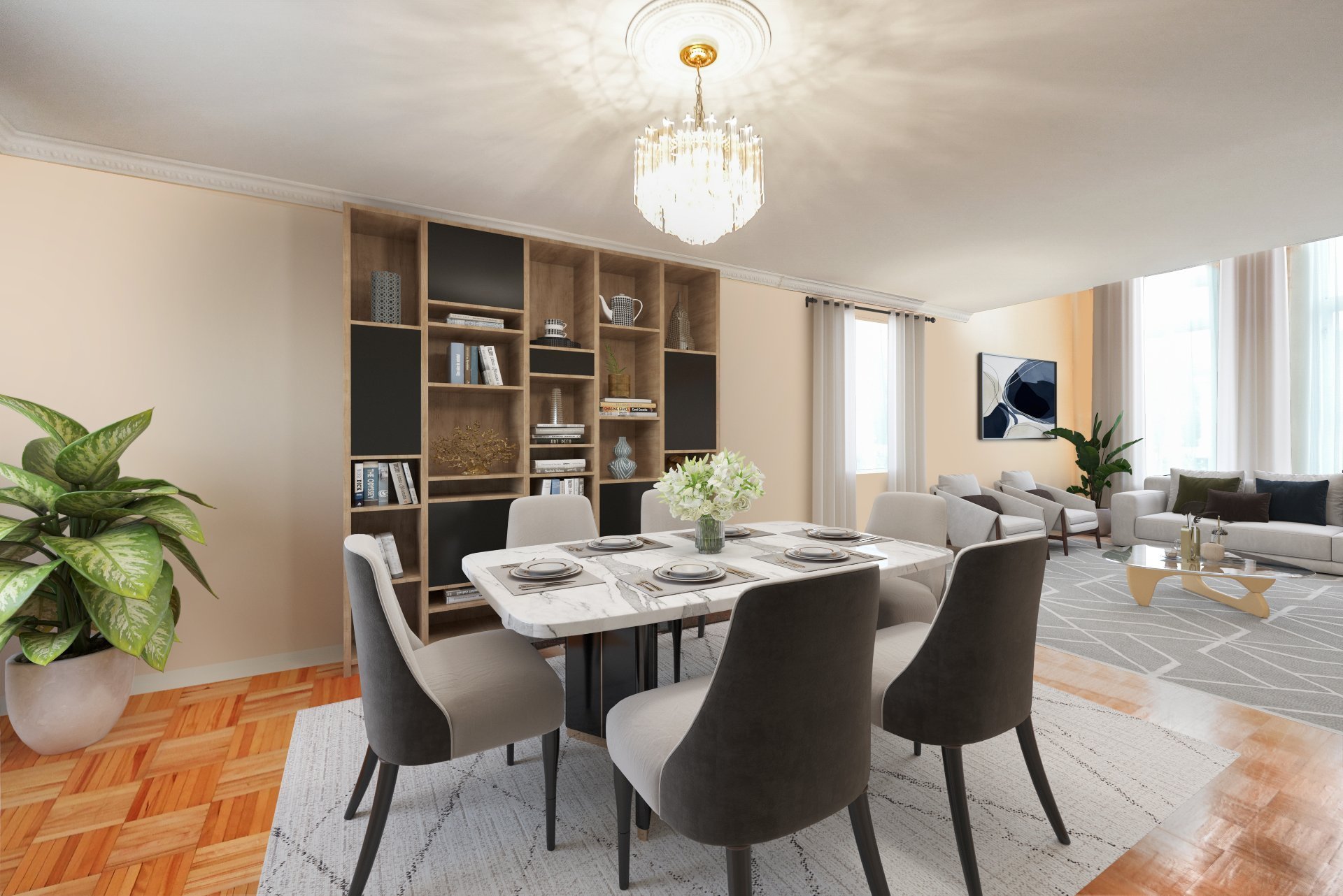 flow. The formal living and dining rooms provide a graceful