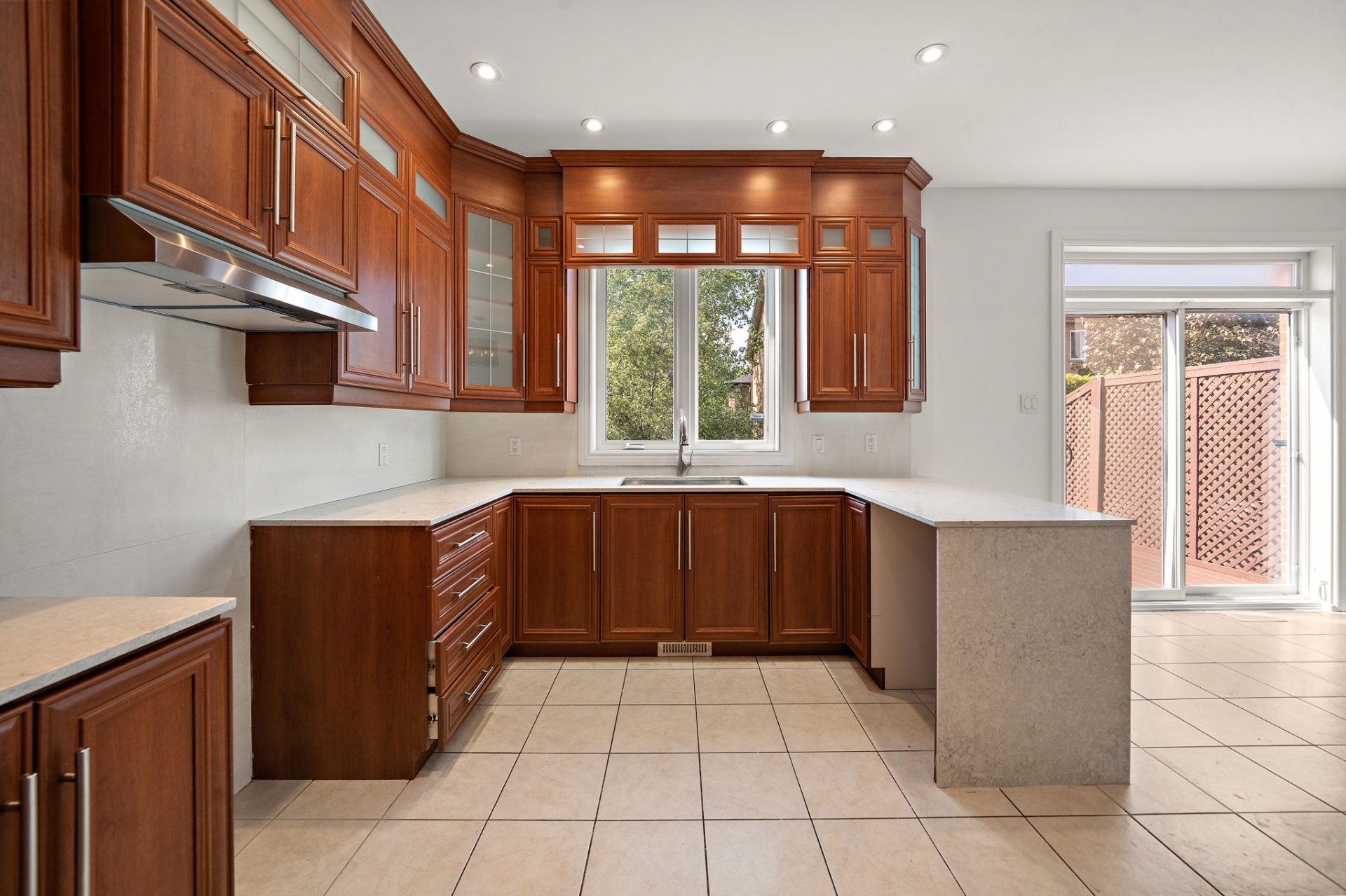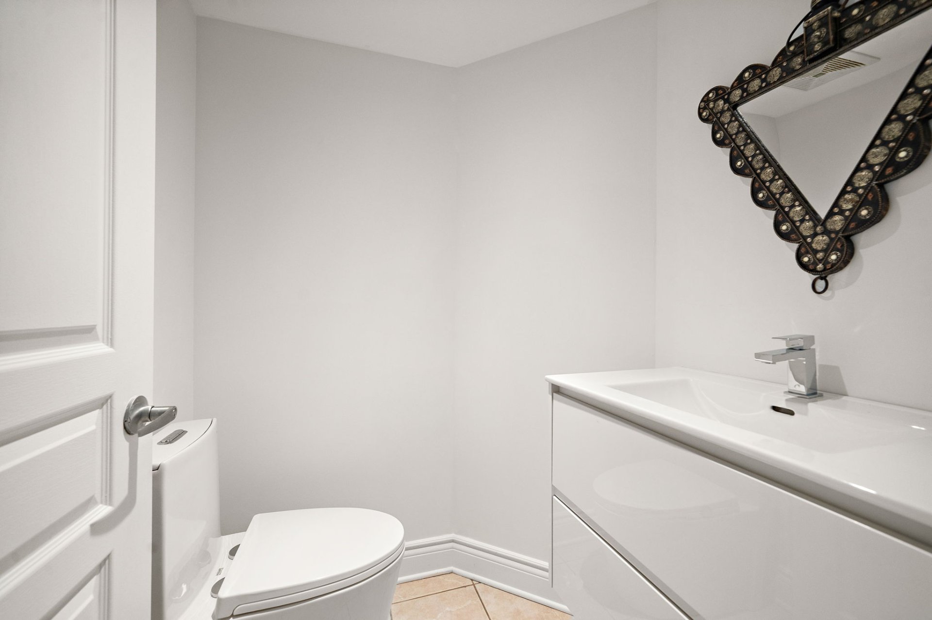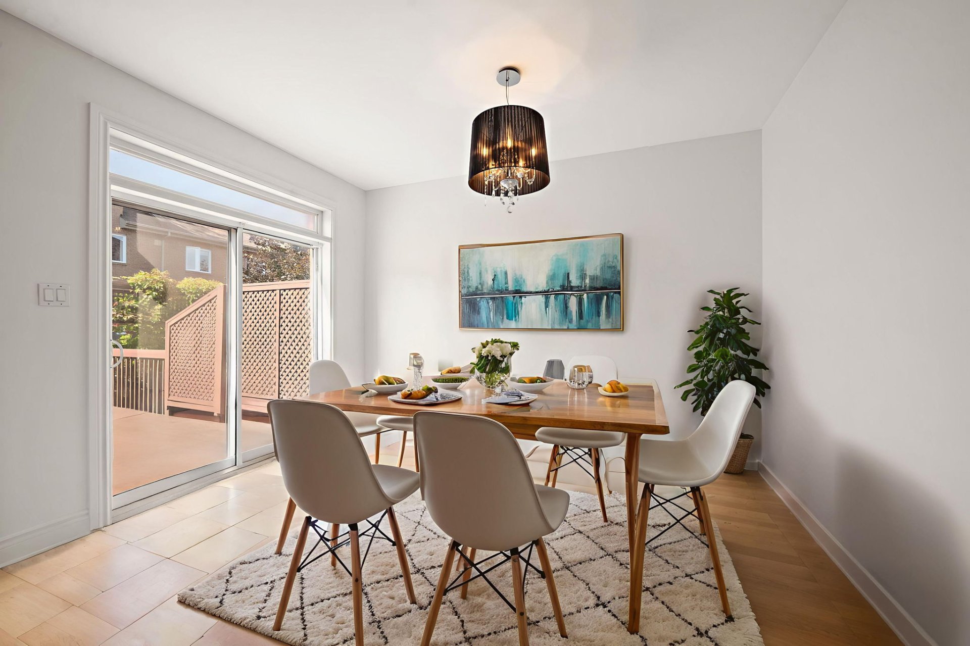 Beautiful and well-maintained townhouse located in Saint-Laurent, a bright corner unit tucked away in a peaceful cul-de-sac. Featuring 9' ceilings on the main floor and hardwood flooring, it offers 3+1 bedrooms, 2 full bathrooms and a powder room. The double indoor garage is complemented by 2 outdoor parking spaces with a carport. Enjoy a large private terrace in a tranquil setting. Ideally located near major highways, Côte-Vertu metro, the future Montpellier REM station, and all essential services.