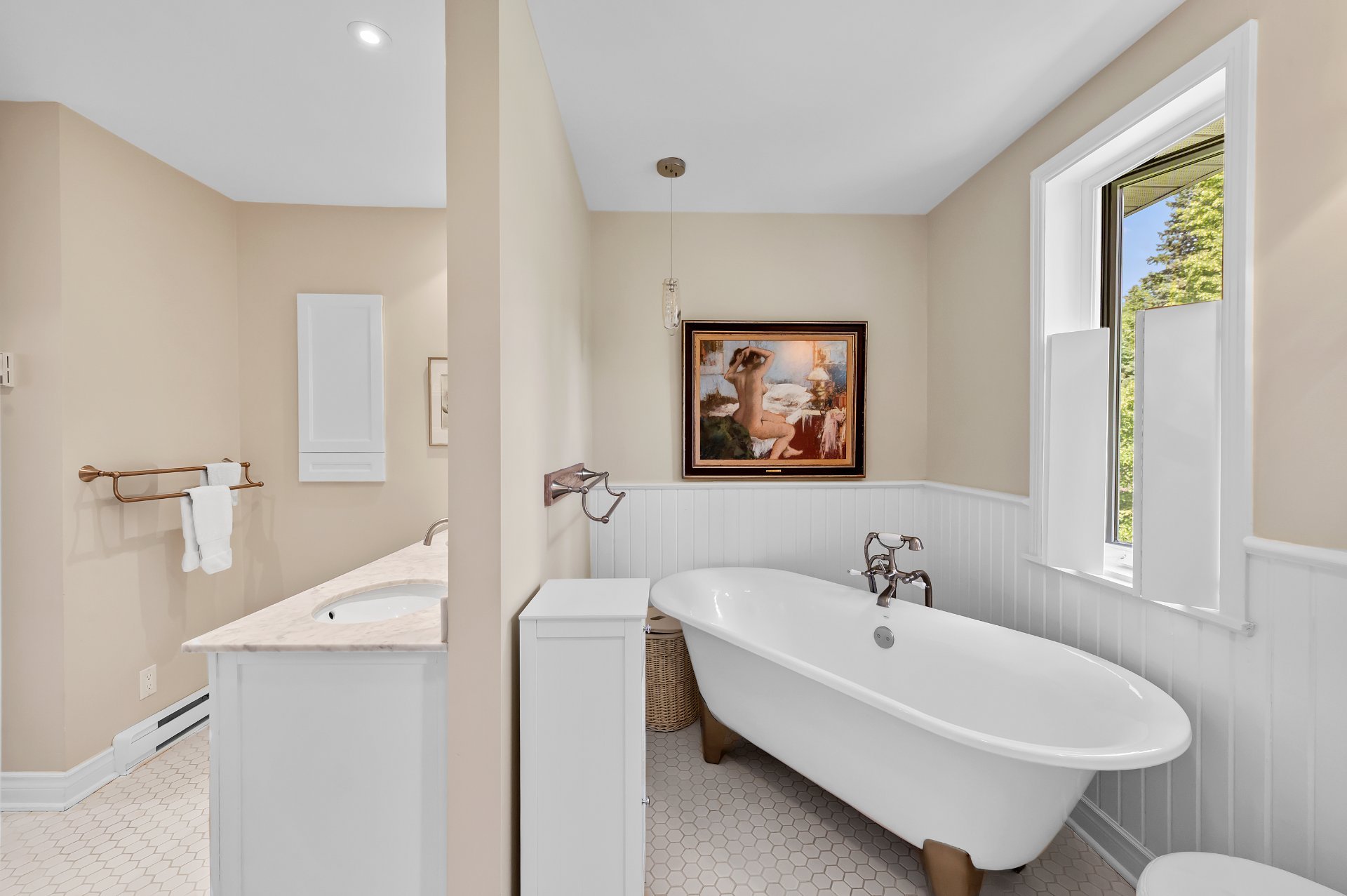 Located just 3 minutes from the Hospital, this fully renovated century-old property, meticulously updated over the years, is a true gem. Blending historic charm with modern comfort, it stands out for its unique character and rich heritage. Within walking distance of downtown Sainte-Agathe-des-Monts, it offers notarial access to Lac des Sables as well as a private, intimate, beautifully landscaped lot. A large covered porch, a garage with loft, and a shed complete this exceptional property -- one of the finest addresses in the area !