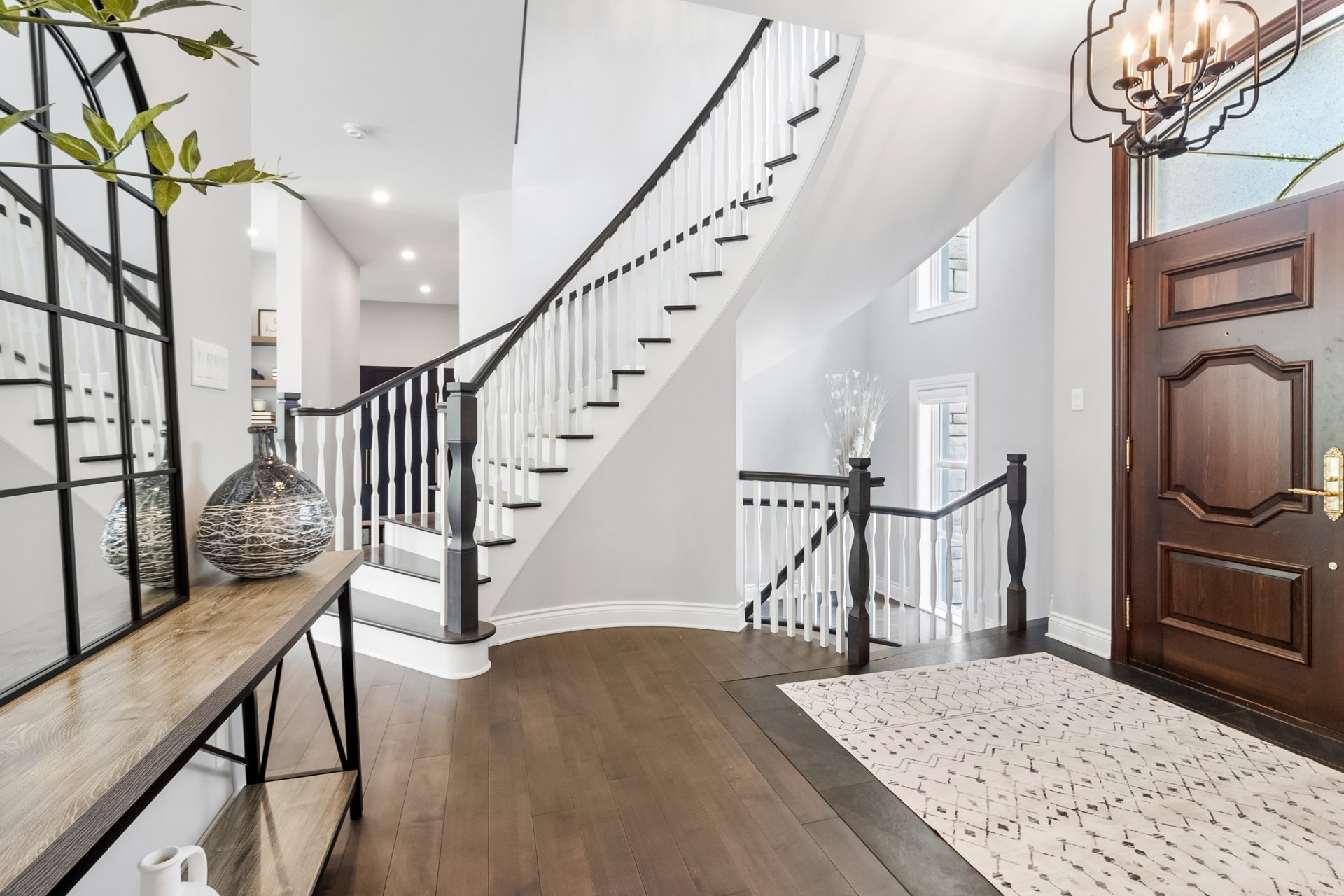 Fontainebleau |Exceptional 3-storey home on a private corner lot, just steps from the prestigious Club de golf Rosemère Fontainebleau. This turnkey property offers 4 spacious bedrooms upstairs, an immense modern kitchen, a dedicated laundry room and impressive ceiling heights: 9'11" on the main floor, 8'11" on the second, and 7'8" in the finished basement. The basement includes 2 additional bedrooms, a home office, a versatile room with plumbing rough-in, and a separate entrance--ideal for guests, extended family, or a future suite. Enjoy 3 full bathrooms (including 2 with heated floors) plus a convenient powder room.