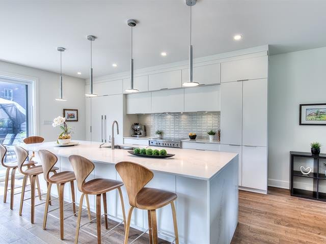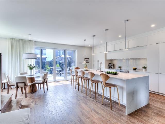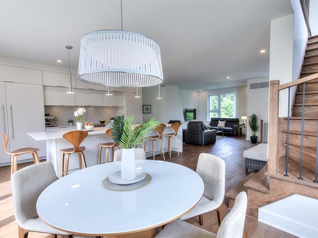 Discover this stunning corner townhouse, bathed in natural light thanks to its prime orientation and numerous windows. Tastefully decorated, it captivates from the moment you step inside with its exquisite hardwood floors, soaring 9-foot ceilings, and a warm yet elegant atmosphere.The living room, enhanced by a gas fireplace, flows seamlessly into a beautiful modern kitchen, creating a space that is both inviting and refined. The kitchen truly the heart of the home is designed to impress, featuring a large central island, ample storage, and a side-by-side refrigerator and freezer. (See addendum for more details.)