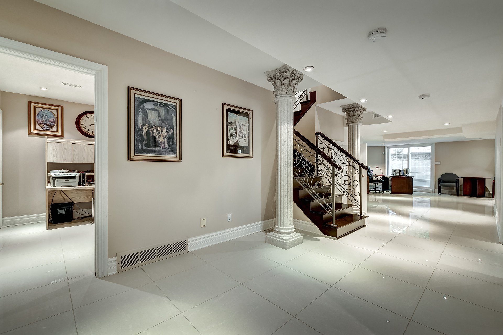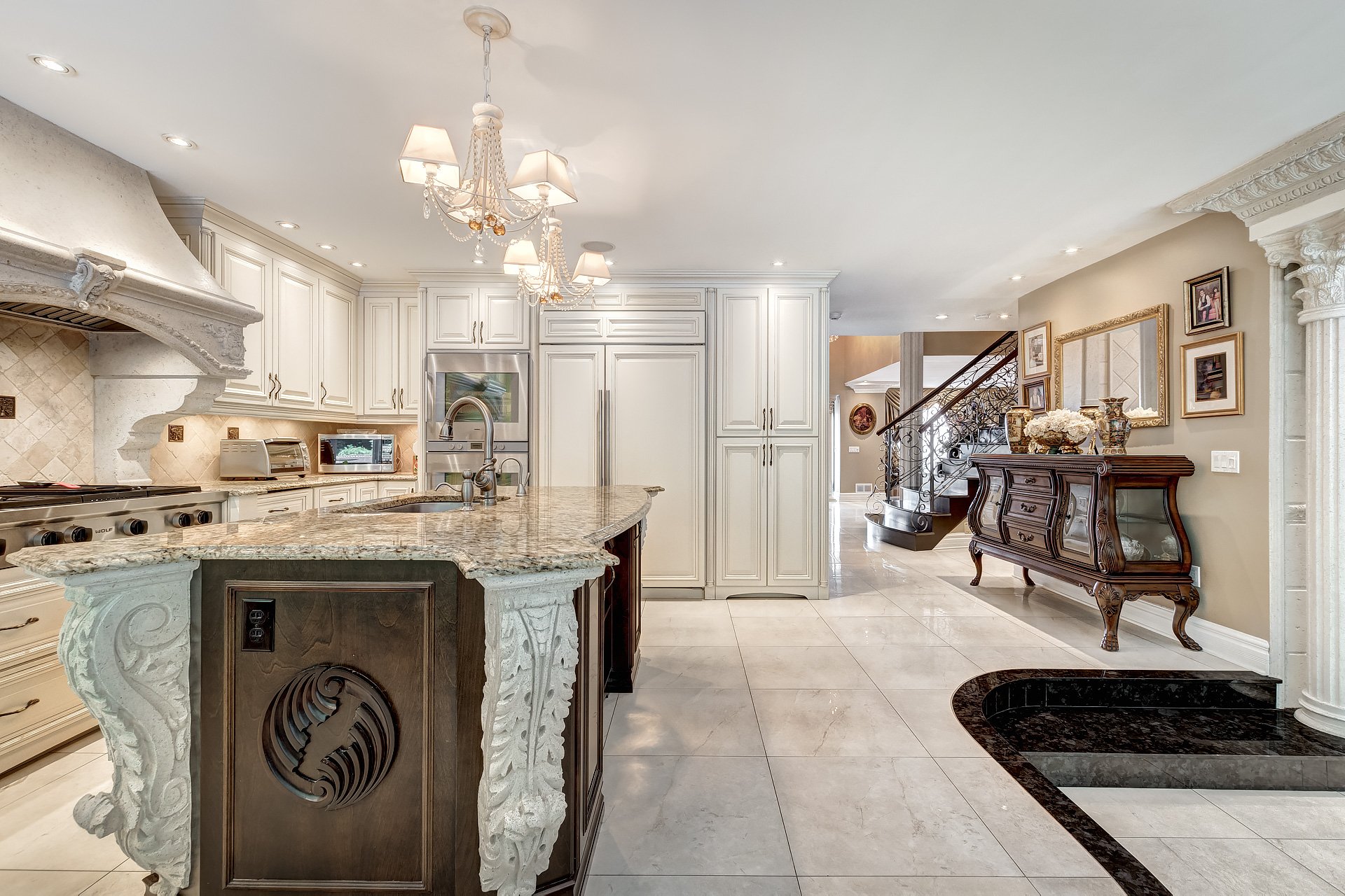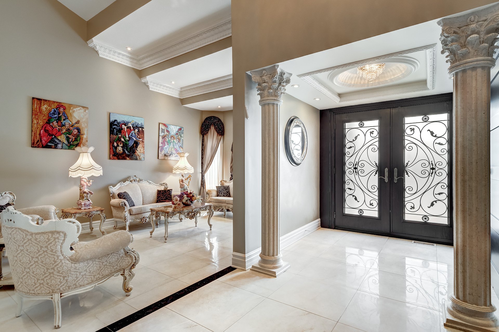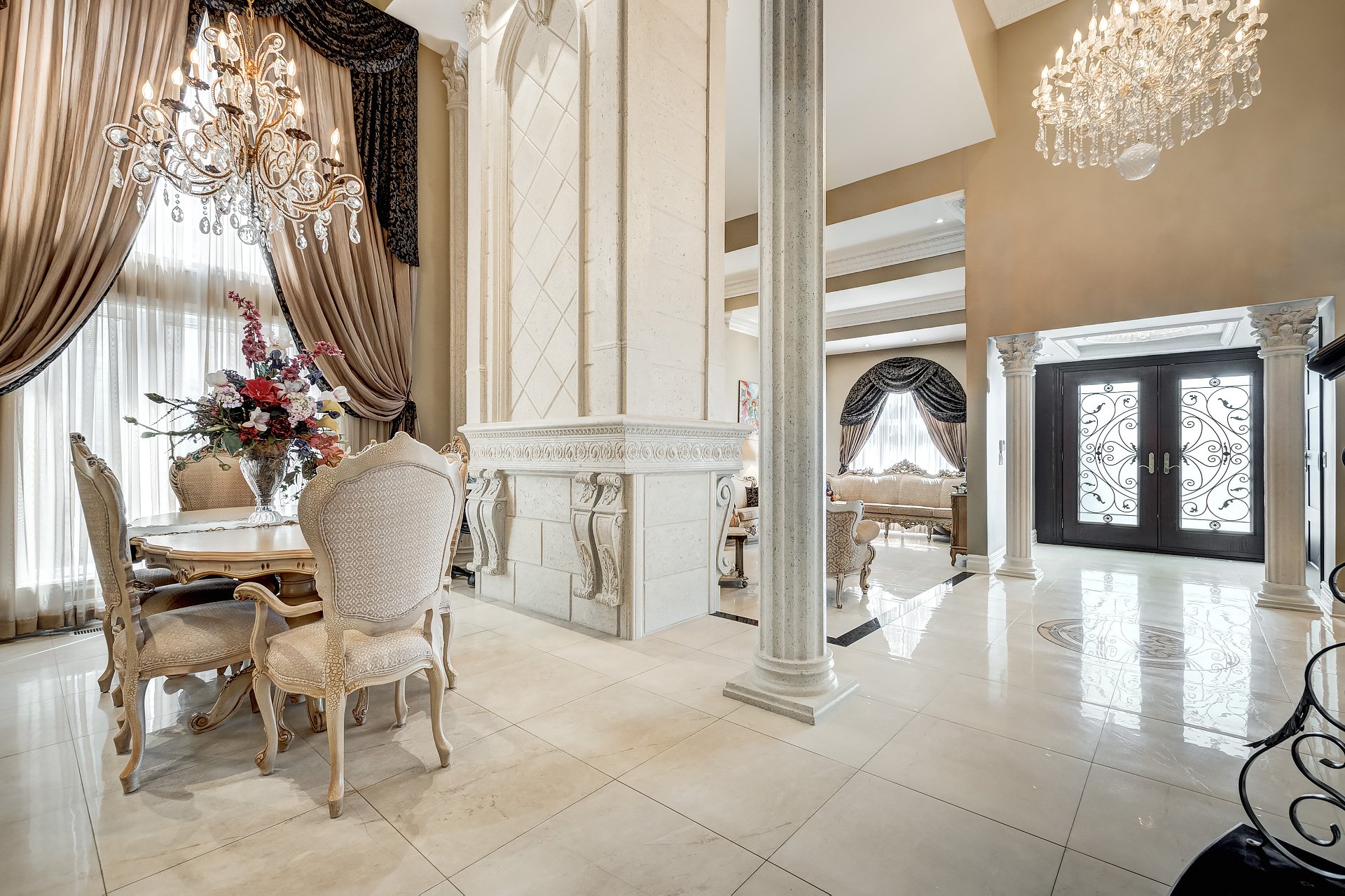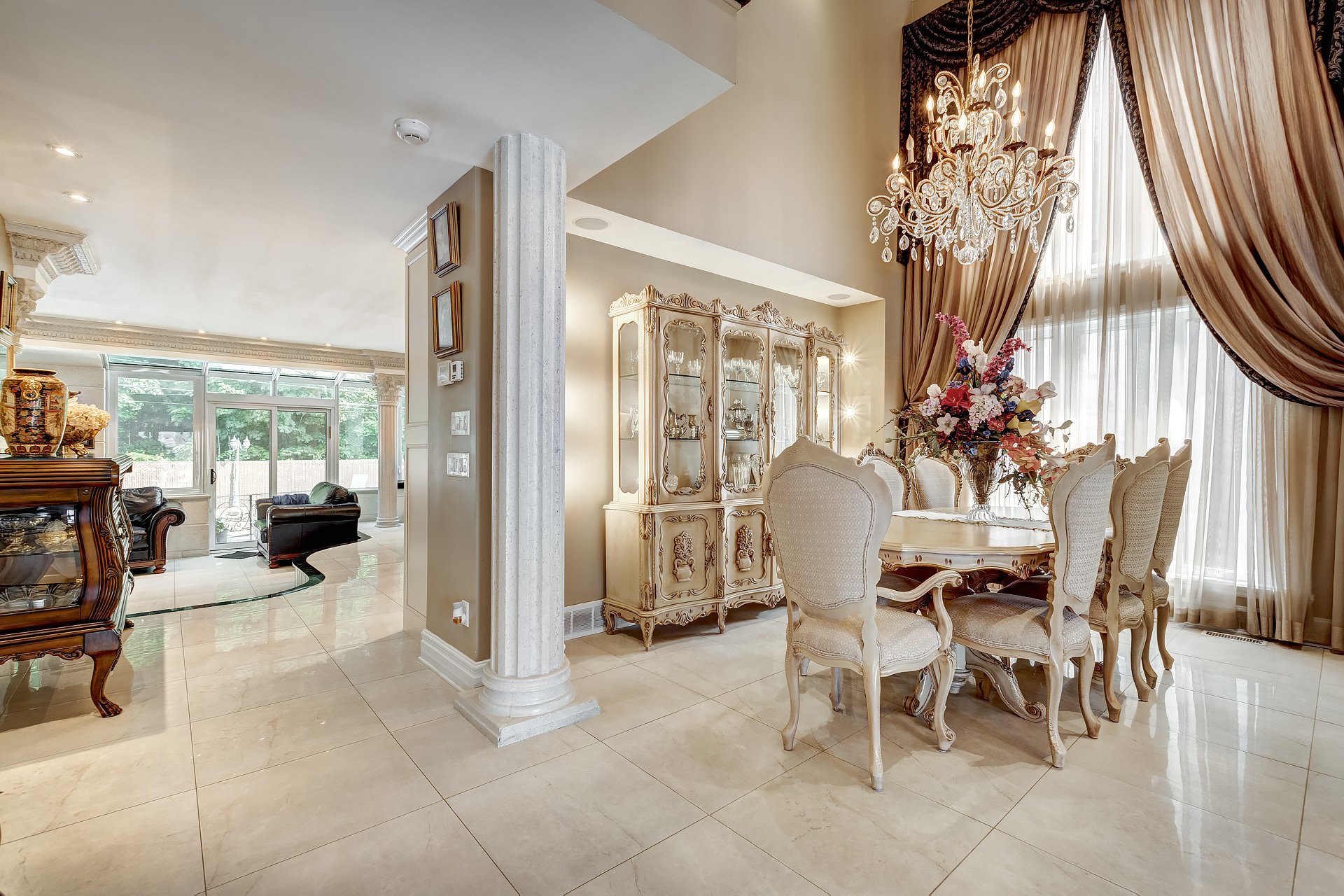 Discover this exceptional architectural residence, set on a spacious lot of over 7,300 sq. ft. in the heart of DDO. Built with remarkable craftsmanship to detail, this detached home features an open-concept layout with soaring 16-17' ceilings, exclusive marble flooring, and majestic Roman-inspired columns. Highlights include a dramatic two-story fireplace, 3+1 spacious bedrooms, 3+1 bathrooms, heated floors in the basement, and a resort-style backyard with a vast terrace and heated pool backing directly onto Centennial Park. A double garage and driveway for up to 5 cars. listing price was 1.985 million to 1.95 million and now is 1.925million