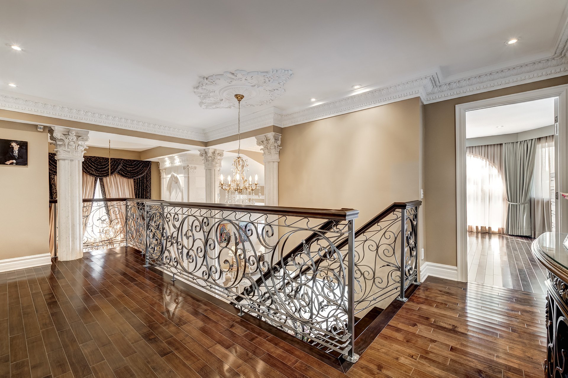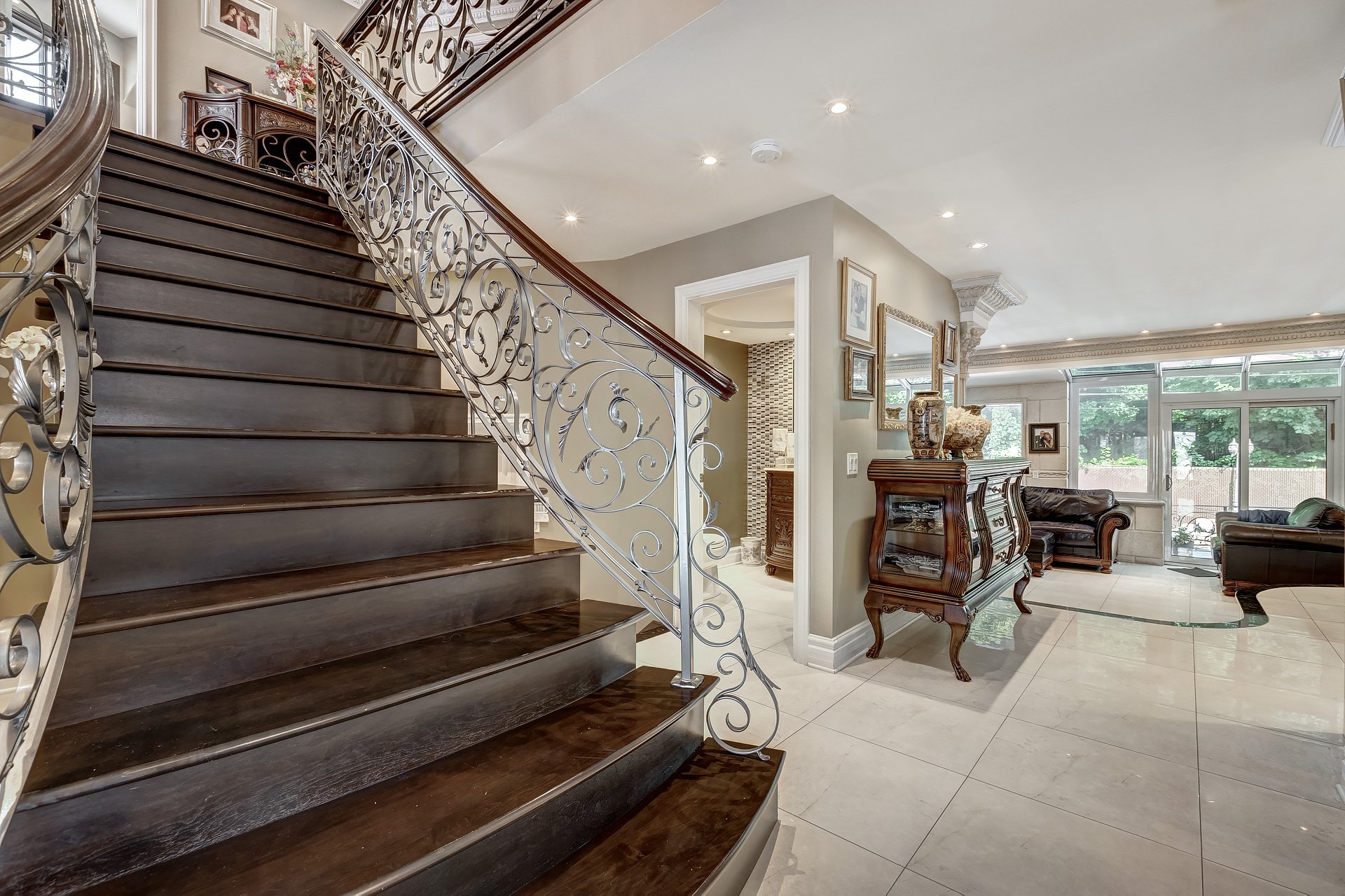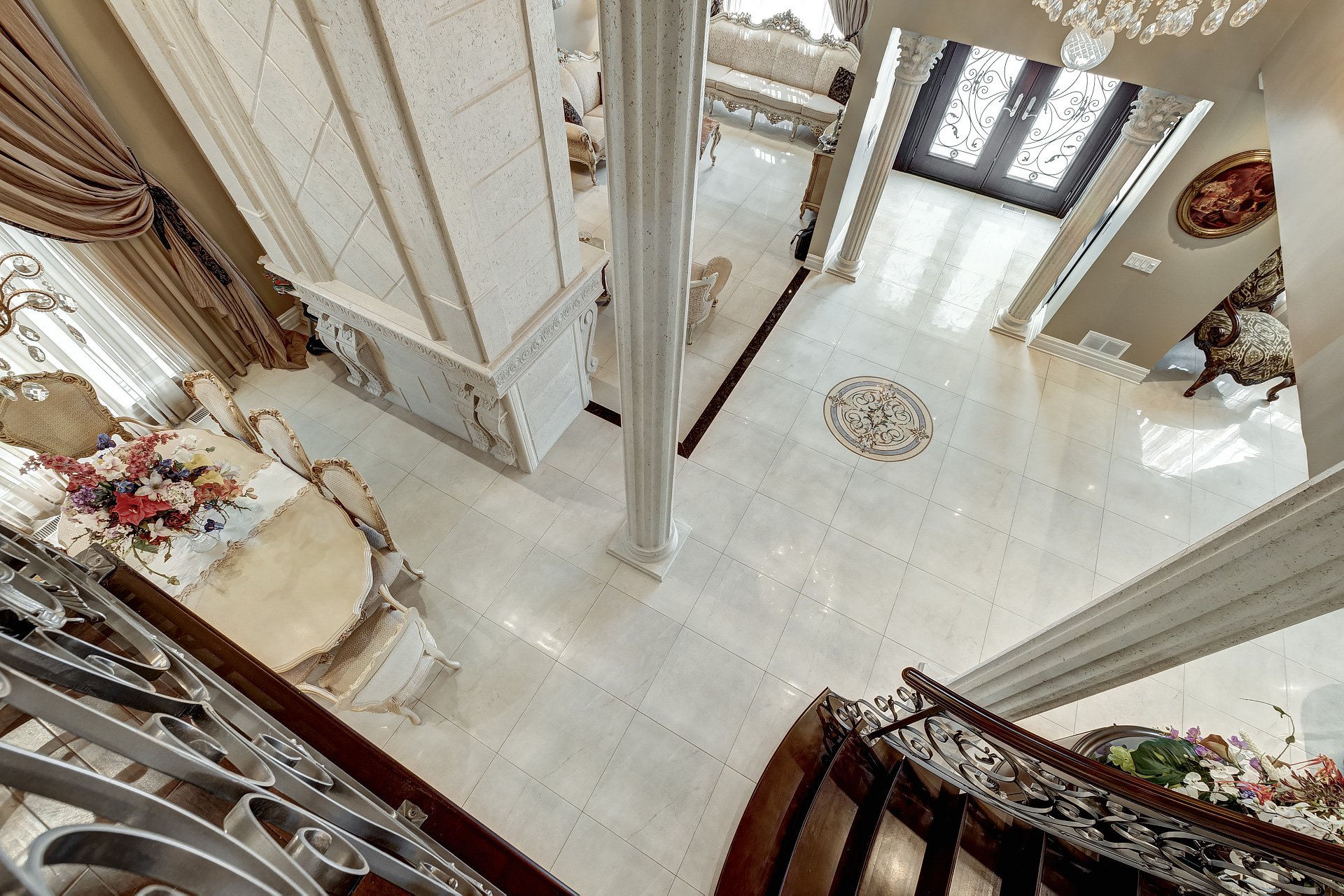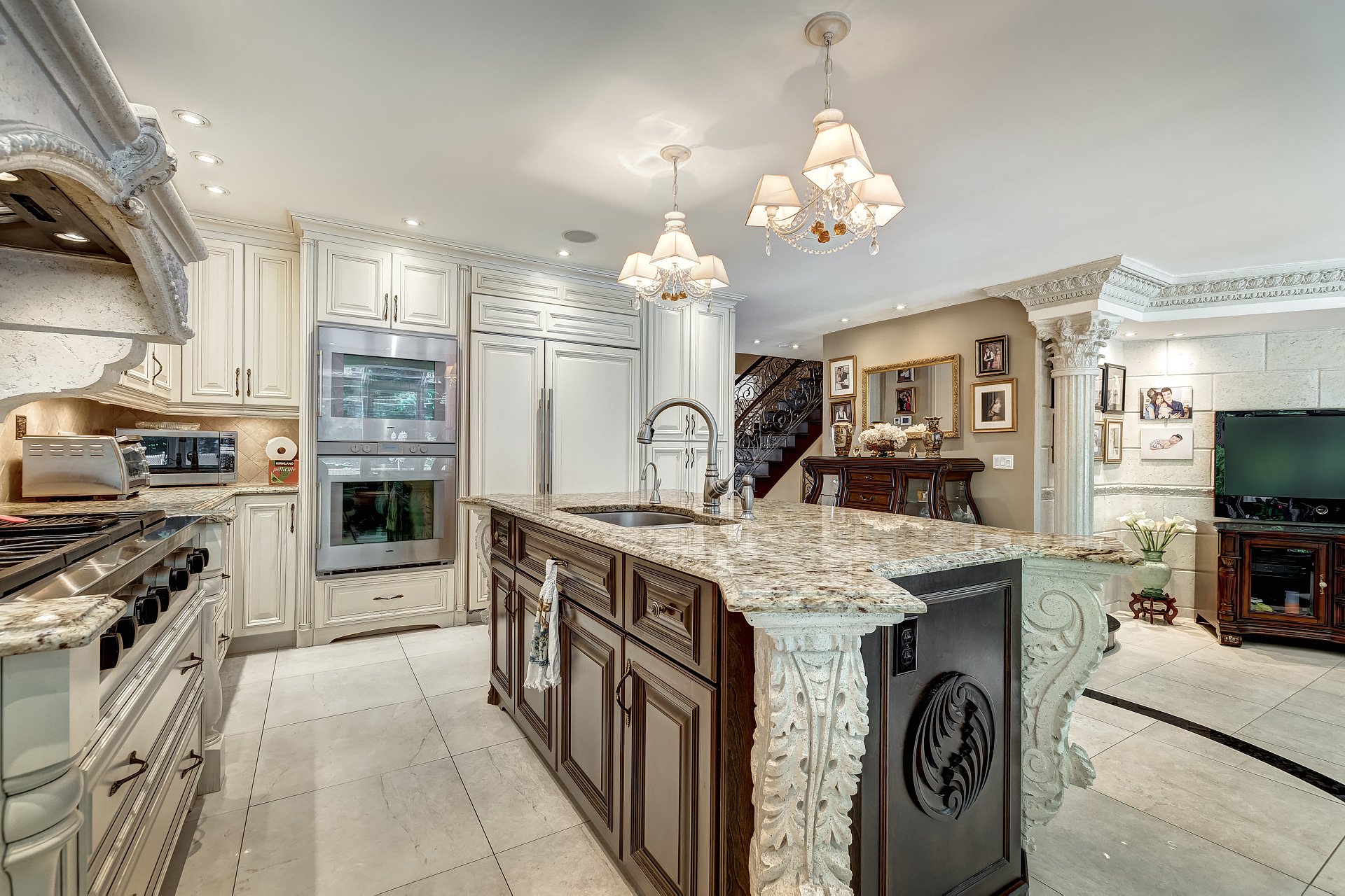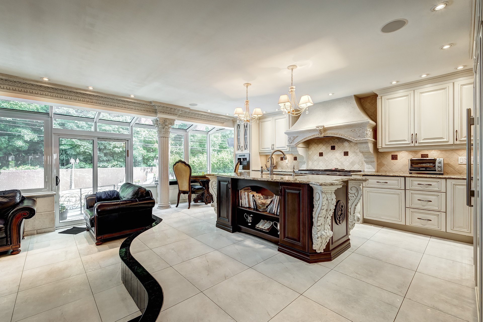 Discover this exceptional architectural residence, set on a spacious lot of over 7,300 sq. ft. in the heart of DDO. Built with remarkable craftsmanship to detail, this detached home features an open-concept layout with soaring 16-17' ceilings, exclusive marble flooring, and majestic Roman-inspired columns. Highlights include a dramatic two-story fireplace, 3+1 spacious bedrooms, 3+1 bathrooms, heated floors in the basement, and a resort-style backyard with a vast terrace and heated pool backing directly onto Centennial Park. A double garage and driveway for up to 5 cars. listing price was 1.985 million to 1.95 million and now is 1.925million