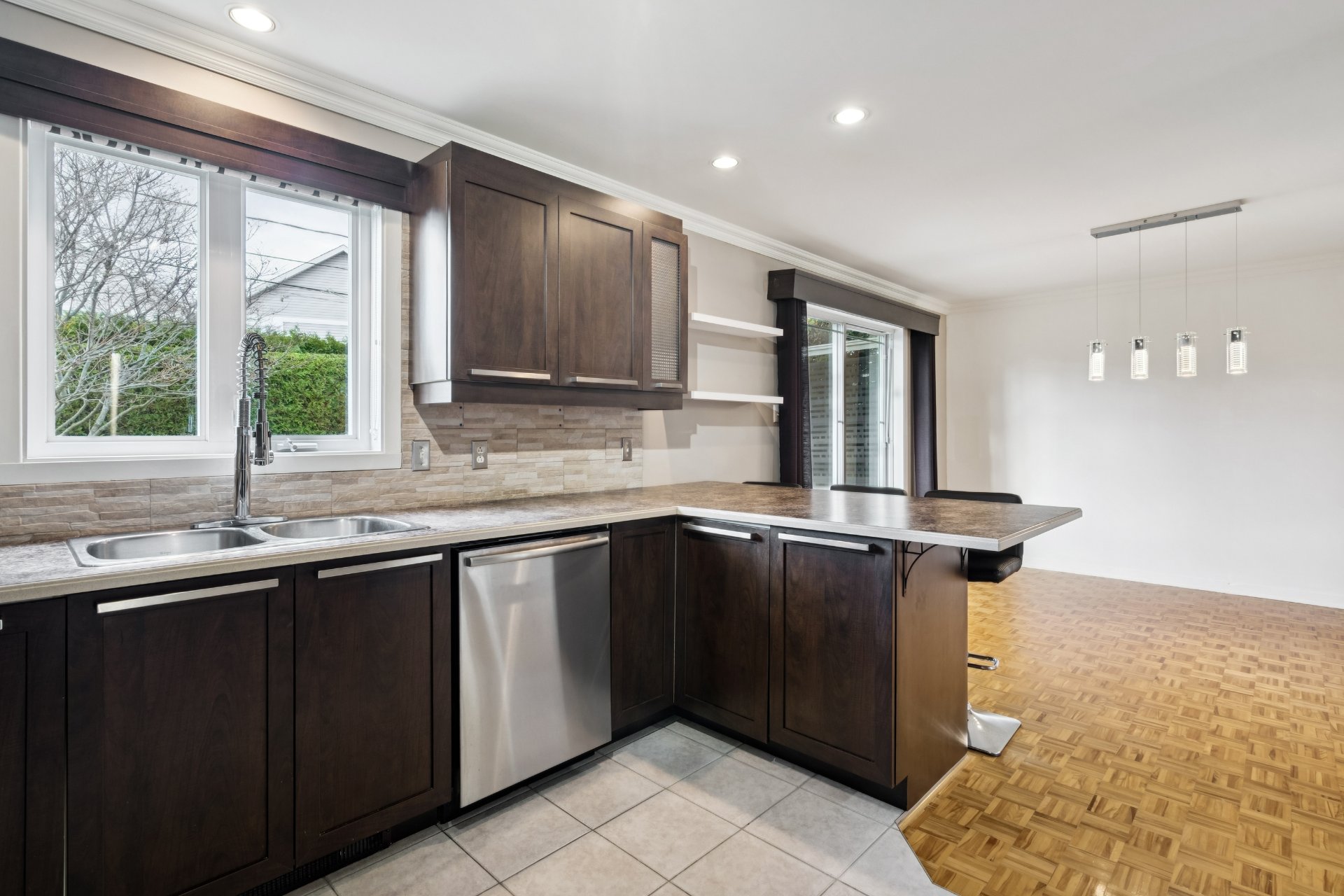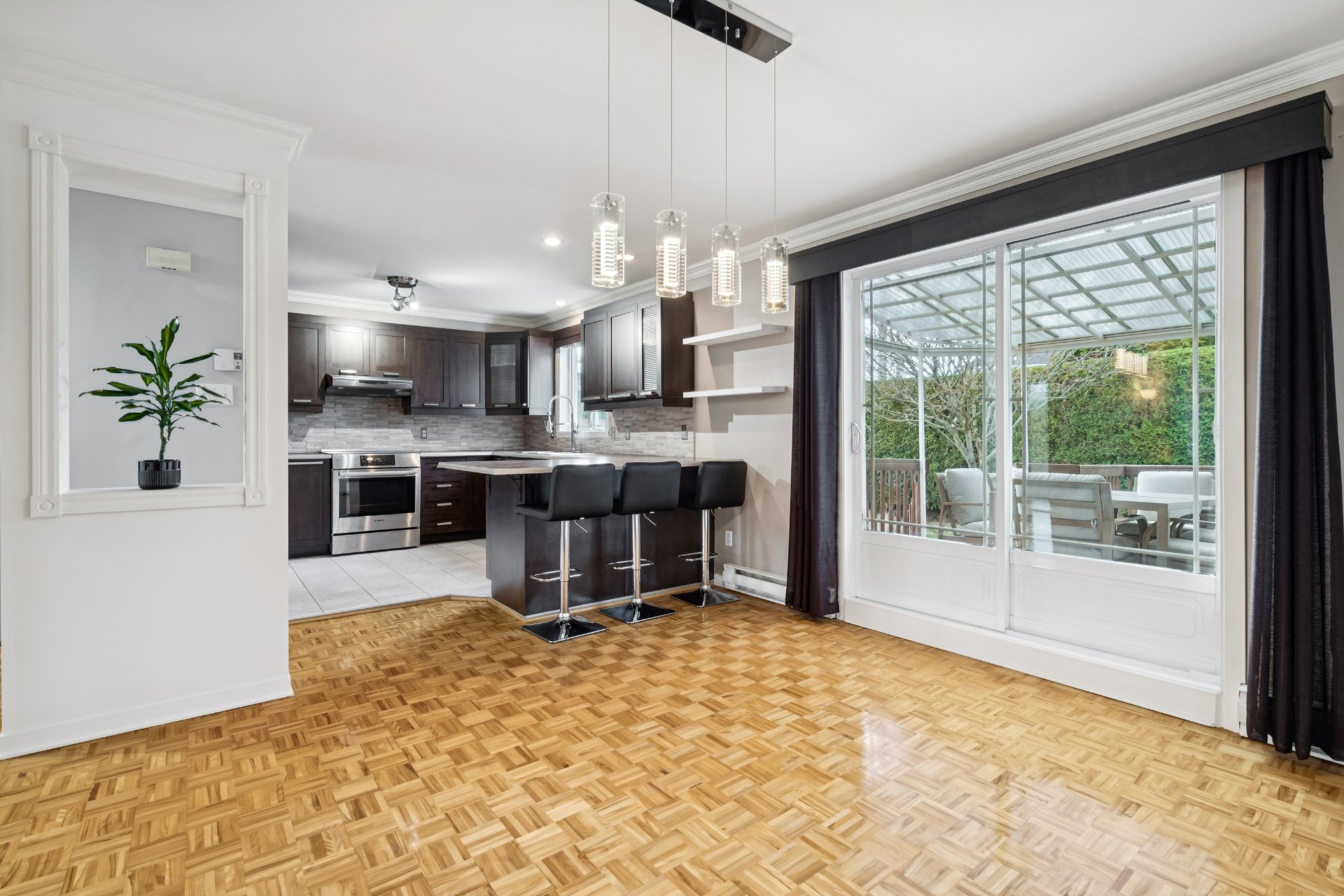 ** BEAUTIFUL COTTAGE WITH GARAGE ** On a quiet street in a family-friendly neighborhood. Cozy, well-maintained property. Open floor plan, wood-burning fireplace, beautiful natural light. Kitchen with double sink, plenty of counter space, and breakfast counter. Possibility of 4 bedrooms, 3 upstairs, master bedroom with walk-in closet and enough space in the basement for a 4th. Very versatile basement, to be used according to your needs. Carefully landscaped, intimate yard, bordered by mature cedar hedges, covered balcony and beautiful landscaping! Wall-mounted heat pump for maximum comfort. See addendum for details