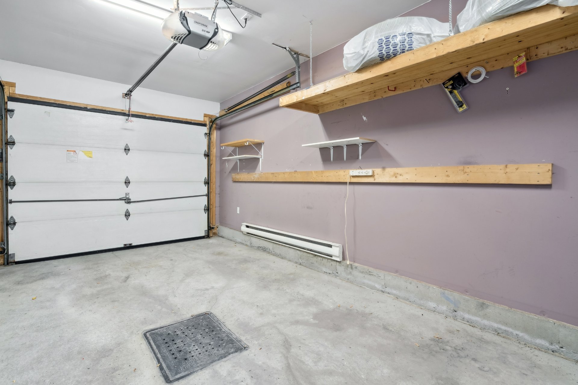 Light fixtures, poles, curtains, window shades/blinds, electric garage door opener, shed, 3 bins (recycling, garbage, compost), central vacuum and accessories, wall-mounted heat pump, water heater, fireplace, air exchanger, log container, dishwasher, range hood, kitchen shelves (2x) + bathroom shelves (2x), garage shelf, 3 kitchen stools