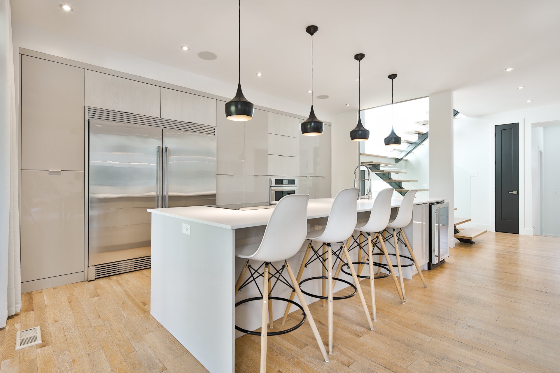 Curtains, curtain rods, blinds, light fixtures, refrigerator, induction cooktop, built-in convection oven, dishwasher, winde fridge in the kitchen, fixed furniture in the living room, fixed furniture in the family room, Pax furniture in the basement bedroom, heat pump, home automation system, speakers, central vacuum system, charging station installation, pool heat pump, pool accessories.