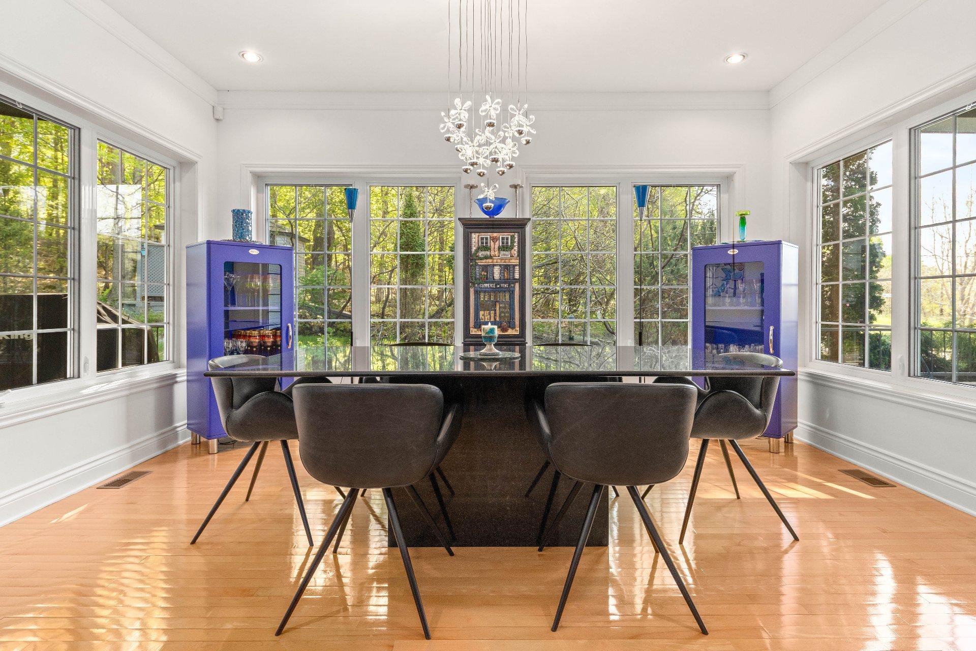 with a large, also fully windowed dining room for more