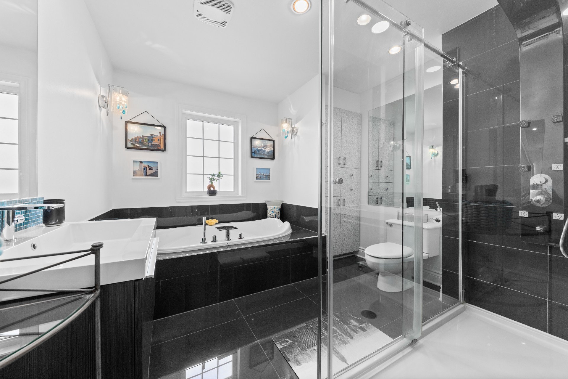 -Three full bathrooms, plus a powder room and a laundry room