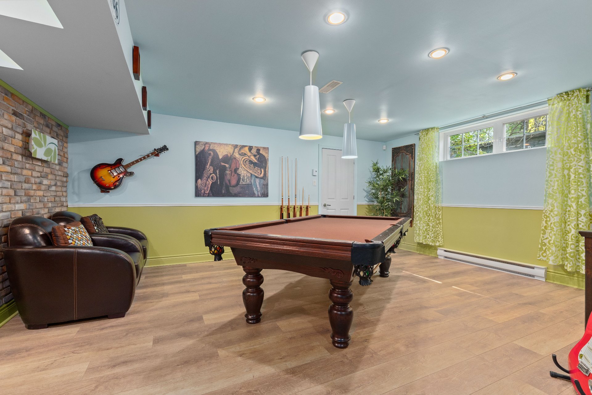 Washer, dryer, built-in oven, cooktop, refrigerator, dishwasher, basement freezer, curtain rods and poles, curtains, blinds, office bookshelf on the main floor, display cabinets in the home theater (main floor), black DVD storage units in the basement home theater, pool table, light fixtures (except the one in the large dining room).