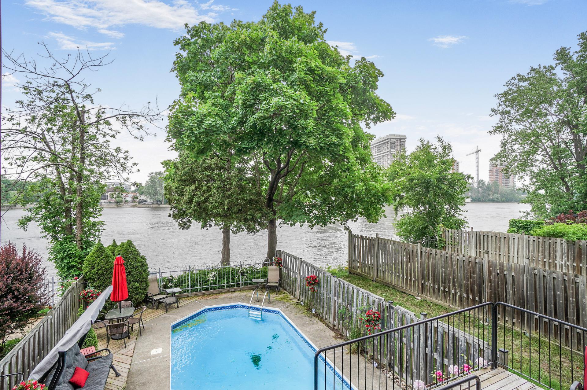 Stunning waterfront townhouse! Located in a peaceful and sought-after area, this spacious condo offers an exceptional living environment close to amenities, parks, schools, public transit, and a variety of restaurants. Its open-concept layout and abundant natural light create a warm and inviting atmosphere. In addition to a double garage, the unit provides extra storage space, a rare and valuable feature. You will also enjoy a private pool, exclusively for this unit, as well as a private yard--perfect for relaxing in total tranquility. A true gem for anyone seeking comfort, privacy, and proximity to local services!