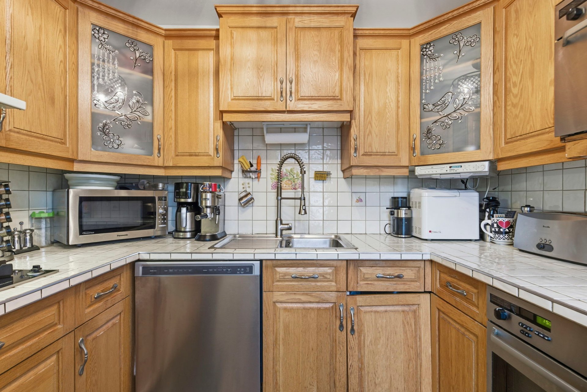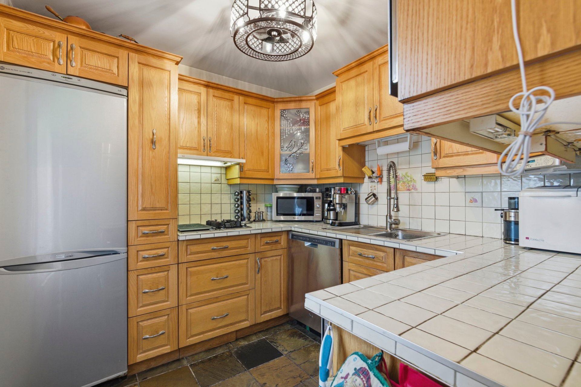 Light fixtures, blinds and curtains, 2 cooktops (1 gas and 1 electric), steam oven (semi-functional), built-in oven, dishwasher, refrigerator, gas stove, gas water heater, central vacuum & accessories, alarm system, 1 fold-down bed and the work desk in the second bedroom on the 2nd floor. The inclusions are sold without any legal guarantee of quality.