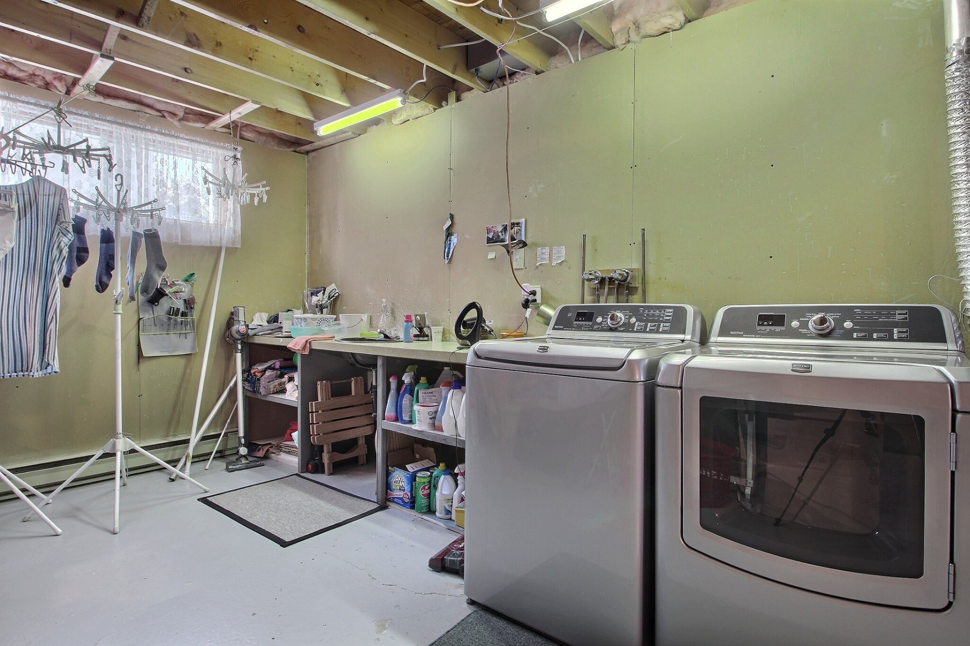 Washer, dryer, dining room blind.