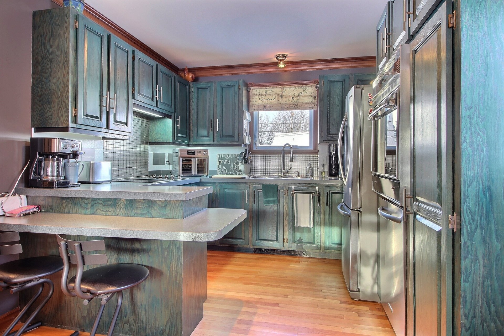 well-organized kitchen opens onto the dining area, making